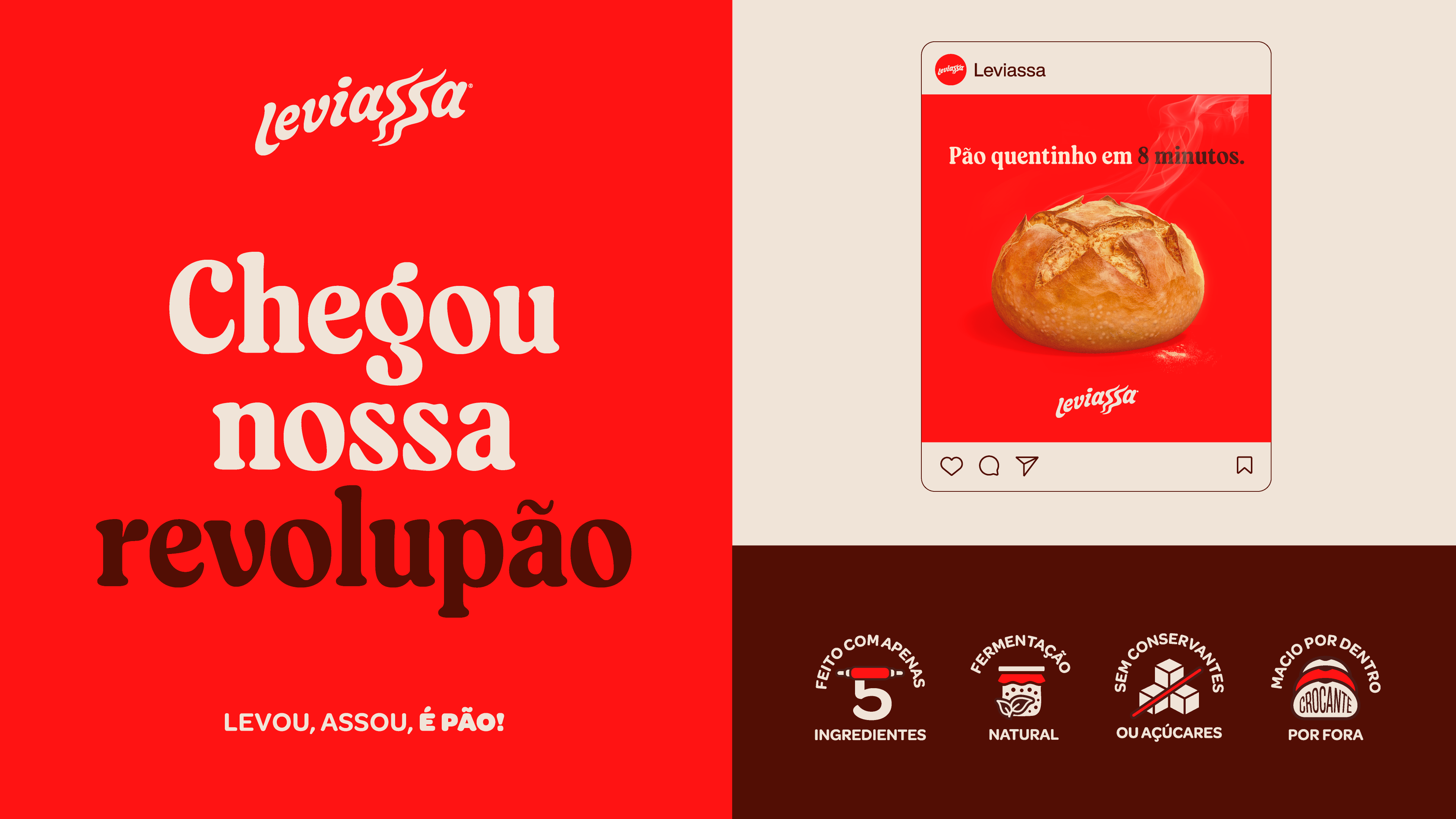 Votar neste projetoLevou, assou. A revolupão de Leviassa começa na gôndola e chega à mesa dos brasileiros. A marca surge como uma solução inovadora para quem busca praticidade sem abrir mão do prazer de um pão quentinho em casa. O nome “Leviassa” traduz essa proposta: reforça a experiência de uso ao se conectar à tagline “Levou, assou” e ainda carrega uma sonoridade de feitiço, como se o pão saísse do forno em um passe de mágica.