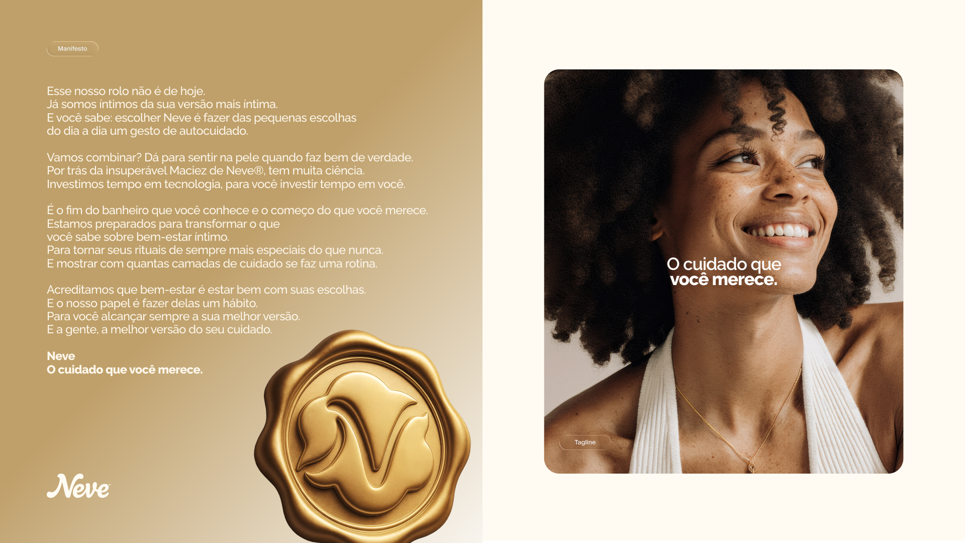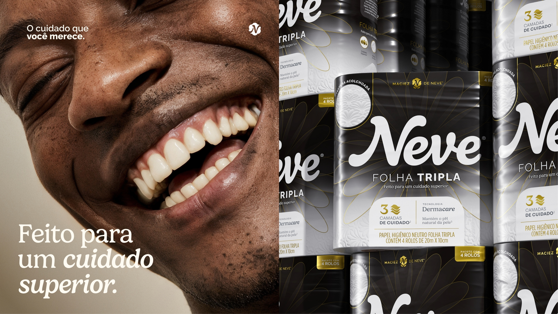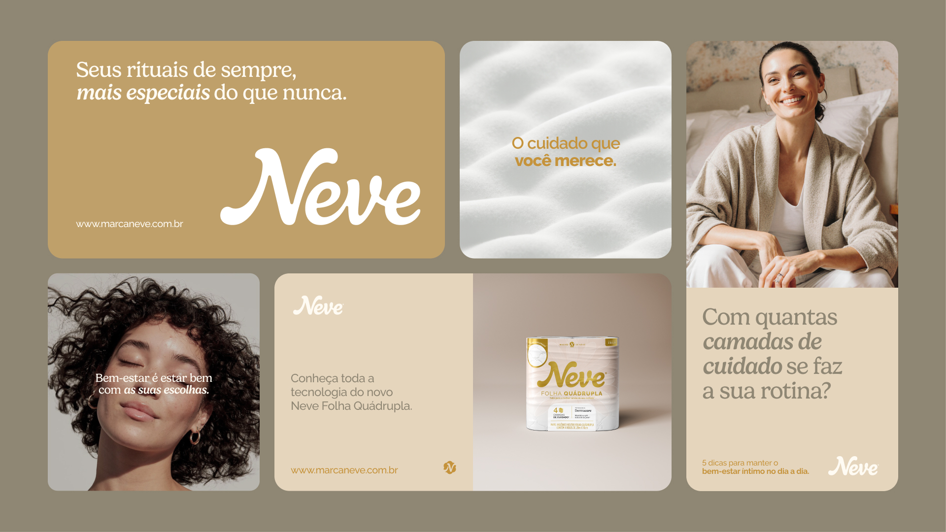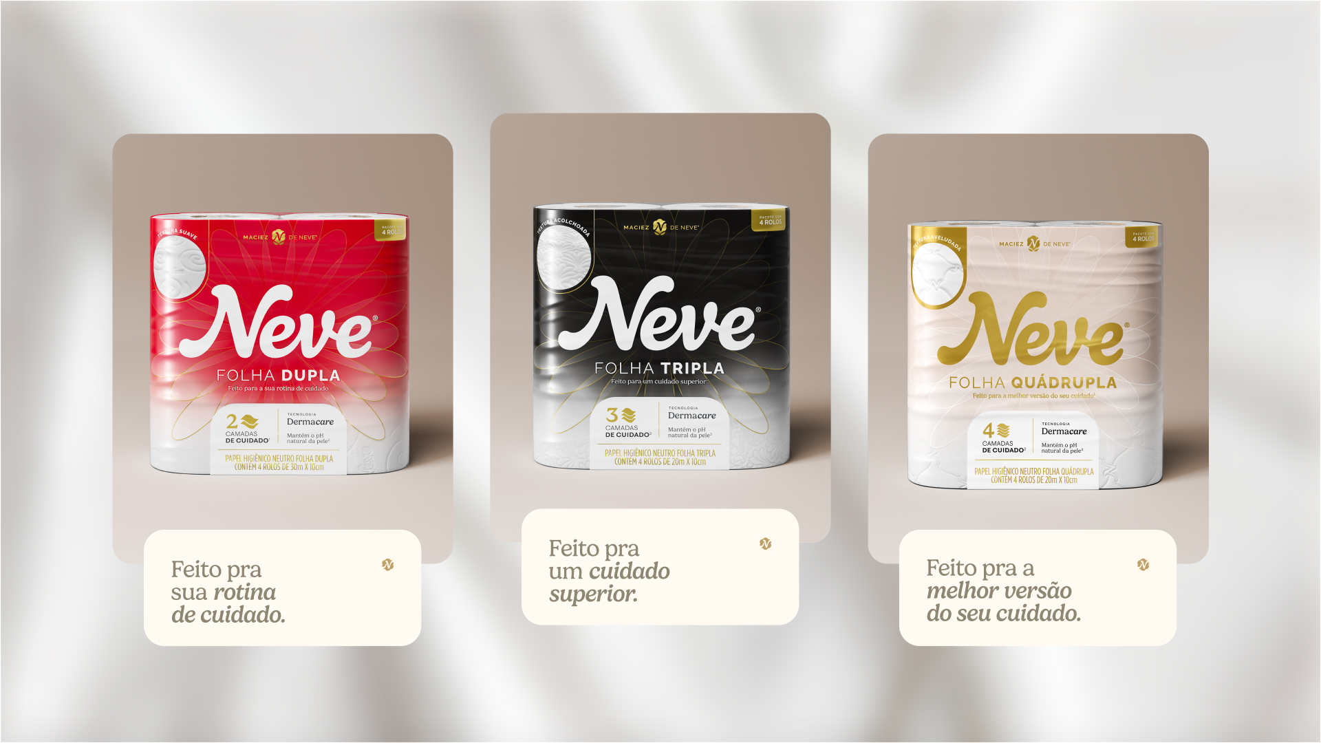 Votar neste projetoLíder no banheiro do brasileiro há mais de 50 anos, Neve definiu os códigos da categoria. Mas, em um mercado “neveficado” onde os concorrentes repetem sua linguagem visual e verbal, era hora de se reinventar para continuar à frente. A partir de uma imersão com consumidores, entendemos que o banheiro mudou: as pessoas buscavam mais conexão emocional com seus produtos e rotina. Junto a isso, entendemos que Neve não era vista apenas como uma marca de higiene pessoal, mas um gesto de autocuidado na rotina. E foi assim que transformamos papel higiênico em bem-estar. Com uma identidade verbal que inspira através de uma linguagem próxima e real, o tom de voz de Neve coloca a marca em um novo momento para mostrar com quantas camadas de cuidado se faz uma rotina.