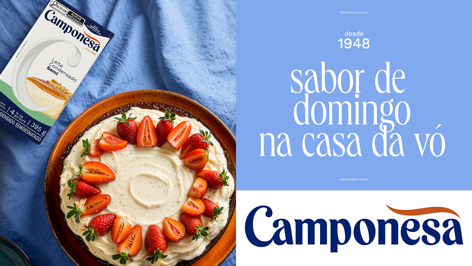 Votar neste projetoO rebranding da Camponesa se inspira na união do afeto e da criatividade, essência de suas raízes mineiras, para construir um posicionamento proprietário que transforma valor cultural em apelo universal. A estratégia ganha vida em um sistema de embalagens de forte impacto visual na gôndola, uma experiência de PDV que materializa a cozinha mineira em um espaço sensorial, e uma campanha de lançamento que convida o Brasil a fazer dos afetos novos sabores.