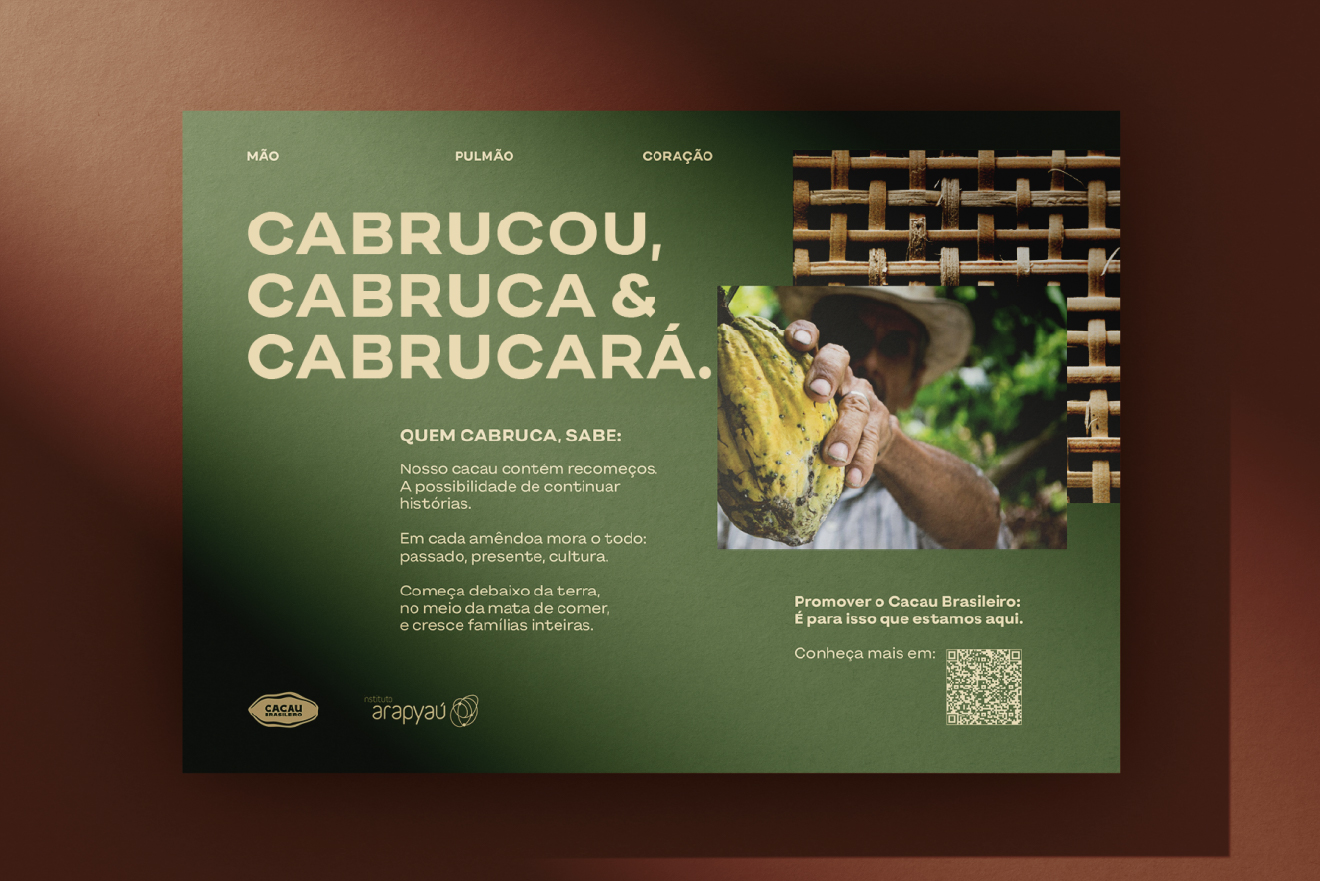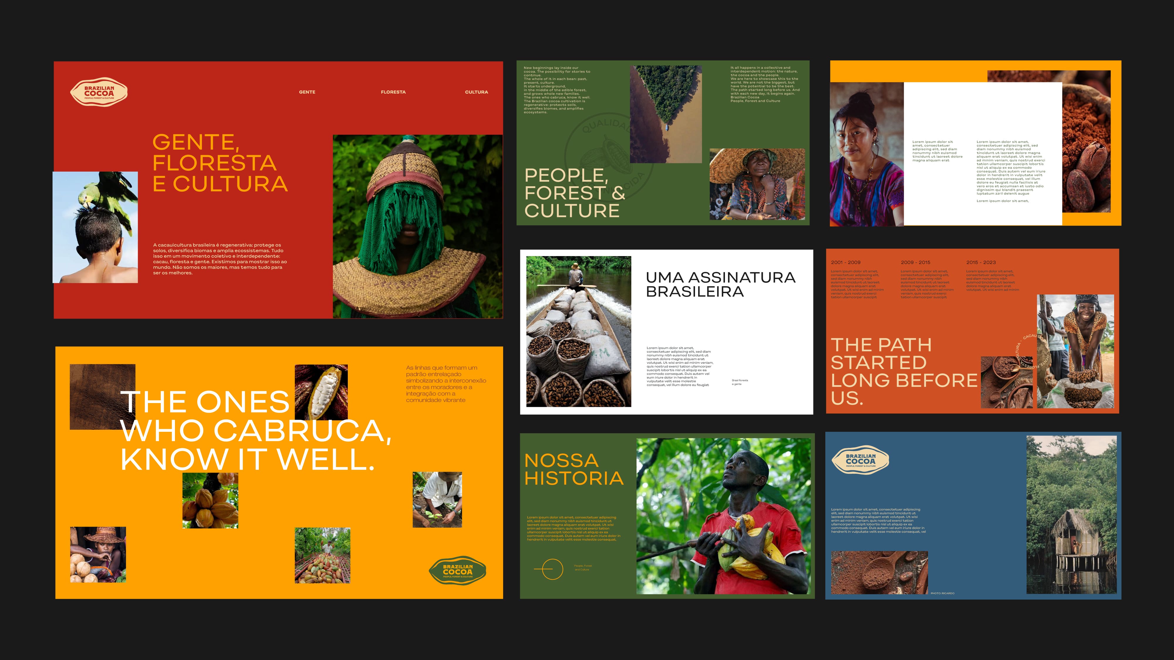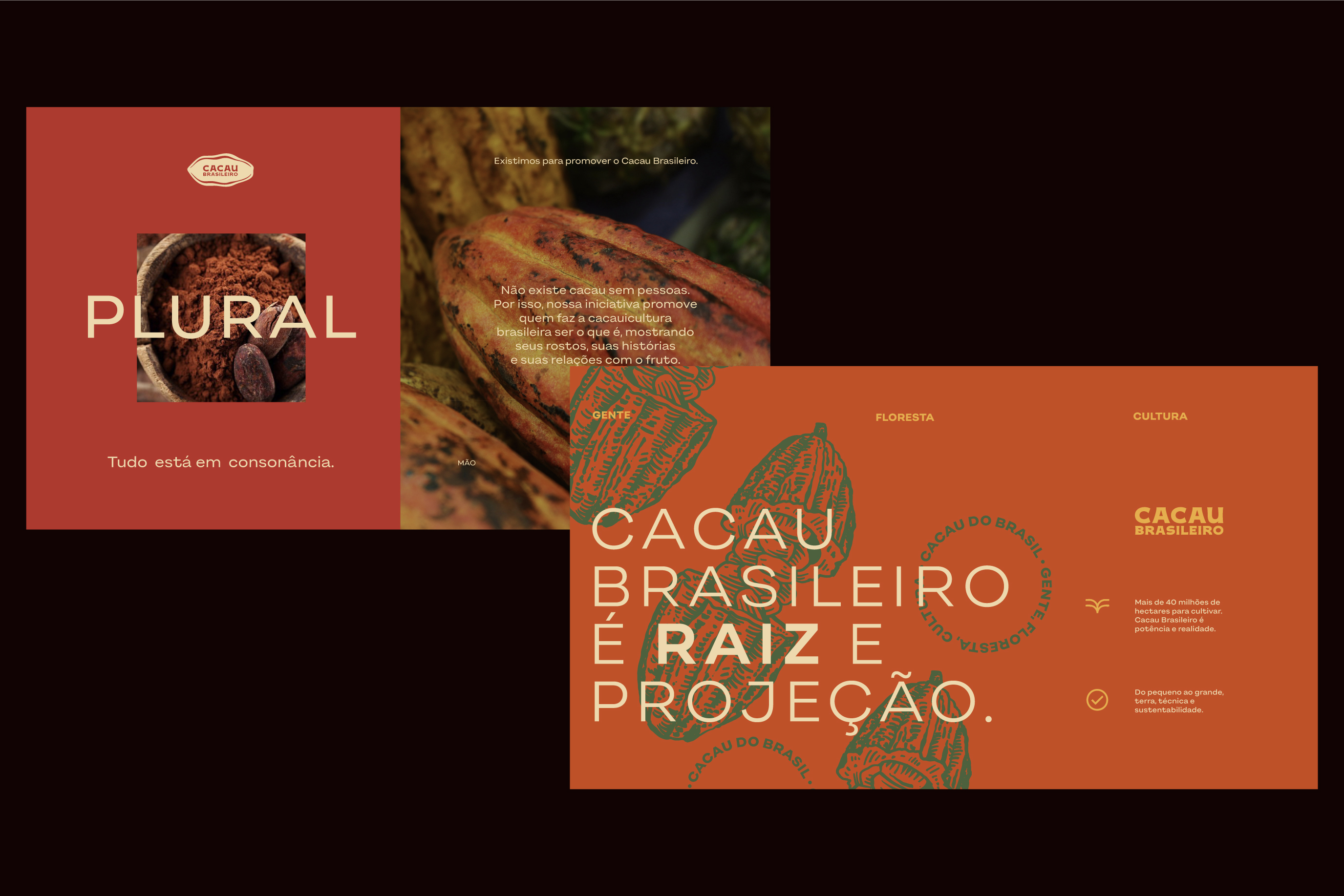 Votar neste projetoFazer o Cacau Brasileiro falar e, na sua voz, levar a nossa identidade. Começa no próprio nome, descritivo e territorial, continua na tagline "Gente, Floresta e Cultura", que destaca o caráter coletivo do cultivo, e cresce na expressão verbal, que entrega tanto o tom confiável para a comunicação em congressos internacionais, quanto calor e a poesia de um produto enraizado na história do Brasil, capaz de transformar histórias, famílias e comunidades.