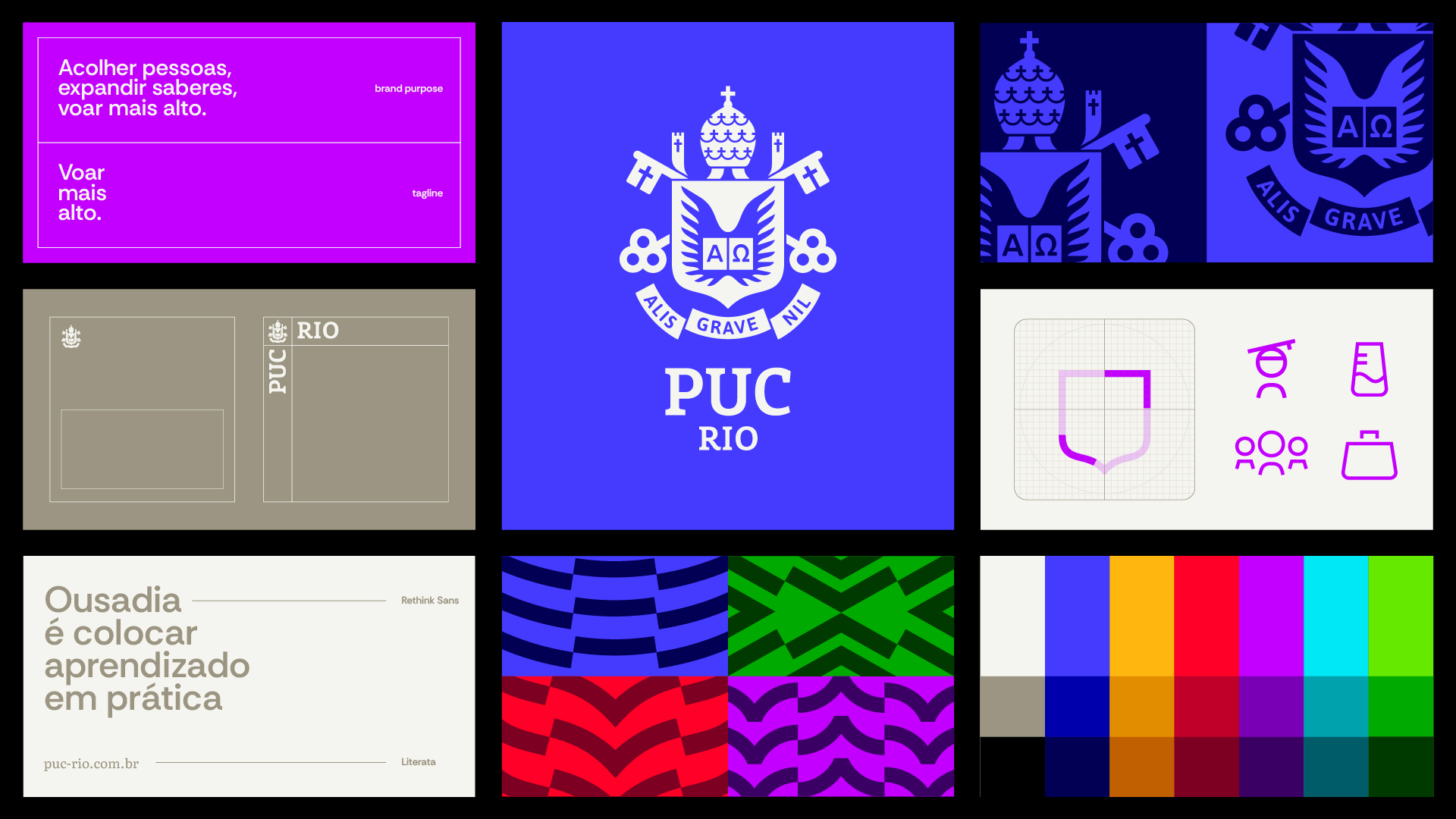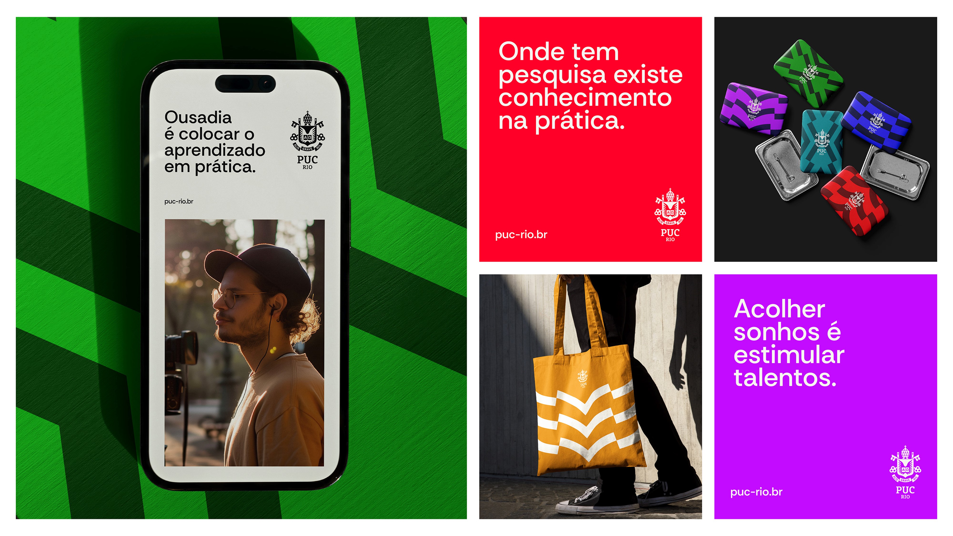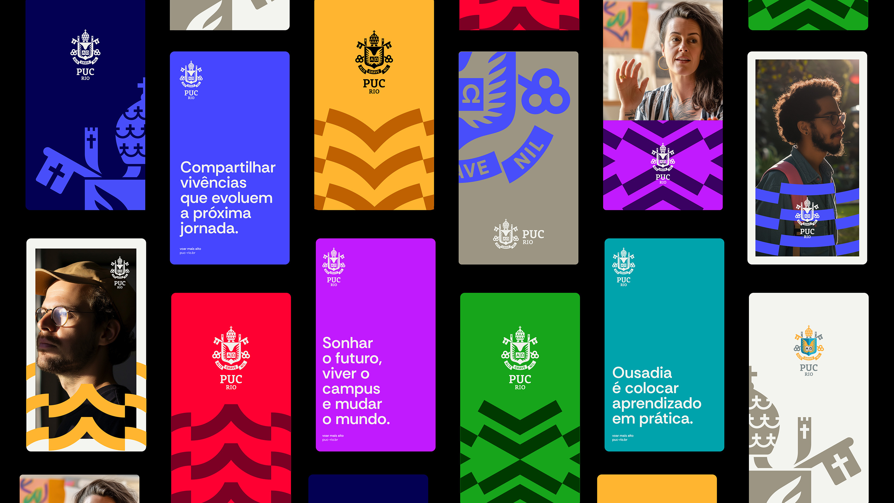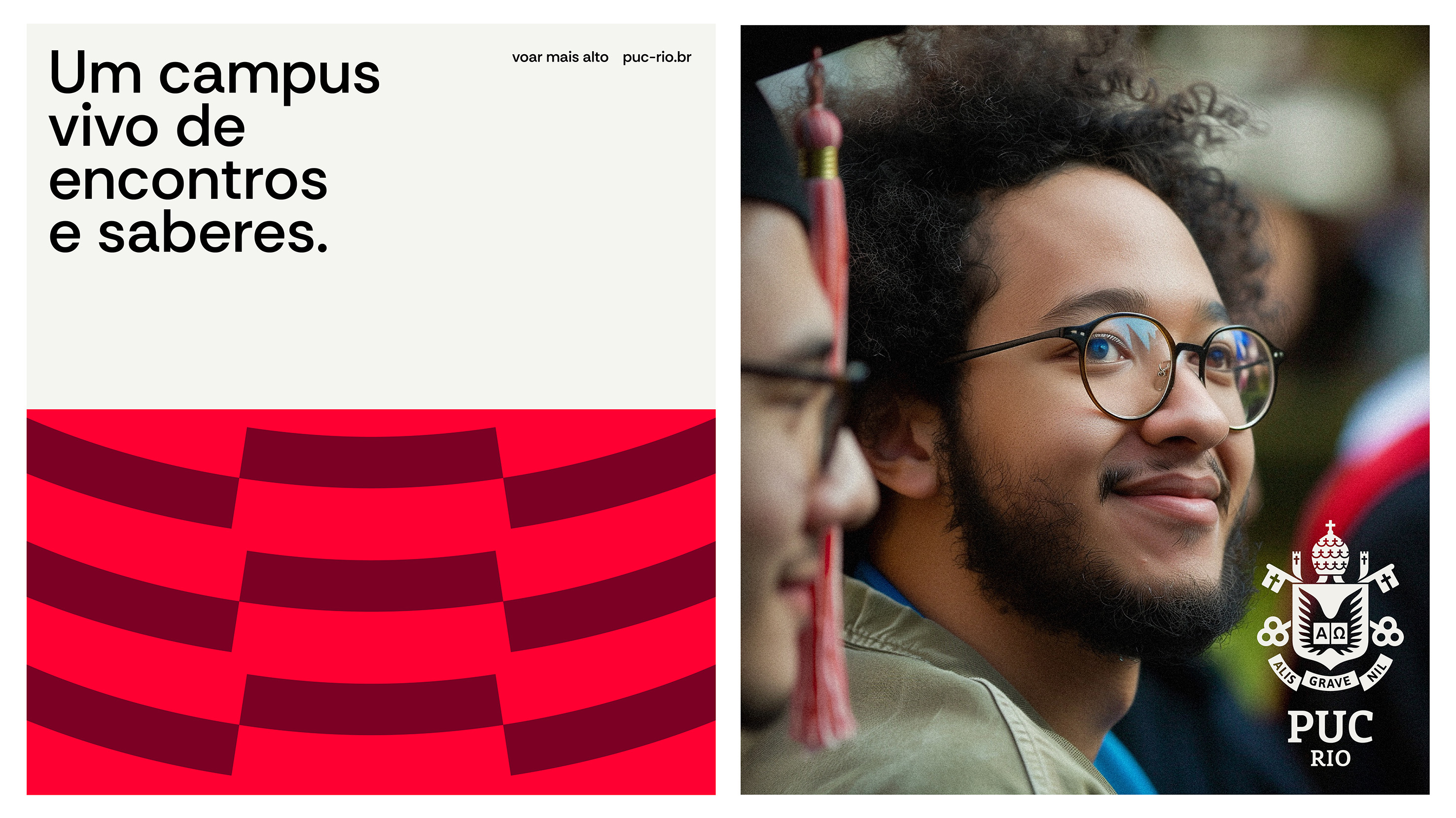 Votar neste projetoResgatamos as fortalezas da PUC-Rio para criar um posicionamento que respeitasse seu legado, reforçasse seu caráter comunitário, além de atrair novos alunos para dialogar com o Rio de Janeiro para além das suas desigualdades. Cocriamos uma marca reflexiva, criativa, acolhedora e corajosa, traduzindo a universidade como um lugar de acolhimento e desafios. A universidade extrapola seus muros com projetos que vão de comunidades carentes a negócios de grandes empresas. Seu campus é um espaço de encontro entre pessoas e saberes, desafiando todos a repensarem seu lugar no mundo. Cada elemento visual foi pensado para ser usado de forma flexível. Desde uma linguagem mais institucional, com o brasão expandido e cores oficiais, até uma abordagem mais dinâmica, com grafismos e cores vibrantes.