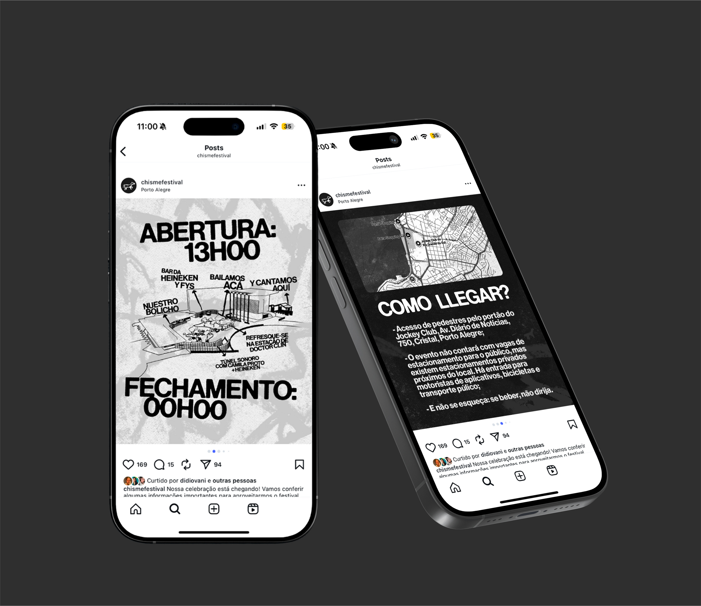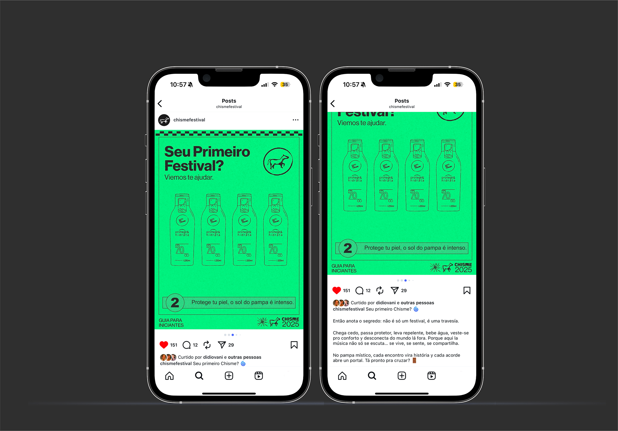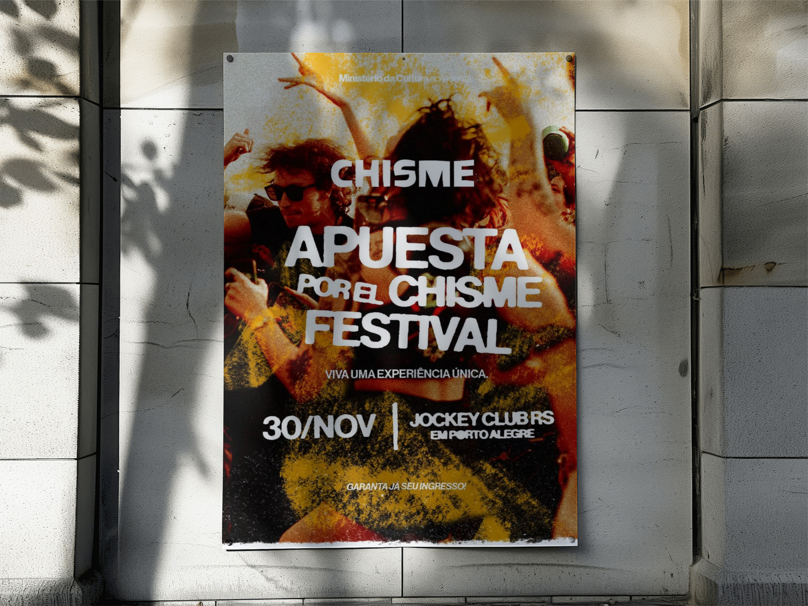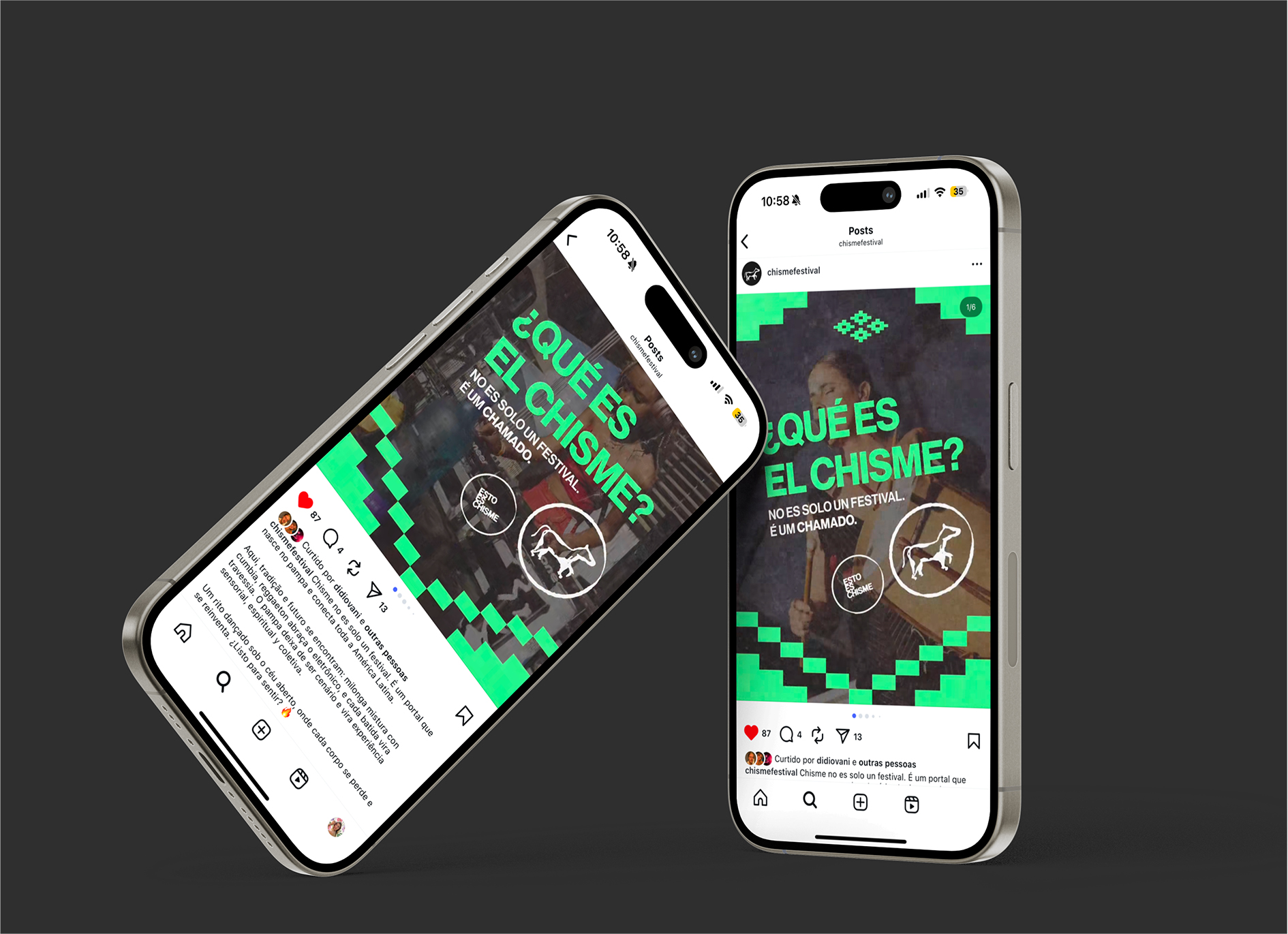 Votar neste projetoA voz da marca Chisme é construída sobre o portunhol: uma mescla fluida entre português e espanhol, que ecoa nas fronteiras culturais do Cone Sul. O portunhol é a linguagem simbólica de uma fronteira imaginária que une e não separa. É o idioma híbrido do pampa, dos trânsitos culturais, das gambiarras linguísticas que transformam limitação em estilo. Esse tom híbrido expressa familiaridade, calor e informalidade, como se cada manifestação da marca fosse uma conversa íntima ao pé do ouvido. Frases utilizadas na comunicação como “Yo estava indo ao Chisme para fugir. Pero volví a mi casa por la primeira vez.” evidenciam essa escolha linguística, cruzando línguas e afetos. A voz Chisme é coloquial, autêntica e culturalmente híbrida, traduzindo isso em conexão genuína com seu público.