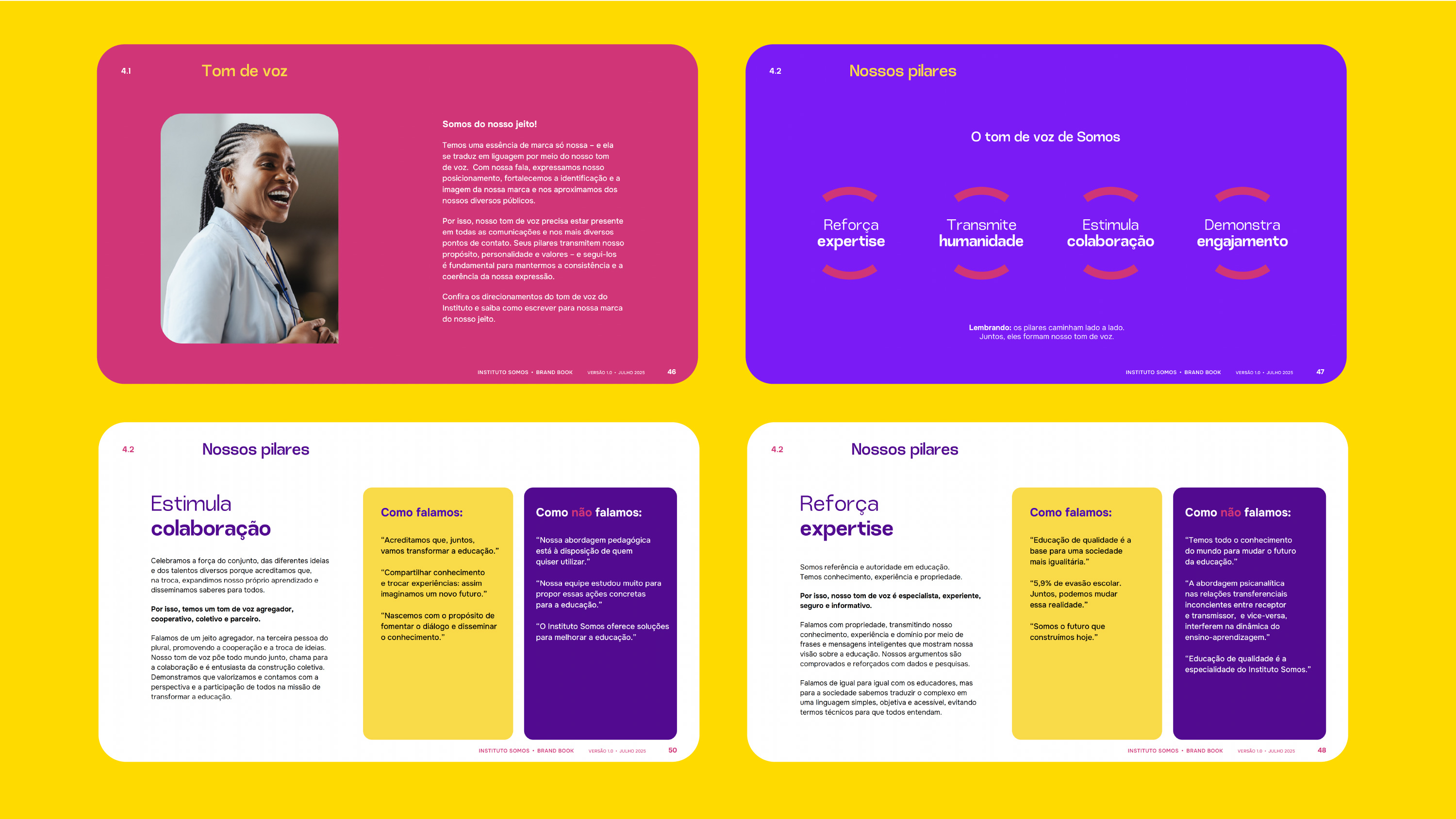 Votar neste projetoO que separa milhões de jovens brasileiros de seus sonhos não é a falta de vontade, mas o abismo da desigualdade educacional. O Instituto Somos nasceu para mudar essa realidade e democratizar o acesso à educação de qualidade, valorizando o educador, engajando a sociedade e promovendo ações que contribuem para a criação de políticas educacionais mais efetivas. Criamos um tom de voz que, mais do que comunicar, se transforma em um movimento vivo: uma voz ativa, empoderada e mobilizadora, capaz de ecoar como expressão de impacto social e promover mudanças reais. Uma linguagem que sempre evoca o coletivo, afinal está na nossa essência de marca “Somos a força que impulsiona a educação” uma voz que convida para a ação e reforça o papel do Instituto como articulador de uma rede de transformação