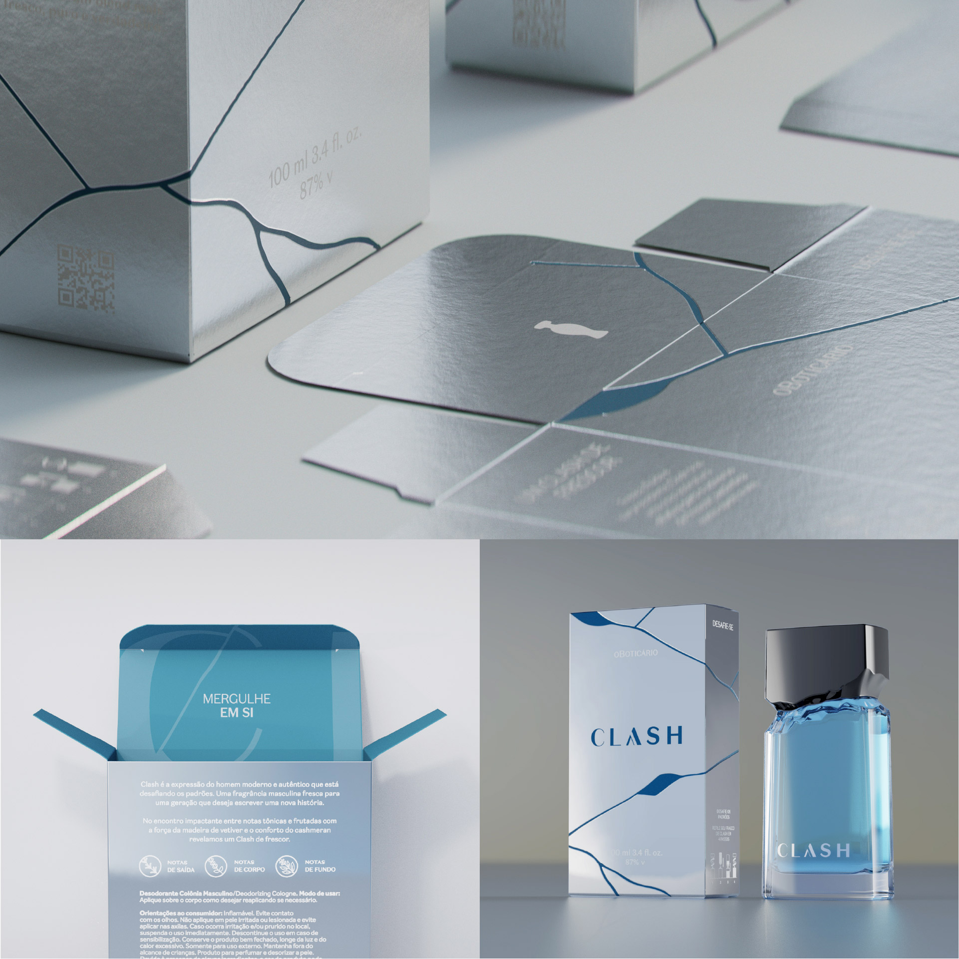 Votar neste projetoClash é uma marca de perfume criada para o Boticário com o propósito de representar um novo olhar sobre a masculinidade. O projeto de branding partiu da ideia de atrito — entre passado e presente, rigidez e fluidez — para construir uma identidade verbal e visual que fosse aspiracional e autêntica. A marca Clash materializa esse posicionamento em todos os pontos de contato: naming, narrativa, visual, embalagem e campanha. O resultado é uma marca com propósito claro, linguagem simbólica e apelo emocional, que desafia os códigos tradicionais do segmento e amplia a representatividade na perfumaria.