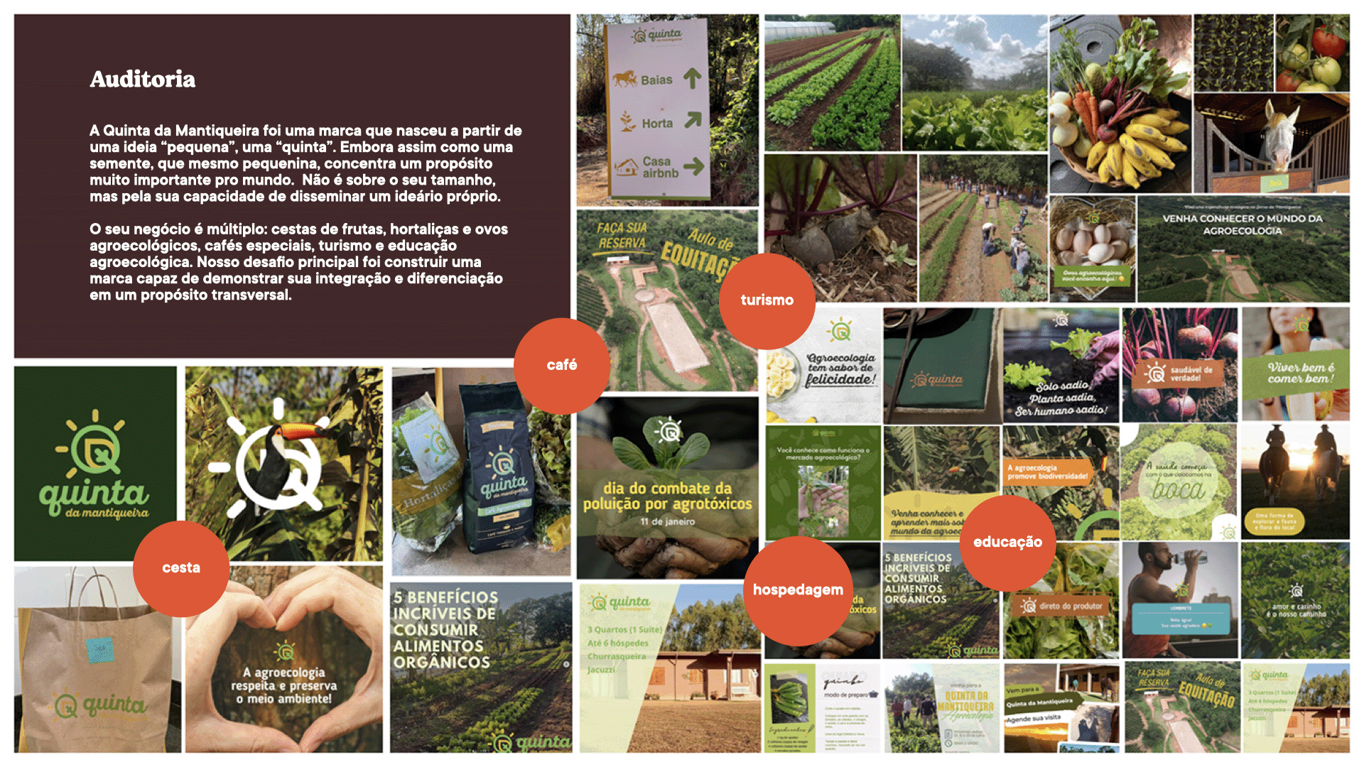 Votar neste projetoQueira Agroecologia é uma marca que nasceu do rebrand da “Quinta da Mantiqueira”. Uma marca que nasceu de uma ideia “pequena”, uma “quinta”. Embora assim como uma semente que, mesmo pequenina, concentra um propósito muito importante para o mundo. Não se trata do tamanho, mas da capacidade de disseminar um ideário próprio: a agroecologia. O negócio é múltiplo: cestas de frutas, hortaliças, ovos, geleias, cafés especiais, turismo e educação agroecológica. Nosso principal desafio foi construir uma marca capaz de demonstrar sua integração e diferenciação dentro de um propósito transversal.
