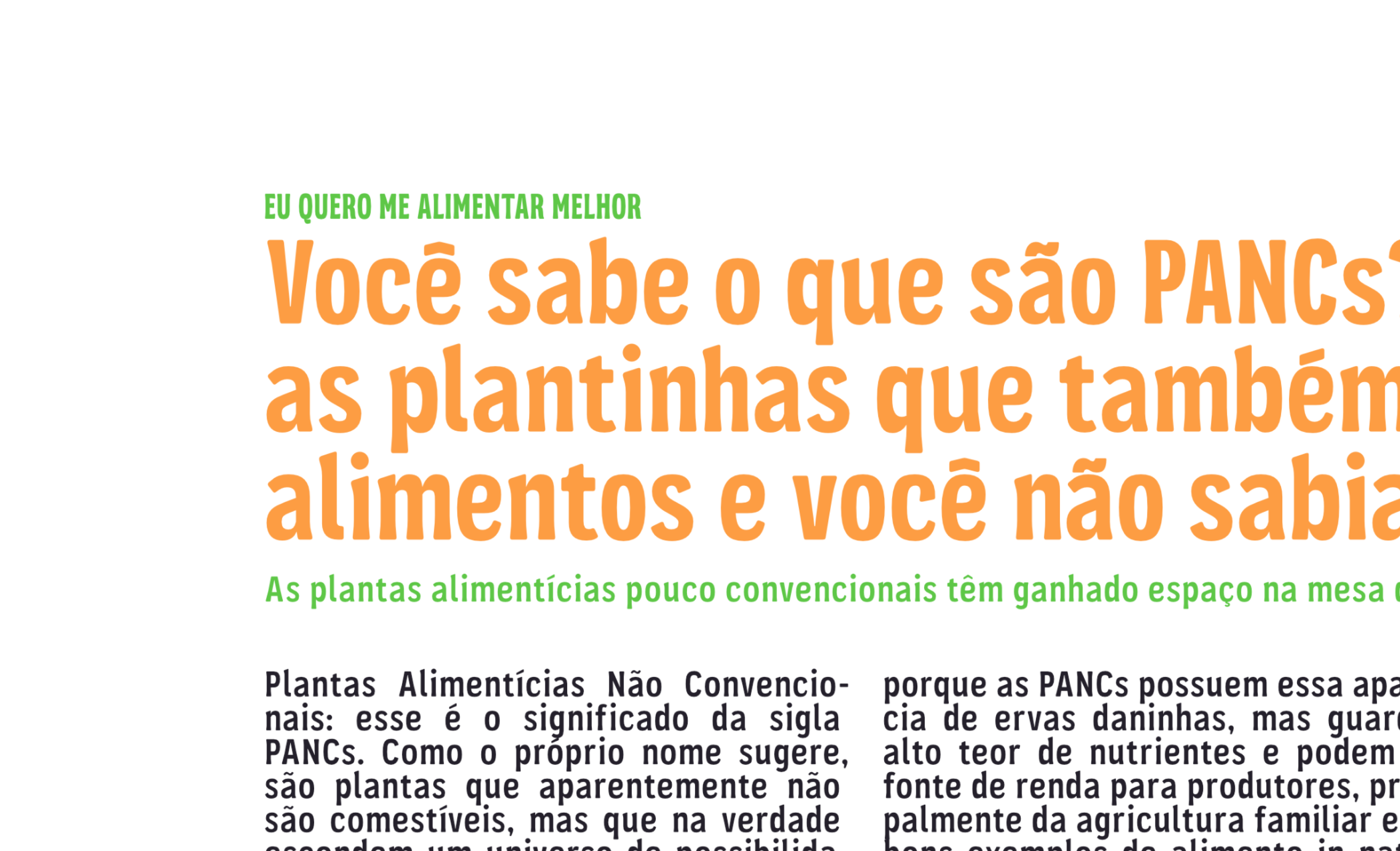 Votar neste projetoMatos de Comer apresenta um trabalho relacionado a divulgação científica ecológica com grande foco na criação de conteúdo sobre Plantas comestíveis não convencionais (PANCs). Para apoiar esse importante trabalho, foi desenvolvida uma fonte variável com um eixo que varia entre estilos de texto e display, acompanhada por um conjunto de ícones, que juntos, traduzem a personalidade da marca para o universo tipográfico. A fonte conta com mais de 300 caracteres, que incluem além das letras e números, letras alternativas, números tabulares, acentos baixinhos, caracteres alinhados à caixa alta e também conta com o set de ícones.