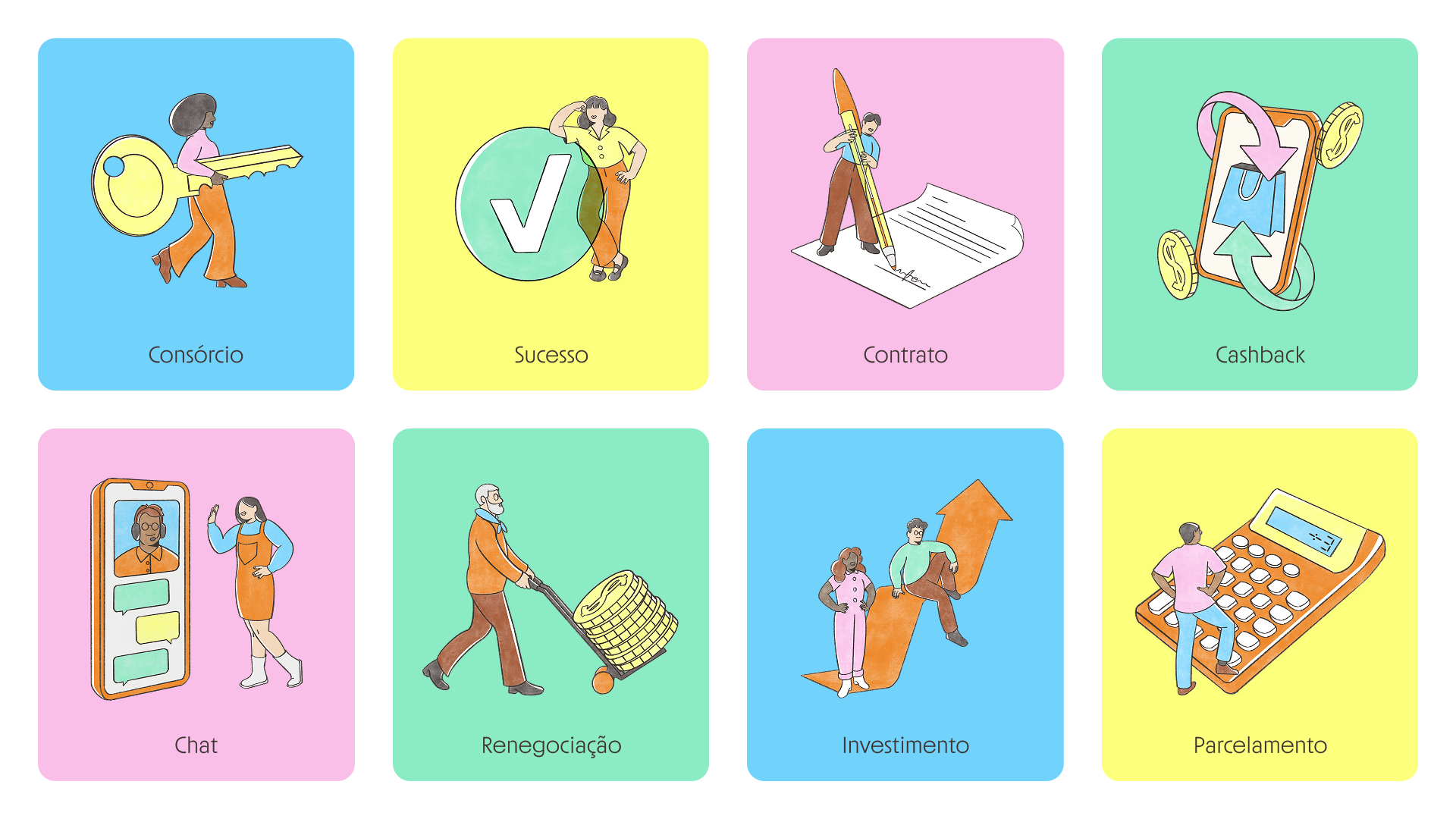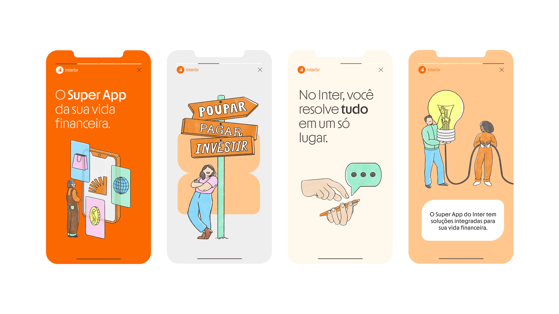 Votar neste projetoCriamos um sistema de ilustrações para o Banco Inter, formado por dezenas de composições desenvolvidas para garantir versatilidade e consistência em diferentes contextos de comunicação. Personagens, objetos e cenas foram pensados para reforçar a identidade da marca em campanhas, materiais institucionais e no ambiente digital. O estilo rompe com o padrão dominante em startups, empresas de tecnologia e fintechs, marcado por ilustrações vetoriais duras, iconográficas e repetitivas, e propõe uma abordagem mais humana, artesanal e singular para aproximar o Inter das pessoas.