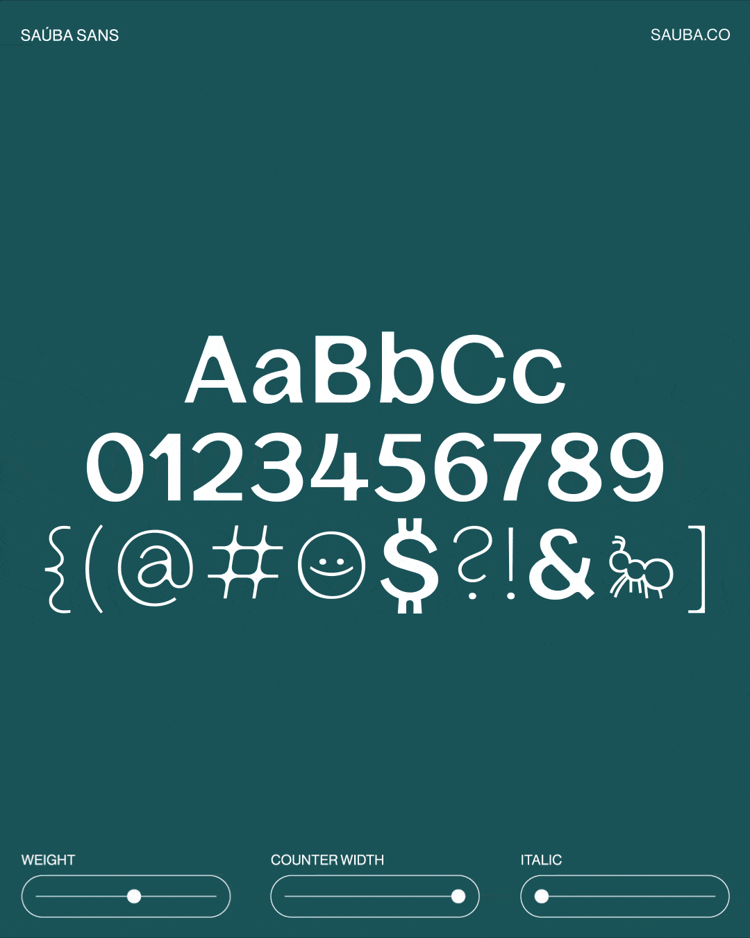 Votar neste projetoSaúba [saúva] é a formiga que regenera o solo. Cria. Troca. Facilita. Faz crescer. Brasileira, coletiva por natureza. É nesse espírito que foi criada a Saúba: um estúdio de design e branding que colabora no cultivo de marcas responsáveis para organizações que desejam evoluir e escalar. Design com sentido para pessoas, negócios e o mundo. Assim nasce a Saúba Sans, projetada para um estúdio que já cresce cheio de ideais.