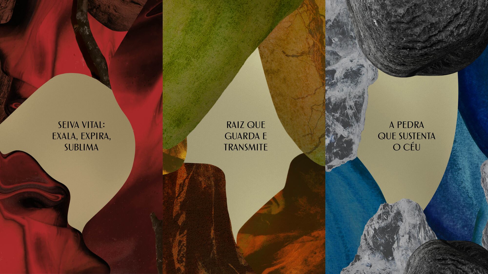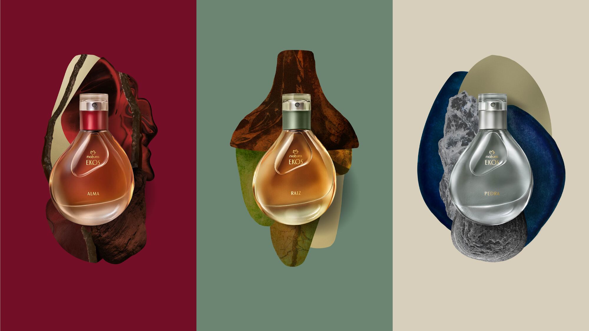Votar neste projetoA identidade visual da Eau de Parfum Ekos nasceu de um processo artesanal e experimental. Em nosso estúdio, trituramos raízes, prensamos resinas e registramos texturas que, digitalizadas, se transformaram em colagens abstratas. Cada imagem traduz o espírito de uma fragrância — Alma, Pedra e Raiz — ecoando os ingredientes da floresta. As ilustrações não representam a Amazônia; deixam-na falar em camadas, cores e gestos. São fragmentos de matéria convertidos em memória sensorial. Assim, design e perfume se unem para levar ao público a experiência única de sentir a floresta na pele.