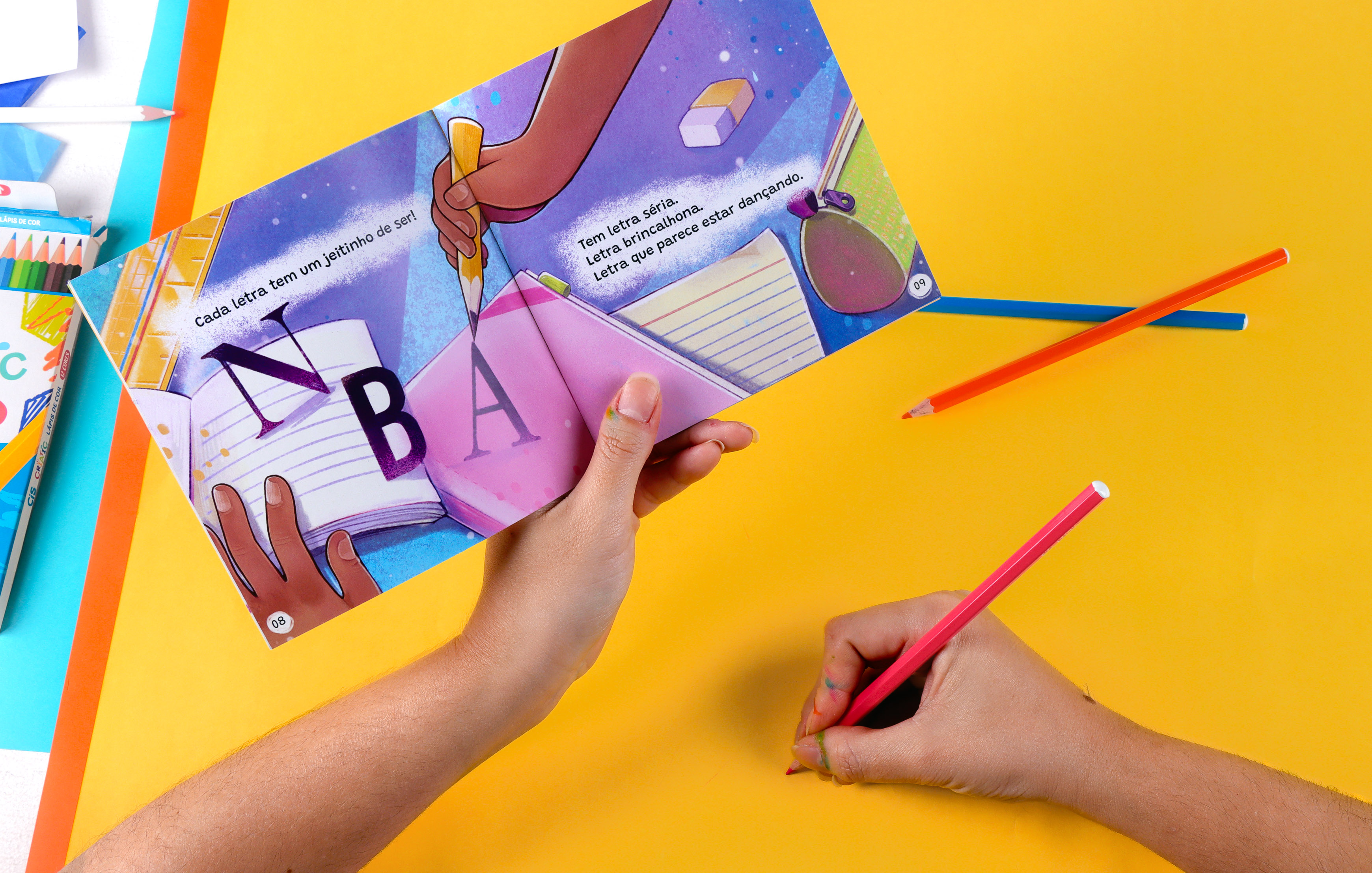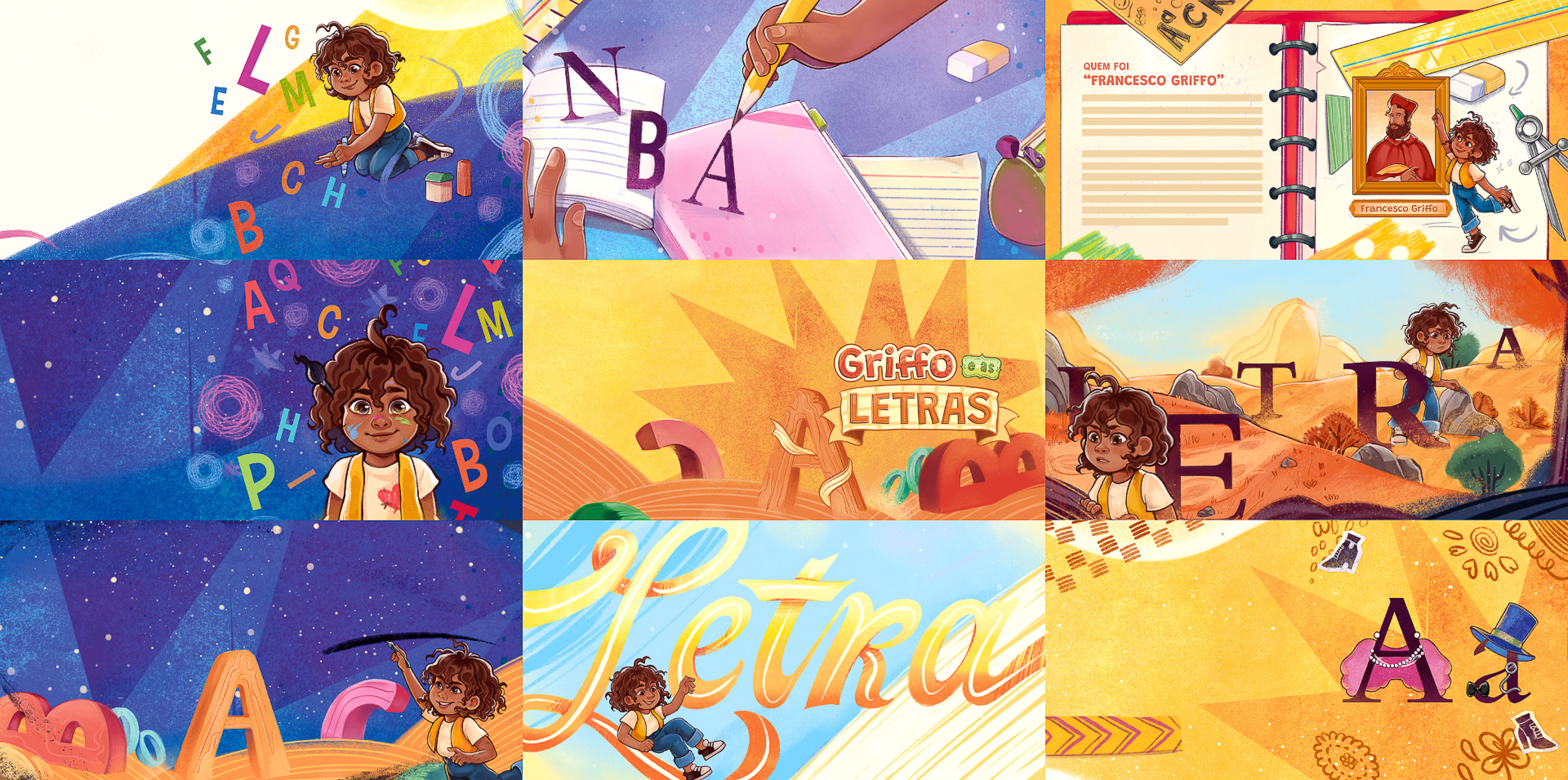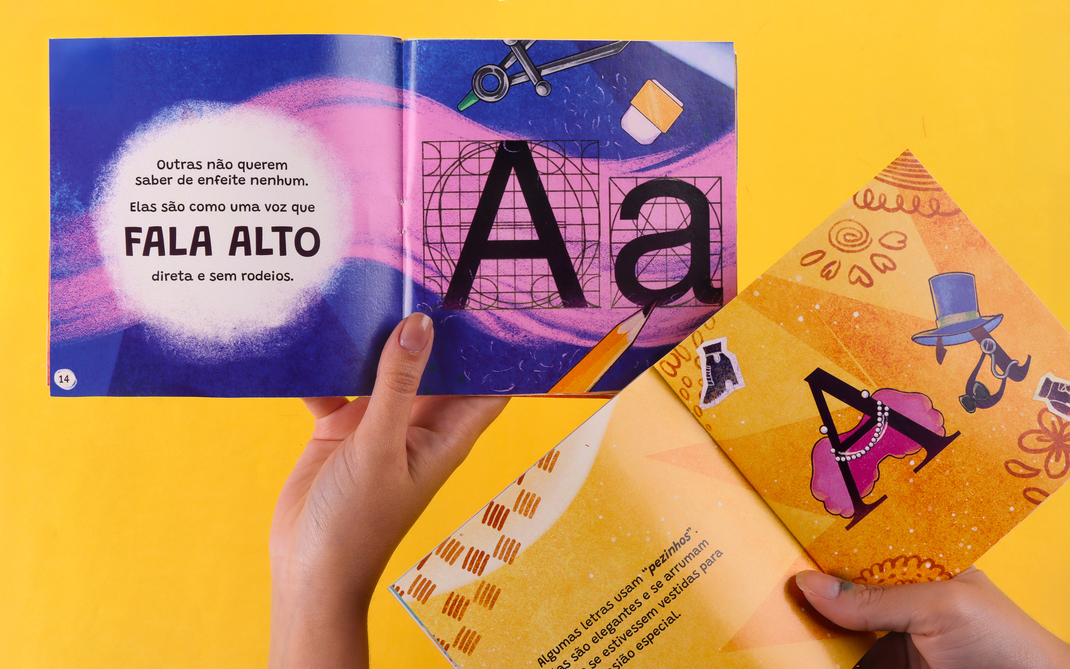 Votar neste projeto"Griffo e as Letras" é um projeto editorial estudantil de livro ilustrado que busca introduzir o pensamento visual com tipos para o público infantil. Partindo da microtipografia, que trata do desenho das letras e seus detalhes, o material aborda a tipografia como um sistema visual com possibilidades de representação, desassociando as letras de uma função puramente fonética e utilizando metáforas visuais para apresentar conceitos técnicos da área. A proposta desenvolve uma narrativa didática com o uso de ilustrações digitais que simulam técnicas manuais, como colagem, carimbo e giz. A concepção das ilustrações partiu de explorações gráficas que buscassem representar o mundo sob a ótica da infância, buscando estabelecer conexões com conceitos e visualidades reconhecíveis para os leitores.