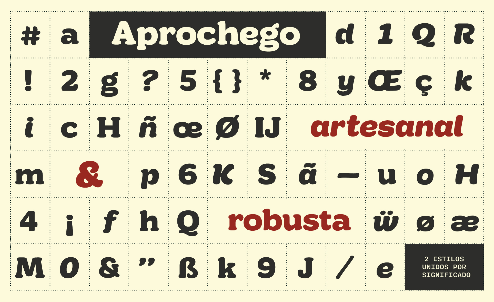 Votar neste projetoA família tipográfica Aprochego é um projeto de conclusão de graduação em Design Visual, que explora como o design de tipos pode expressar valores da memória gastronômica gaúcha. O projeto buscou um caminho que não reduzisse a cultura a elementos hegemônicos ou estereotipados, mas que se apoiasse na memória — entendida por Halbwachs, como coletiva — para dar forma a narrativas afetivas e culturais. Os parâmetros da fonte display foram guiados não só por critérios funcionais, mas também por conversas com pessoas ligadas à gastronomia local para entender e validar o projeto. Essa metodologia colaborativa revelou valores centrais da cozinha local — fartura, artesanalidade, campo/familiar e substancialidade — que fundamentaram a criação de dois estilos distintos unidos pelo significado.
