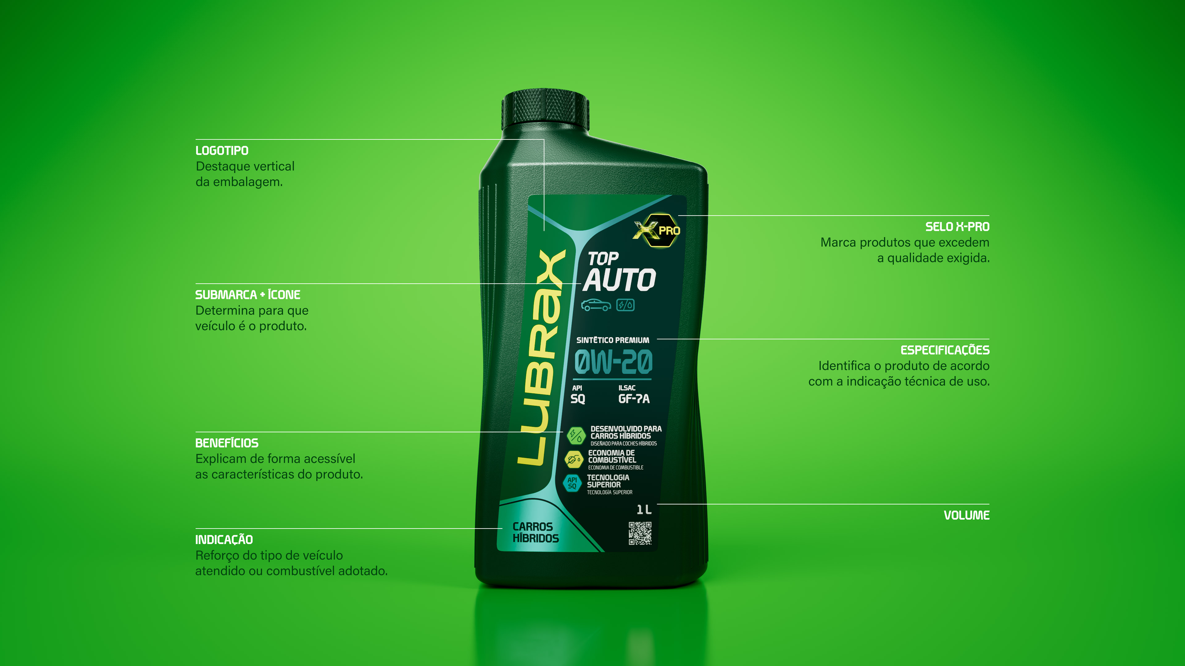 Votar neste projetoLubrax, um ícone brasileiro, inicia uma nova fase com uma identidade visual que reafirma seu compromisso com inovação e mobilidade. No processo, identificou-se a complexidade da categoria de lubrificantes, com excesso de informações técnicas nas embalagens e a importância dos numerais de viscosidade na escolha do óleo correto. A solução foi transformar o texto obrigatório em um ativo de identidade: a tipografia exclusiva Lubrax Type. Desenvolvida a partir do posicionamento da marca – tecnológica, de alta performance e fluida – a fonte possui 4 eixos variáveis, permitindo adaptabilidade do digital ao impresso. Com acabamentos geométricos e chanfrados que remetem à identidade hexagonal da marca, e variáveis fluidas que contrastam rigidez tecnológica com a fluidez do óleo ("Fluentologia")