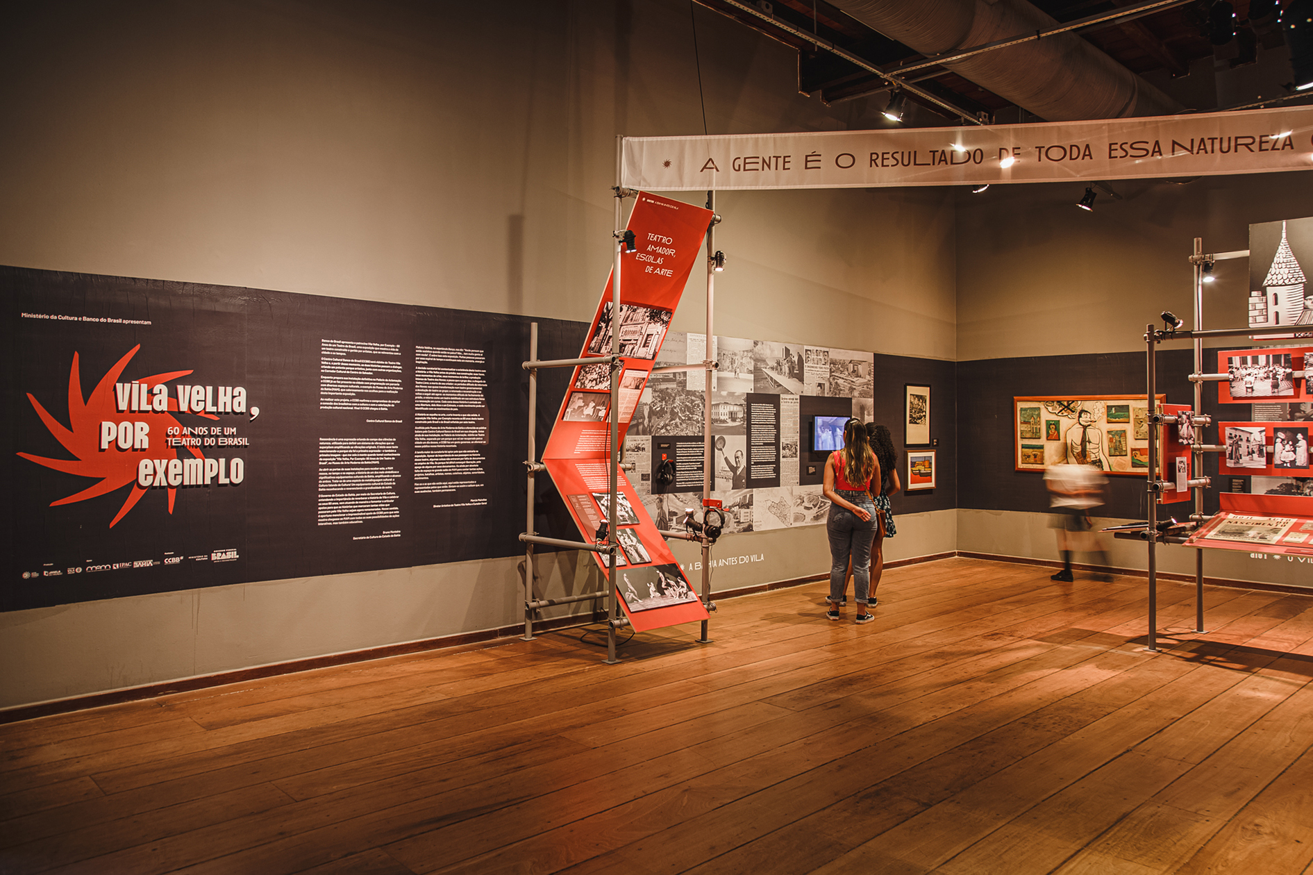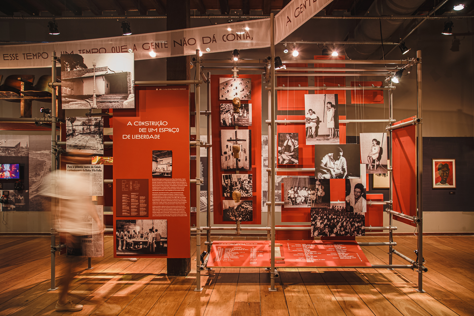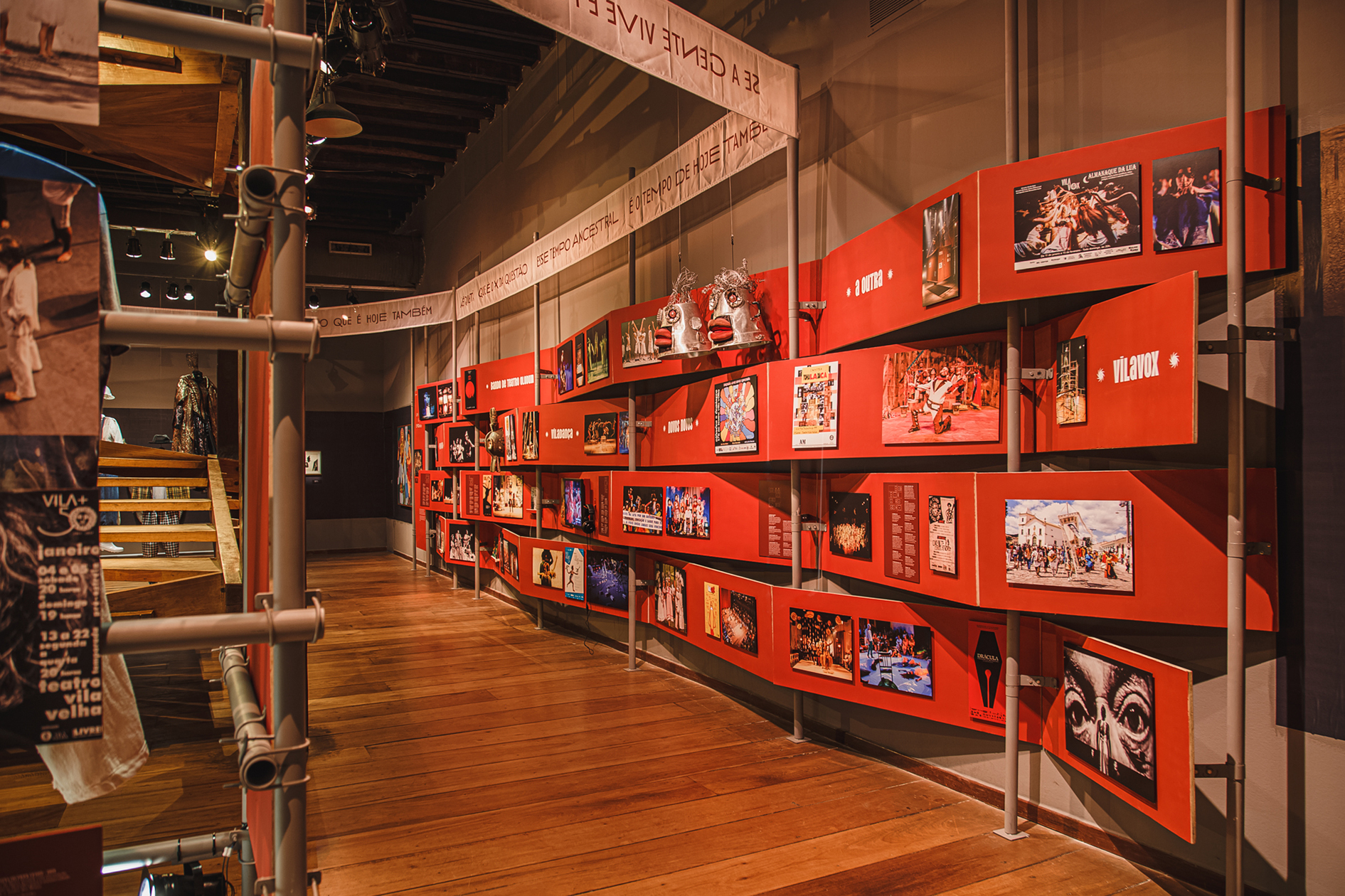 Votar neste projetoA expografia criada para a mostra comemorativa dos 60 anos do Teatro Vila Velha incluiu a criação da identidade visual e do sistema de sinalização, além da concepção espacial e do detalhamento executivo de todos os elementos expográficos que deram suporte a mais de 400 itens, entre documentos, reproduções, fotografias, figurinos, áudios, vídeos e obras do acervo do MAM-BA. A expografia foi concebida como um turbilhão de memórias girando em espiral ao redor da icônica escada desenhada por Lina Bo Bardi para a sala principal do Solar do Unhão. Um espaço desenhado para exibir memórias, mas também para abrigar ações, tendo recebido ao longo de 5 meses mais de 86mil visitantes, além de apresentações teatrais, debates, lançamentos e visitas guiadas que mantiveram o espaço em movimento.
