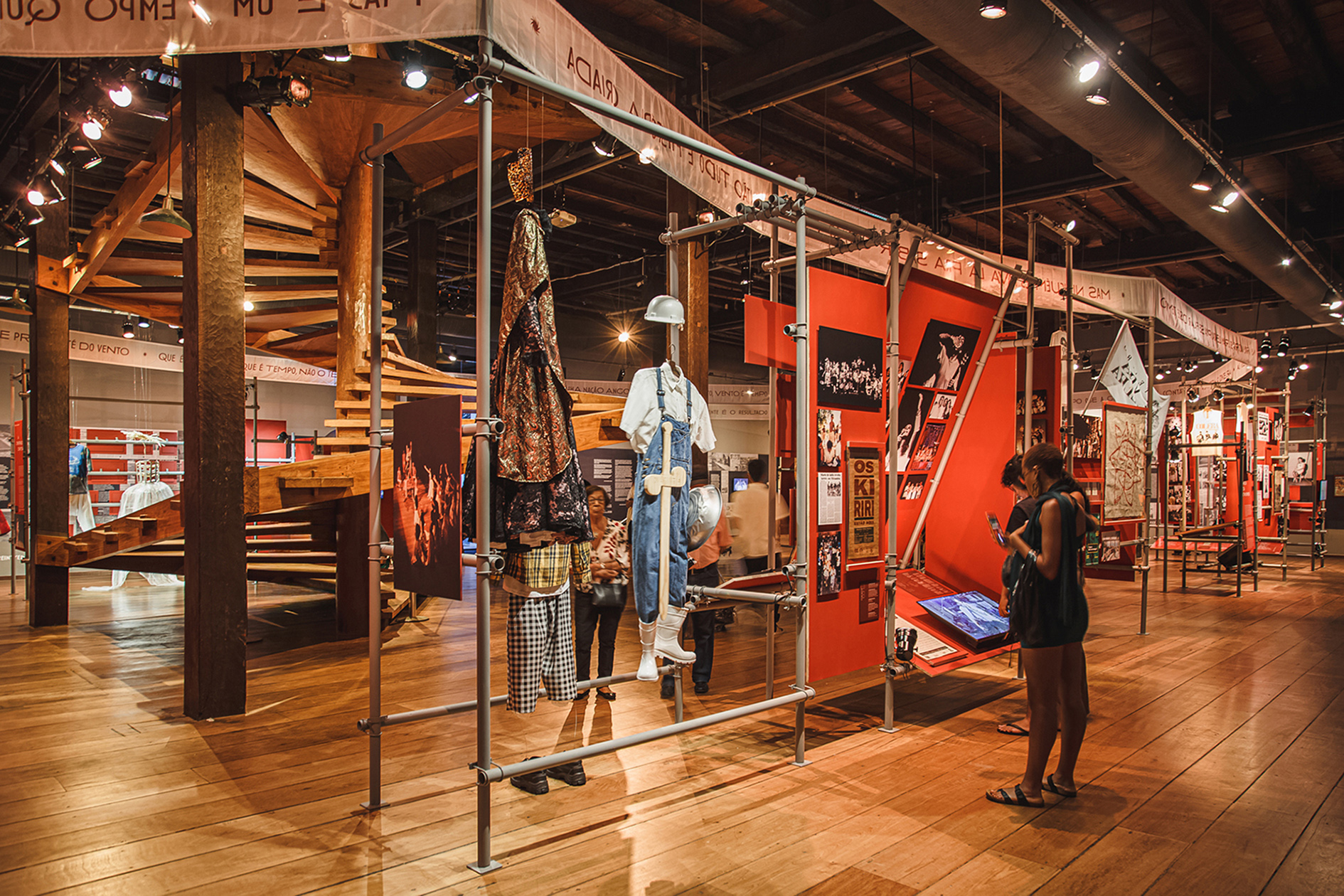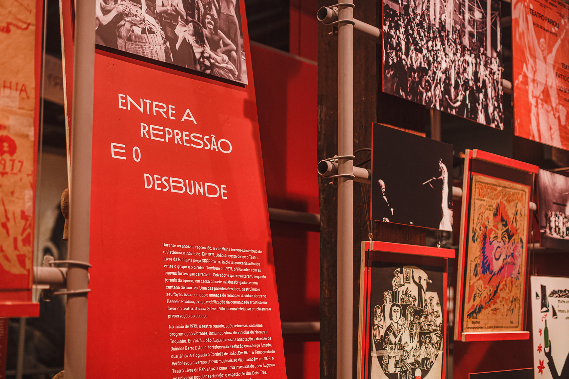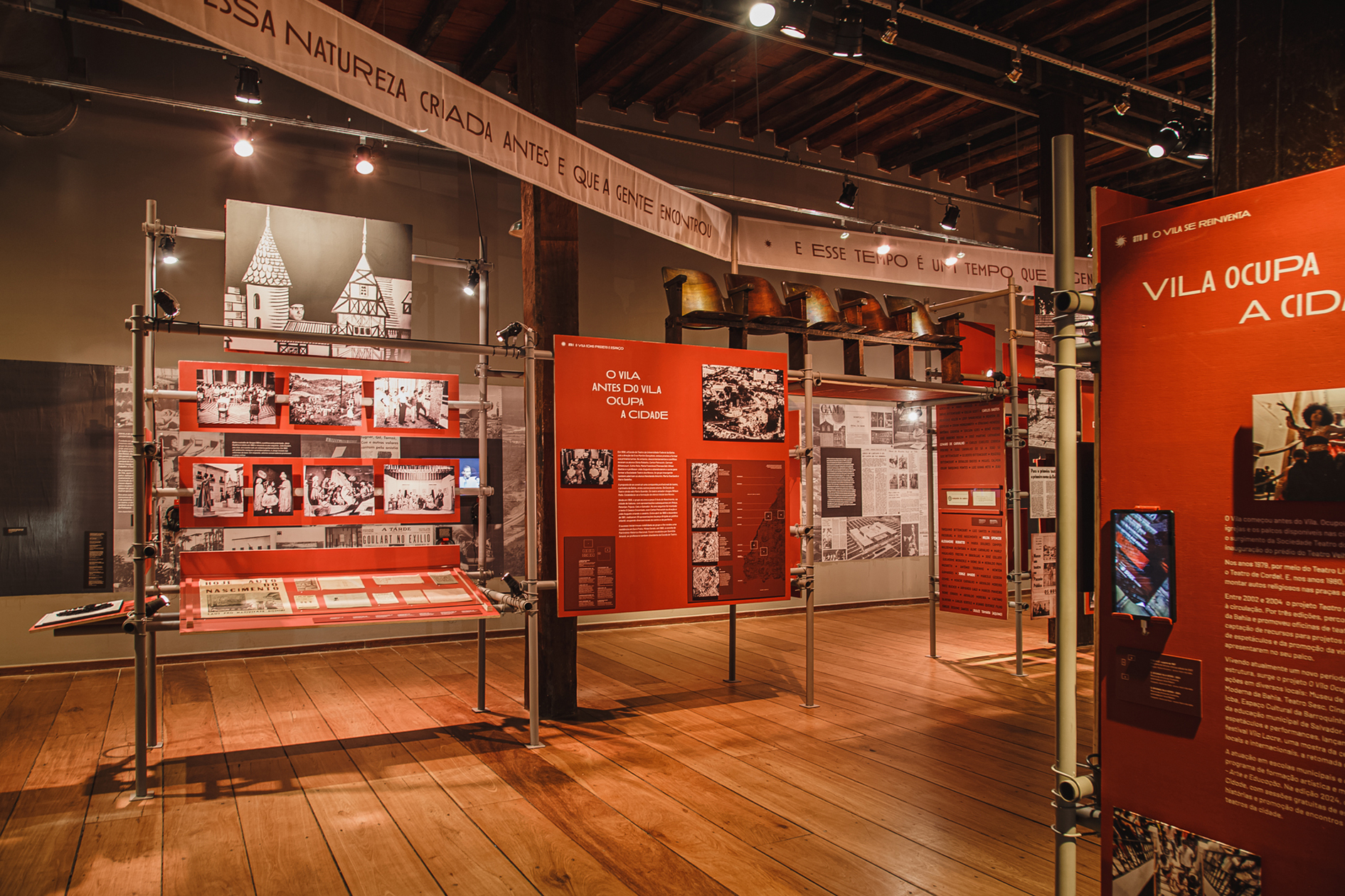 Votar neste projetoA expografia criada para a mostra comemorativa dos 60 anos do Teatro Vila Velha incluiu a criação da identidade visual e do sistema de sinalização, além da concepção espacial e do detalhamento executivo de todos os elementos expográficos que deram suporte a mais de 400 itens, entre documentos, reproduções, fotografias, figurinos, áudios, vídeos e obras do acervo do MAM-BA. A expografia foi concebida como um turbilhão de memórias girando em espiral ao redor da icônica escada desenhada por Lina Bo Bardi para a sala principal do Solar do Unhão. Um espaço desenhado para exibir memórias, mas também para abrigar ações, tendo recebido ao longo de 5 meses mais de 86mil visitantes, além de apresentações teatrais, debates, lançamentos e visitas guiadas que mantiveram o espaço em movimento.