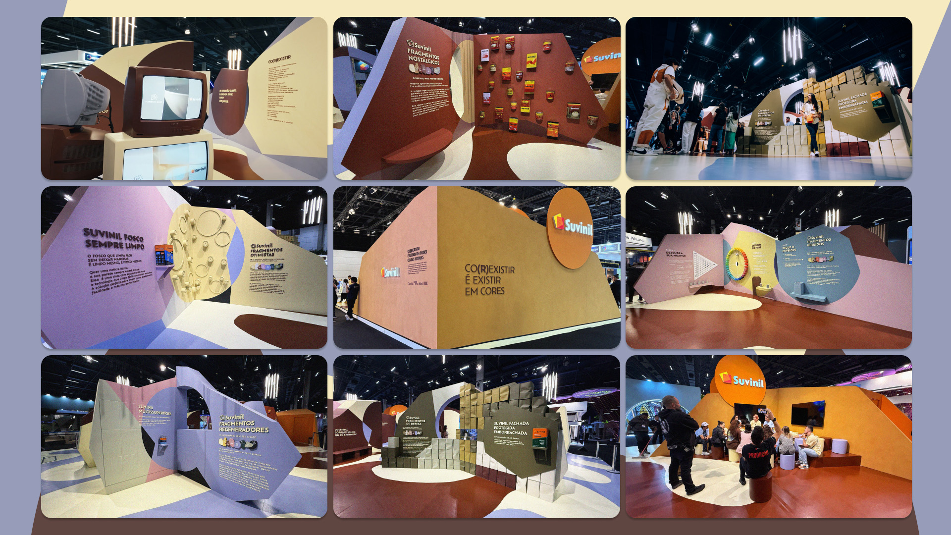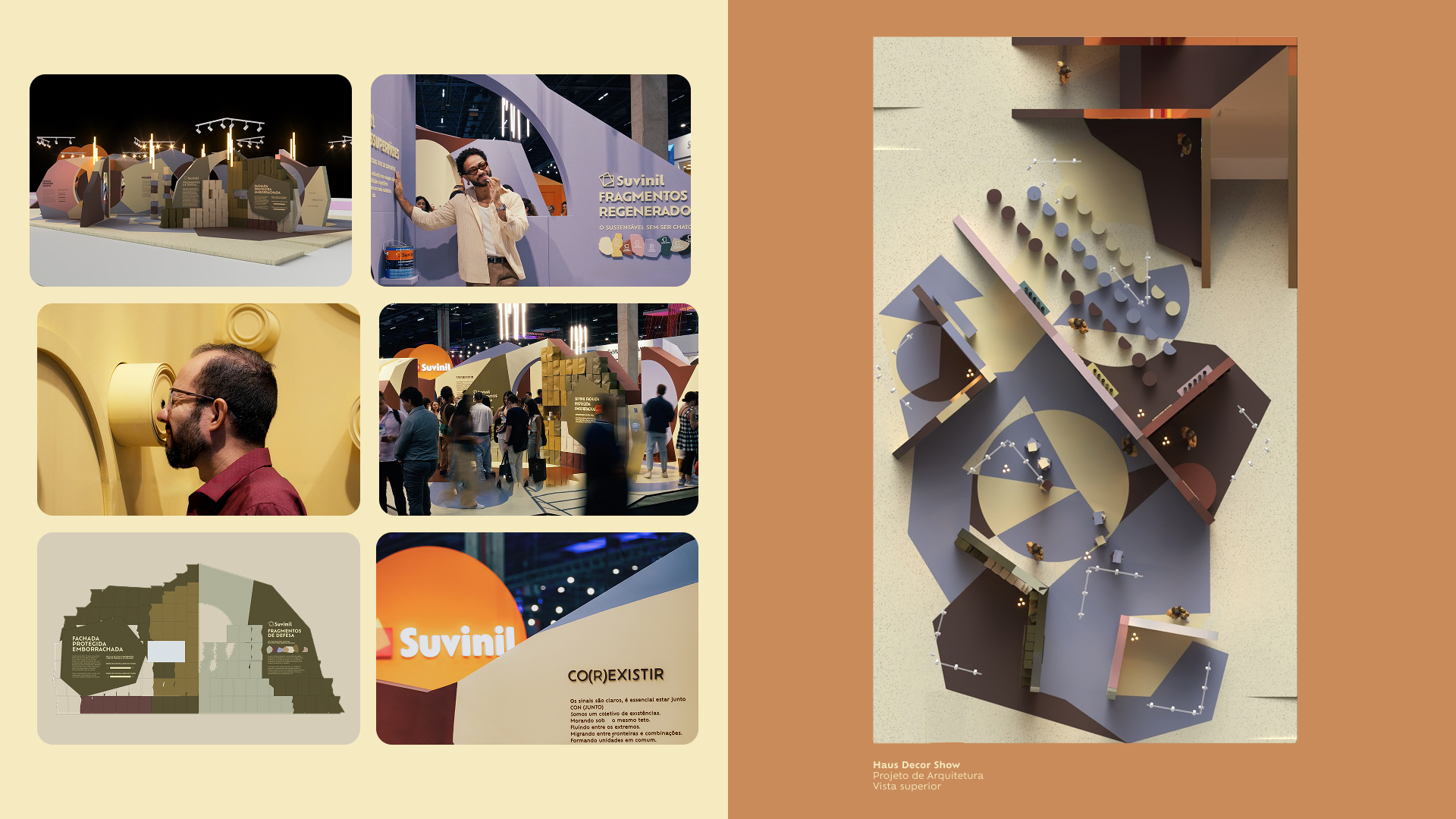 Votar neste projetoA Suvinil participou de três importantes eventos no início de 2025: Haus Decor Show, Feicon e Design Week (em parceria com a Somauma). Nosso projeto foi desenvolver o design de ambiente para os estandes, tendo como fio condutor o conceito Co(r)existir, que promove a convivência entre natureza e tecnologia, expressão individual e coletiva. Esse conceito, vinculado ao lançamento das Cores do Ano da marca, foi adaptado a cada evento por meio de subtemas e ambientes modulares chamados Fragmentos, criando conexões com sustentabilidade, funcionalidade e tecnologia, conforme o público e foco de cada feira.