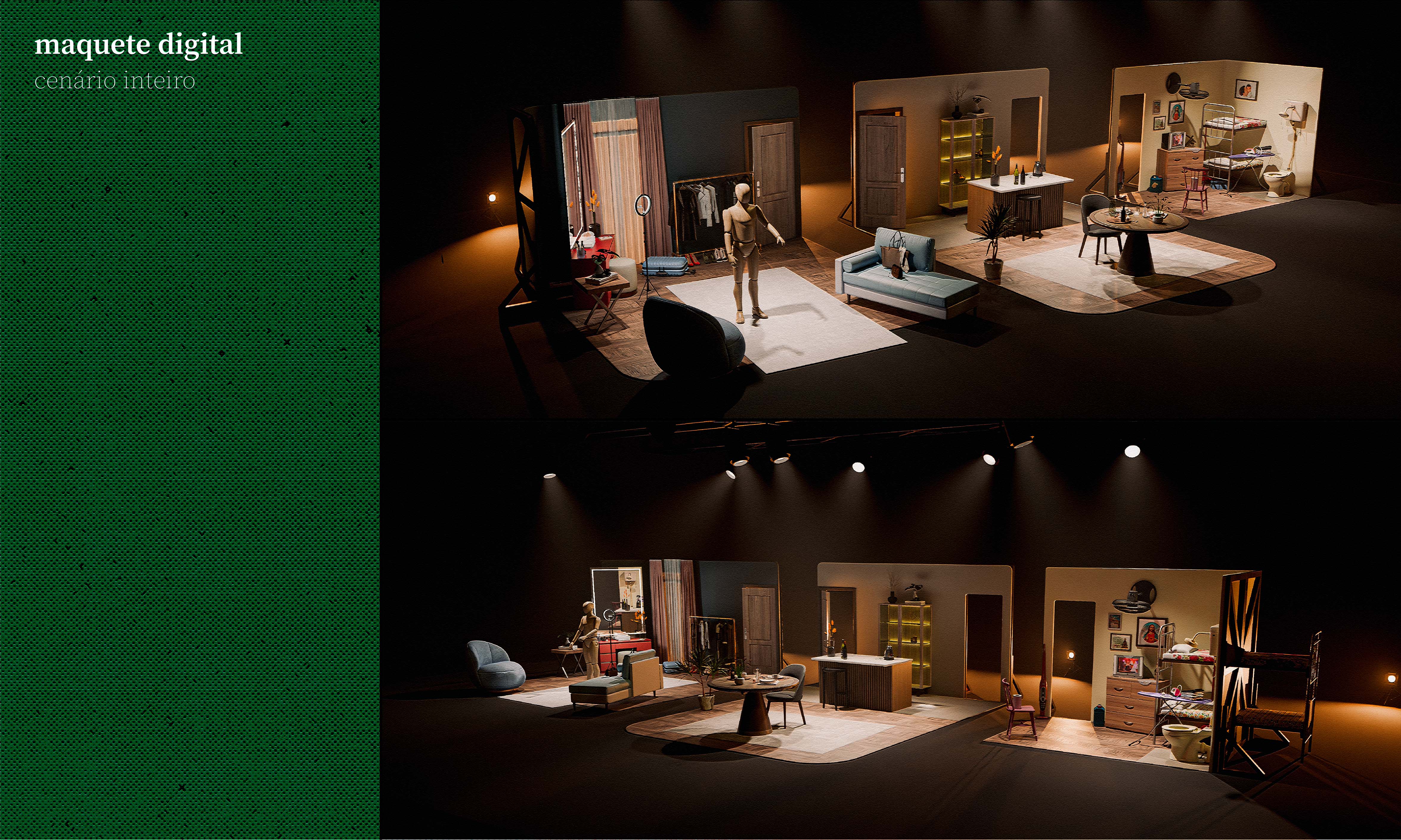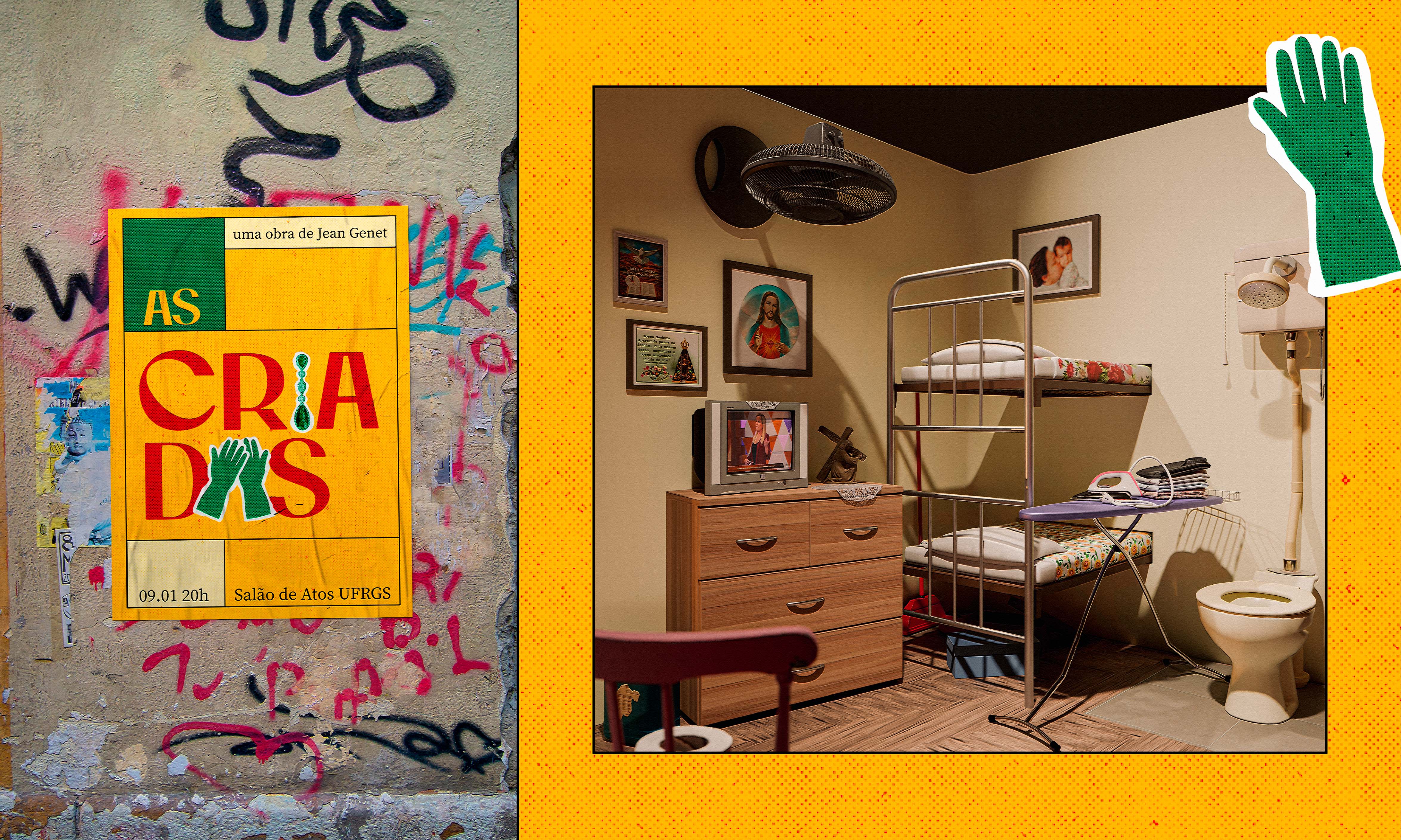 Votar neste projetoO projeto foi desenvolvido na disciplina de Design Cenográfico dos cursos de Design Visual e Design de Produto da UFRGS, com a proposição de criar a cenografia para a peça As Criadas, de Jean Genet. A obra original aborda as dinâmicas de poder entre patrões e empregadas domésticas, inspirada em um crime ocorrido na França em 1933, quando duas empregadas assassinaram sua patroa. A adaptação parte dessa base com o objetivo de retratar o tema a partir da realidade brasileira, que atravessa o tempo carregando heranças do período escravocrata. Nesse contexto, a cenografia busca provocar reflexão sobre estruturas ainda presentes na arquitetura nacional, como as chamadas dependências de empregada, que simbolizam a permanência de relações hierárquicas e desigualdades sociais.