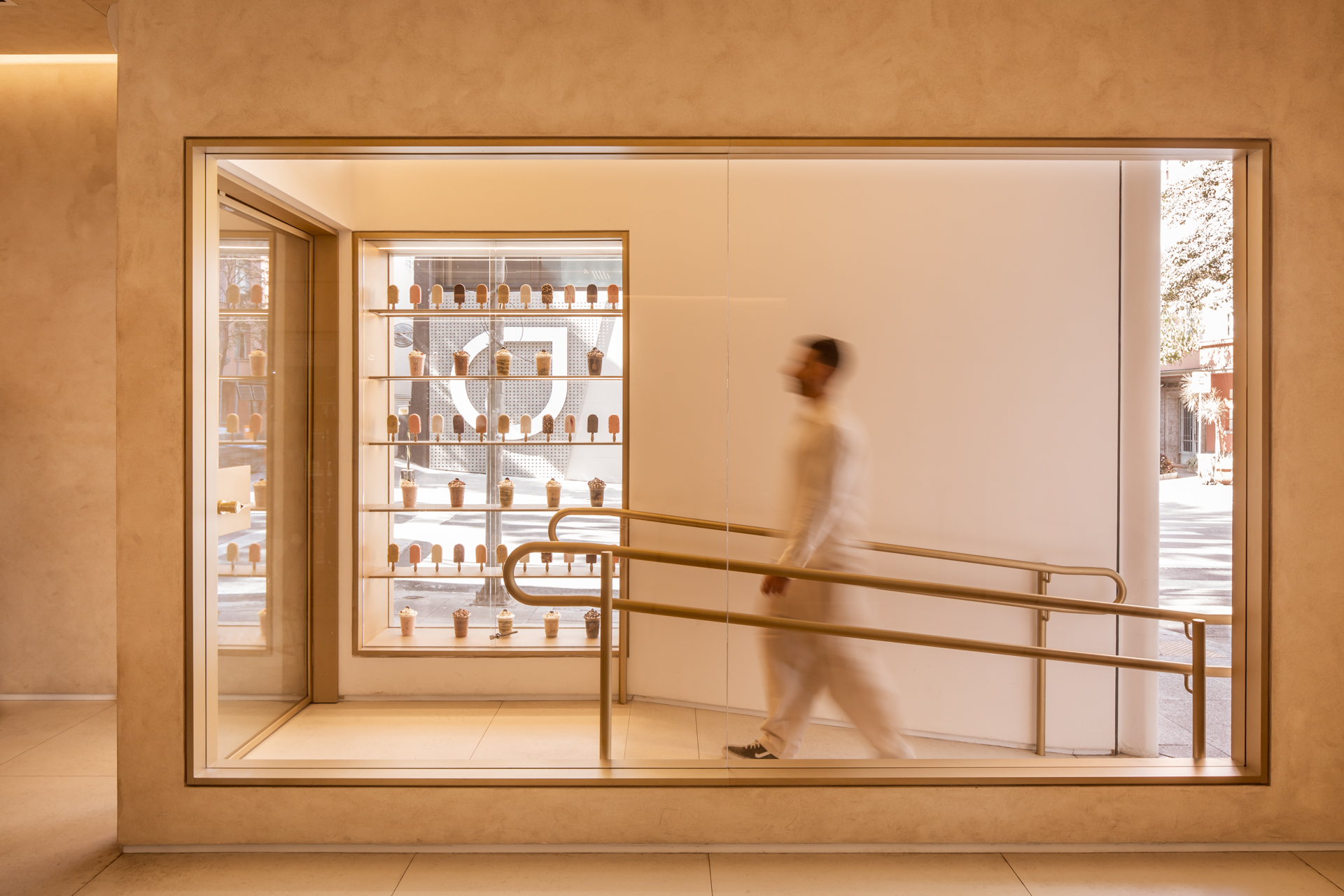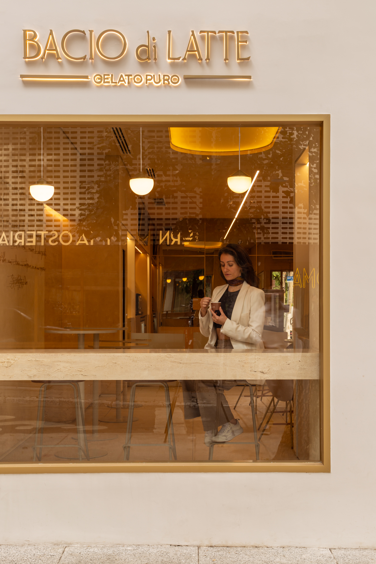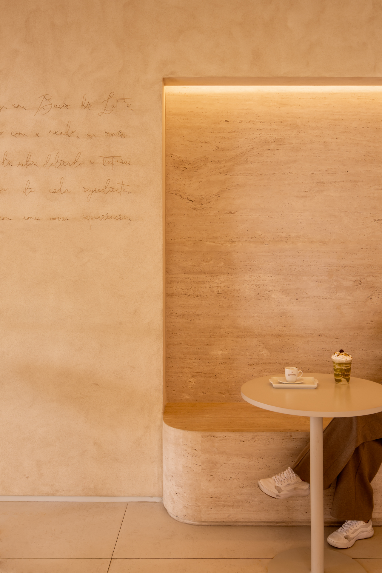 Votar neste projetoCom inspiração na cremosidade dos sorvetes, o novo conceito para a primeira loja de picolés insanos da Bacio di Latte traz a ambientação monocromática e a sofisticação atemporal como bases de projeto. A fachada é pura, branca como o leite, com o elemento vertical em metal dourado. Tão italiano como os gelatos, o Travertino é protagonista. A bancada acessível, arredondada e solta no ambiente, tem a vitrine de picolés como jóias irresistíveis. A proposta destaca a pureza dos materiais e a composição mínima dos elementos, que, com a suavidade necessária, dão suporte à explosão de cores e sabores dos picolés.