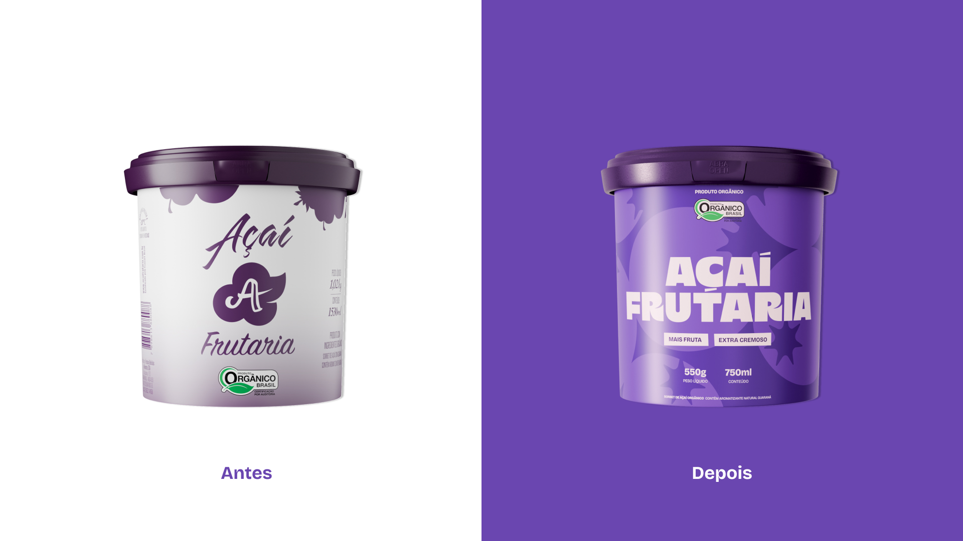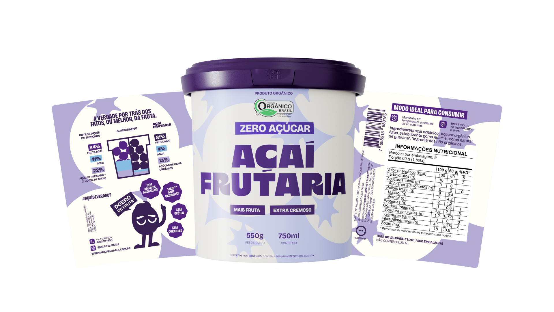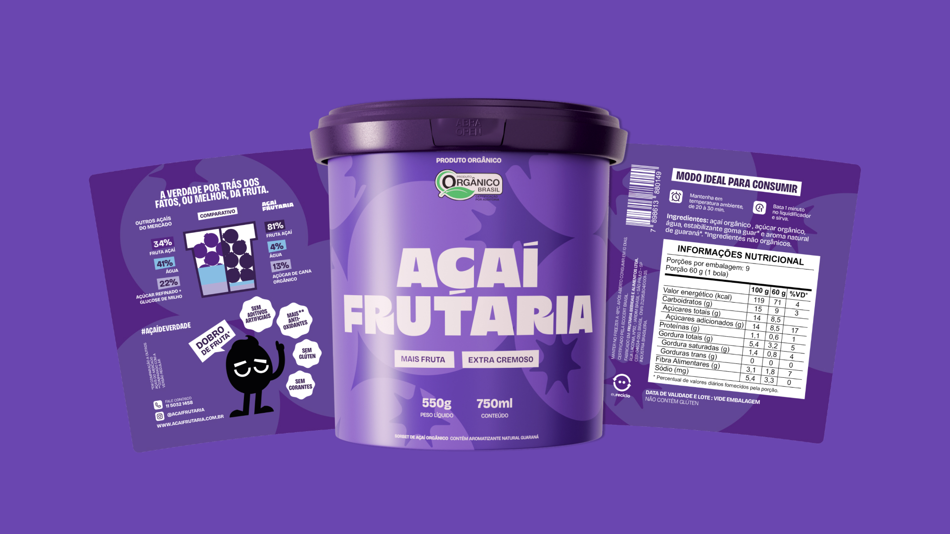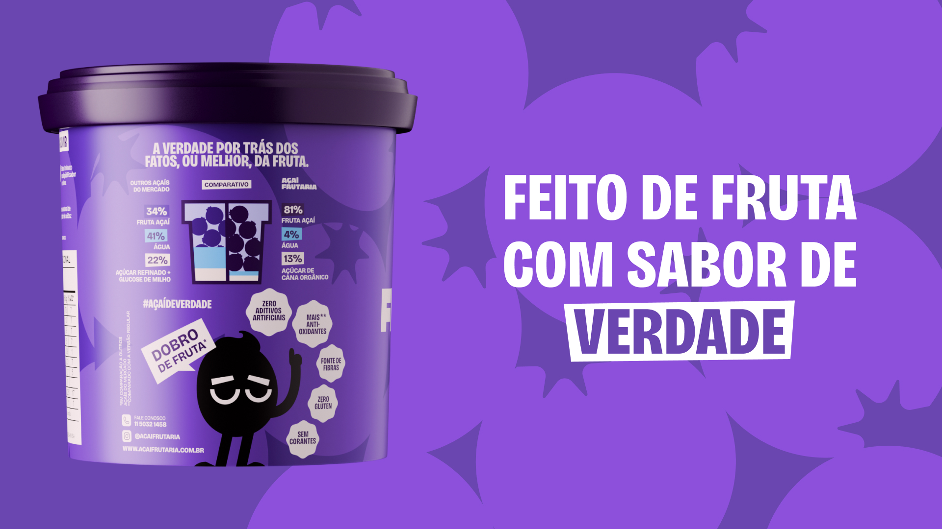 Votar neste projetoDesde 2007 o Açaí Frutaria existe para provar que açaí de verdade é feito de fruta. Com 80% de polpa na receita, contra uma média de 35% dos concorrentes: a marca sempre foi autêntica, mas ainda não tinha uma embalagem à altura dessa verdade. O desafio era transformar essa vantagem real em um redesign que reposicionasse a marca e criasse embalagens irresistíveis, capazes de conquistar tanto as gôndolas quanto o coração dos consumidores.