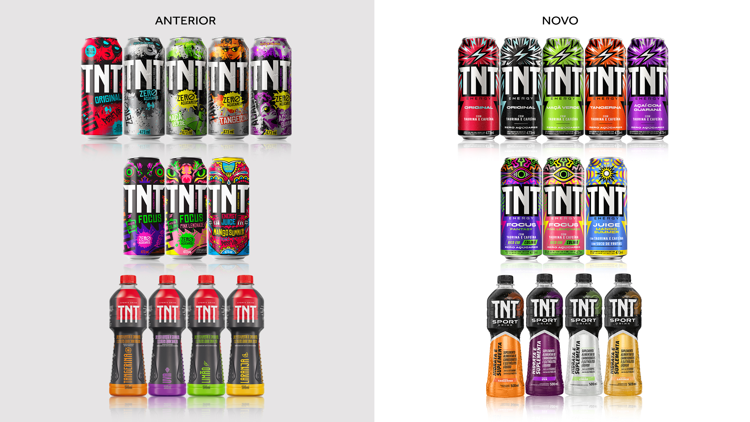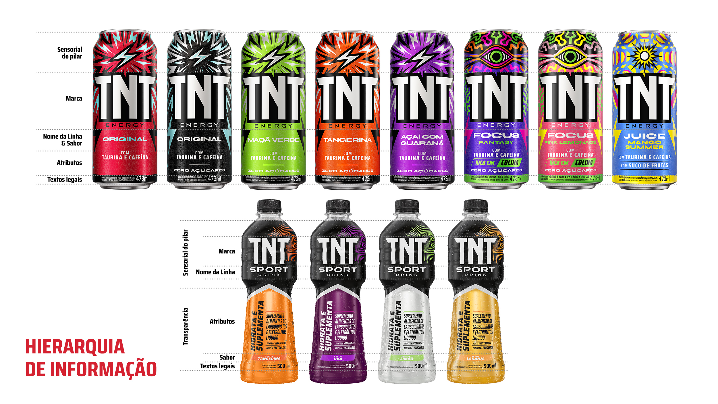 Votar neste projetoO redesign de TNT Energy Drink reposiciona a marca com uma identidade ousada e unificada para todo o portfólio, incluindo energéticos, sabores especiais e isotônicos. A nova arquitetura gráfica equilibra consistência e flexibilidade, valorizando o logotipo e destacando atributos essenciais. Inspirada na Geração Z, a linguagem visual traz energia e autenticidade com grafismos de expansão e ícones sensoriais. O resultado: forte impacto no PDV, comunicação clara e a consolidação de TNT como referência em potência e inovação.