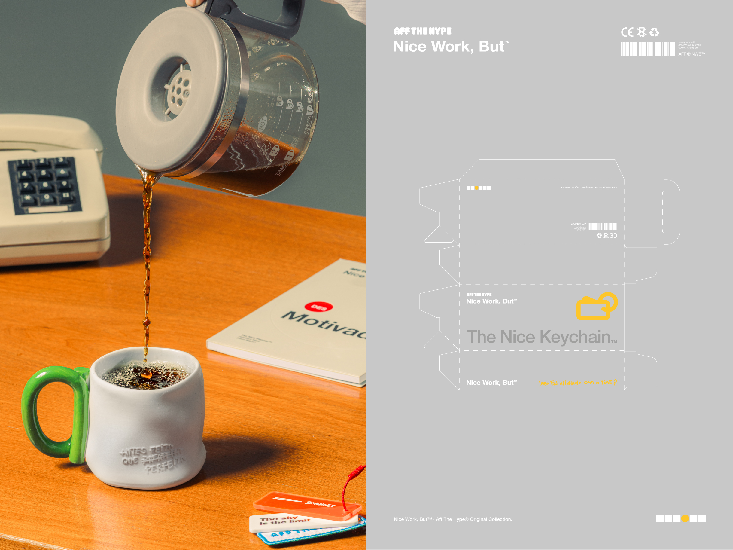 Votar neste projeto“Nice Work, But” nasceu para provocar. Criado em parceria com a Aff The Hype, marca com mais de 1,7 milhão de seguidores, com um tom de voz ácido e anticorporativo, o drop satiriza a cultura corporativa unindo humor e sofisticação gráfica. Nosso papel foi trazer frescor criativo em um momento em que os produtos começavam a se repetir. O resultado é uma coleção que à primeira vista parece minimalista e premium, com Helvetica, Pantones, relevos e papéis especiais, mas que revela ironia e crítica em rabiscos e anotações furiosas. Essa dualidade entre luxo e imperfeição transformou objetos de escritório em comentários visuais sobre a positividade tóxica do ambiente corporativo, projetando a Aff para um novo patamar de design e narrativa.