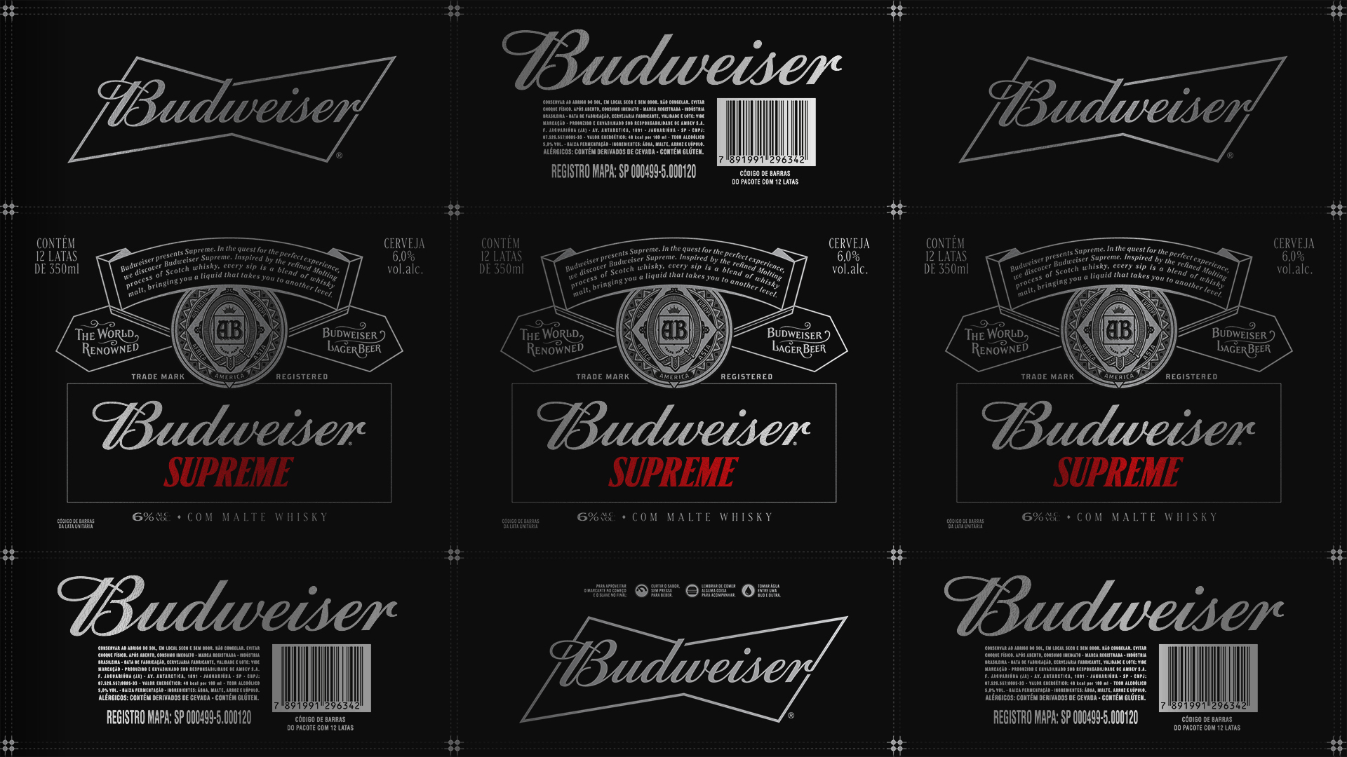 Votar neste projetoBudweiser Supreme traduz o espírito da noite com um design sofisticado e impactante, sem abrir mão da tradição da marca. No rótulo que desenvolvemos, o Crest and Creed assume protagonismo absoluto, reforçando autenticidade e legado. A embalagem aposta em uma estética minimalista: limpa, direta e elegante. A transparência da garrafa valoriza o líquido dourado e intensifica a percepção de qualidade, enquanto o detalhe técnico de acabamento adiciona uma camada extra de sofisticação. O resultado é um convite a subir de nível em todos os sentidos - na escolha da cerveja, na experiência e, principalmente, no design.