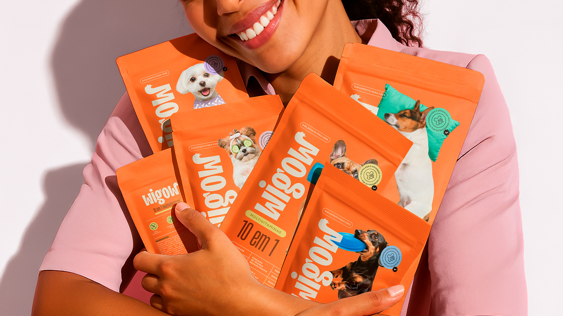 Votar neste projetoCom pelo e apelo emocional, Wigow chegou para marcar território como a nova geração de suplementos para pets. Criada para quem enxerga o pet como parte da família, a marca precisava comunicar afeto e performance, rompendo com o apelo farmacêutico da concorrência. Para isso. Wigow apostou em embalagens descontraídas e de alto impacto. A estratégia foi potencializar os elementos-chave da identidade e transformá-los em símbolos distintivos da marca. A cor vibrante não apenas garante destaque no ponto de venda, como também transmite energia e desempenho. O logotipo expandido e verticalizado enfatiza a dualidade da marca ao unir o bold da performance com detalhes afetivos. Já os cães em actings inesperados acrescentam humor e proximidade, despertando identificação imediata com os tutores.