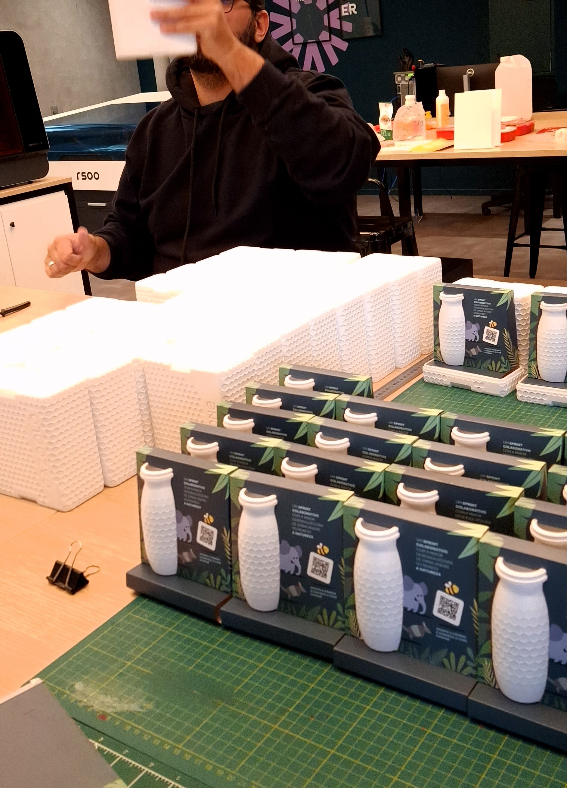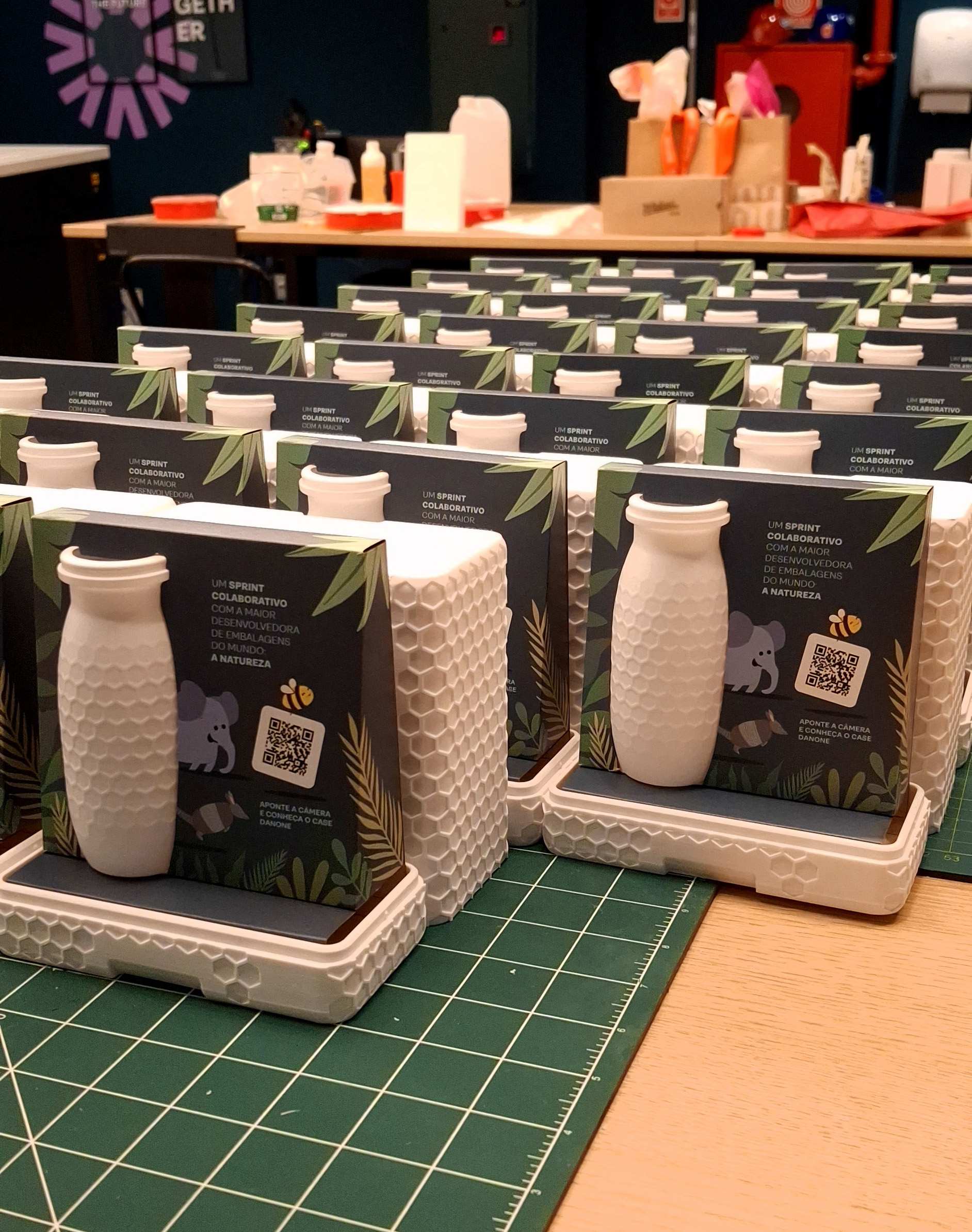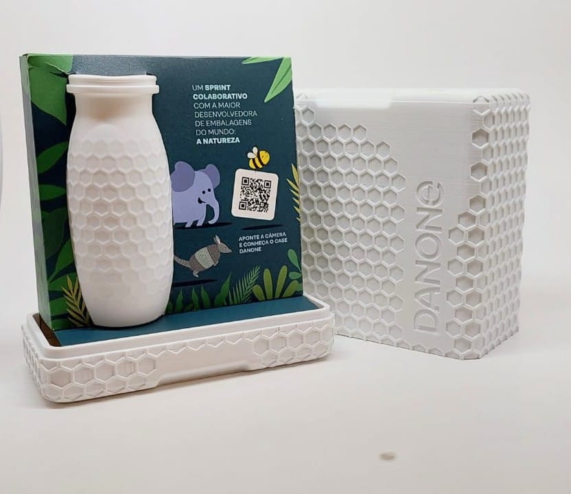 Votar neste projetoO projeto consiste em um press kit promocional desenvolvido para o lançamento das novas embalagens Danone 100g com padrão biomimético. O kit é composto por caixa, tampa e cinta elástica impressas em 3D, que abrigam um berço em papel cartão projetado para sustentar uma embalagem sem sleeve, destacando o design inspirado na natureza. No mesmo suporte, são apresentadas informações sobre o projeto e um QR code que direciona para o vídeo oficial do lançamento. Além da função promocional, a caixa ganha vida útil prolongada ao se transformar em uma lancheira reutilizável, capaz de armazenar um Danoninho e um lanche, reduzindo seu impacto ambiental.