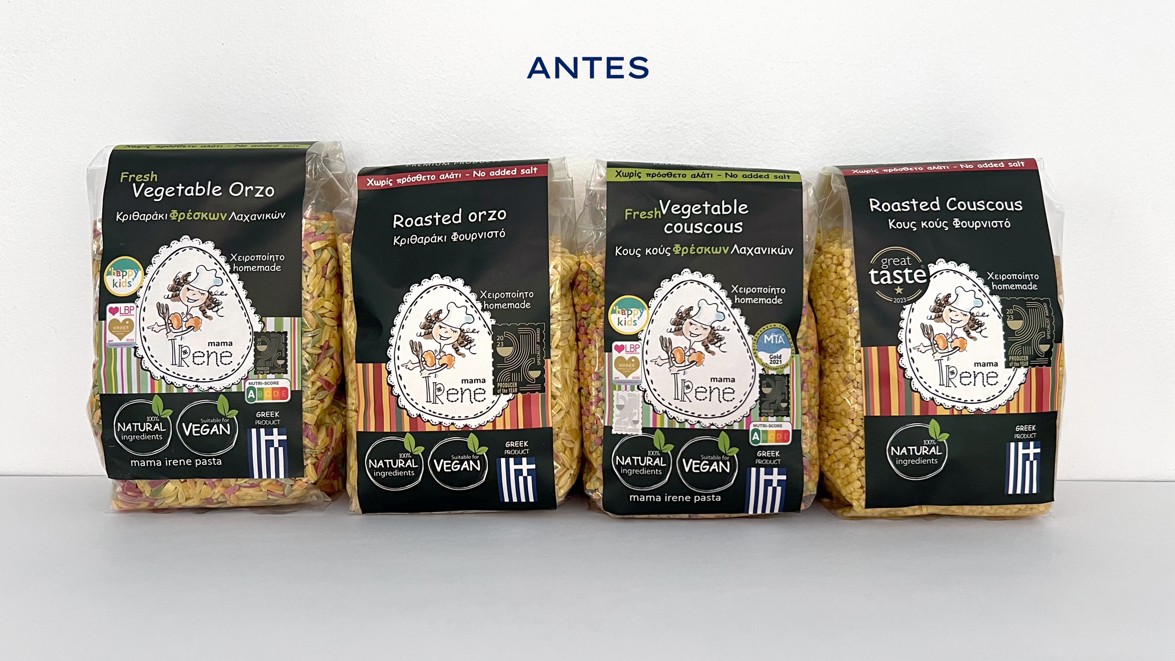 Votar neste projetoMama Irene é uma marca de massas artesanais da Grécia premiada internacionalmente, presente em restaurantes estrelados Michelin e em pontos de venda icônicos como a Galeria Lafayette, em Paris. Com o aumento das exportações e visibilidade, a família fundadora decidiu investir em uma nova identidade visual capaz de destacar a qualidade de seus produtos e reforçar sua presença global. Com o tempo, diversas informações, como a inclusão de prêmios conquistados, foram adicionadas aos rótulos sem um critério claro. Esse acúmulo de elementos comprometeu a hierarquia e a identificação dos produtos, resultando em uma embalagem e em uma comunicação que não refletiam a qualidade de uma marca reconhecida internacionalmente.