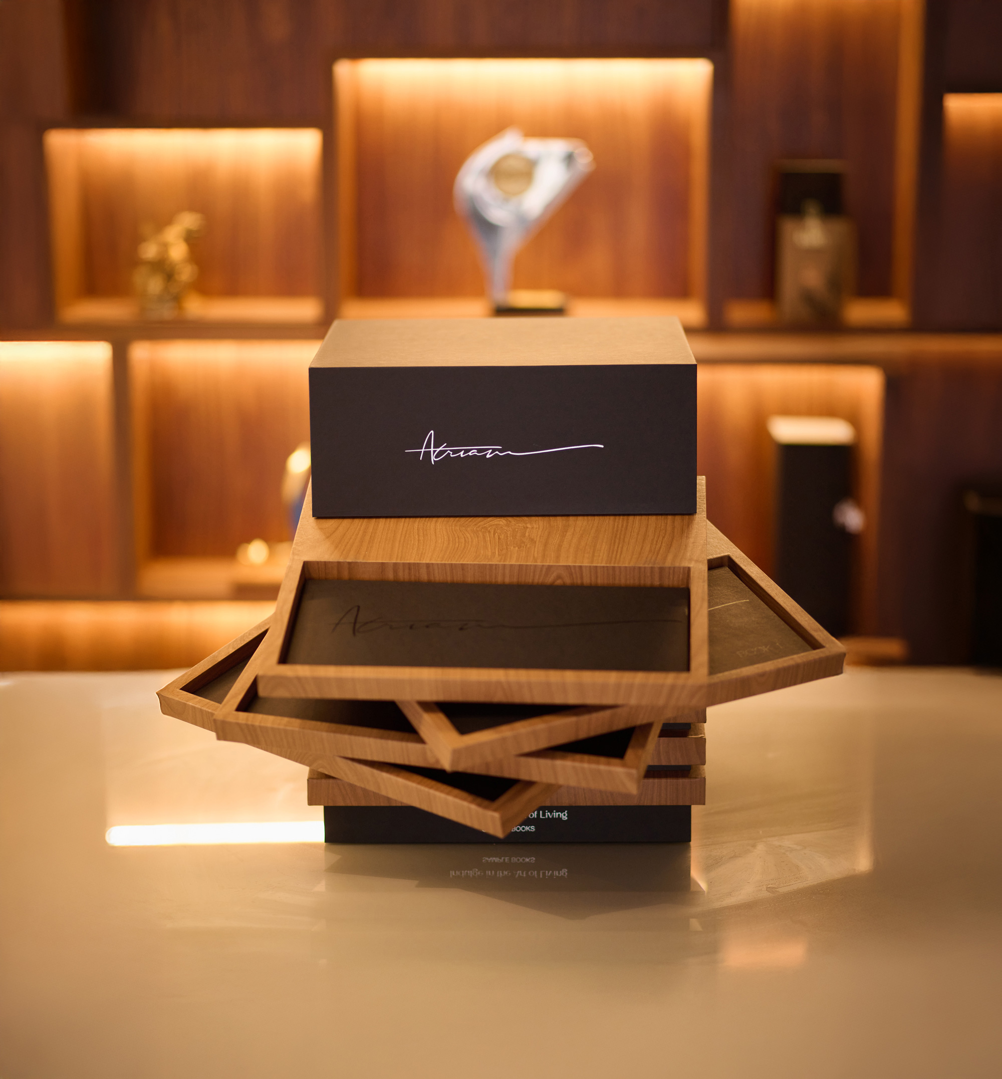 Votar neste projetoInspirada nas linhas contínuas marcantes de ripados do showroom da Atriani em Toronto, a Caixa de Amostras foi concebida para organizar e expor as amostras de matérias primas, com a presença de um objeto de design. São cinco gavetas que giram em 360°, ancoradas em um eixo inclinado. O mecanismo permanece discreto e integrado à peça, preservando a pureza dos planos. A abertura acontece com um gesto contínuo e preciso, revelando ao giro, em qualquer sentido, cada um dos books de amostras. No showroom e nos escritórios parceiros, atua como vitrine silenciosa e elegante objeto de decoração.