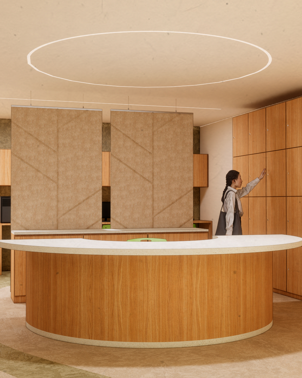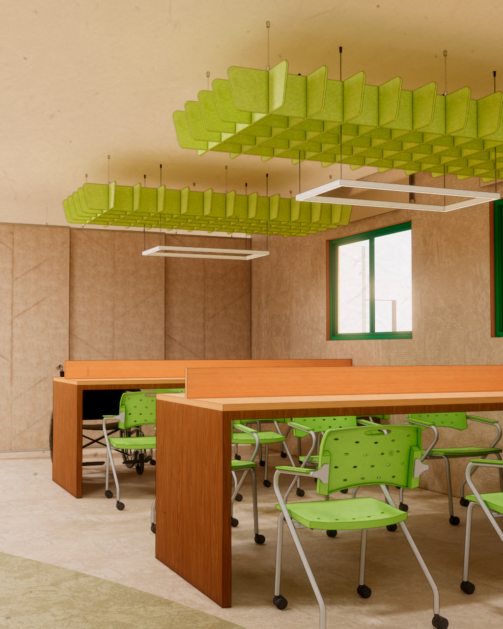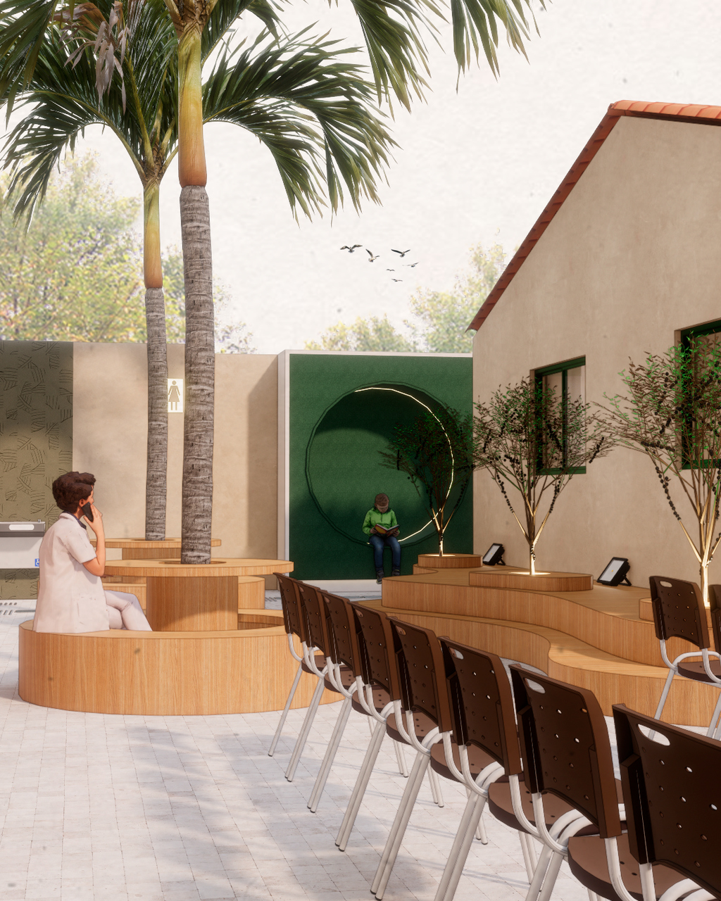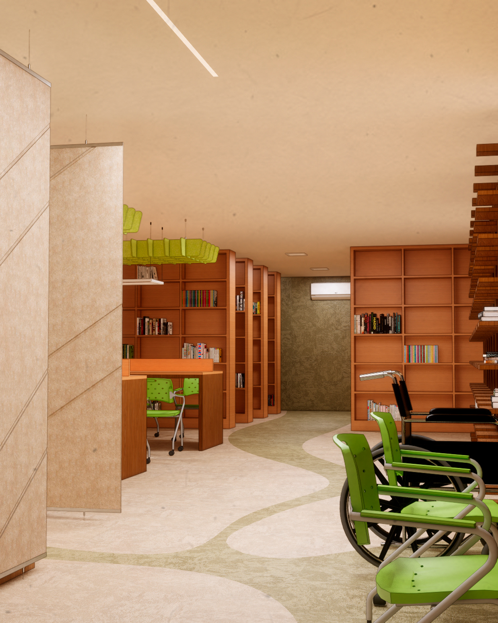 Votar neste projetoProjeto de design de interiores para a Biblioteca Pública Municipal Selma Birro de Oliveira, em Várzea da Palma (MG), com foco em pertencimento, acessibilidade e identidade local. A proposta transforma um espaço negligenciado em um ambiente inclusivo, afetivo e convidativo à leitura através de escuta ativa da comunidade, aplicação rigorosa das normas de acessibilidade e valorização da economia regional com uso de materiais locais, como ferro e madeira, além de paisagismo com espécies nativas, como goiabeiras e palmeiras, arvores símbolo da cidade.