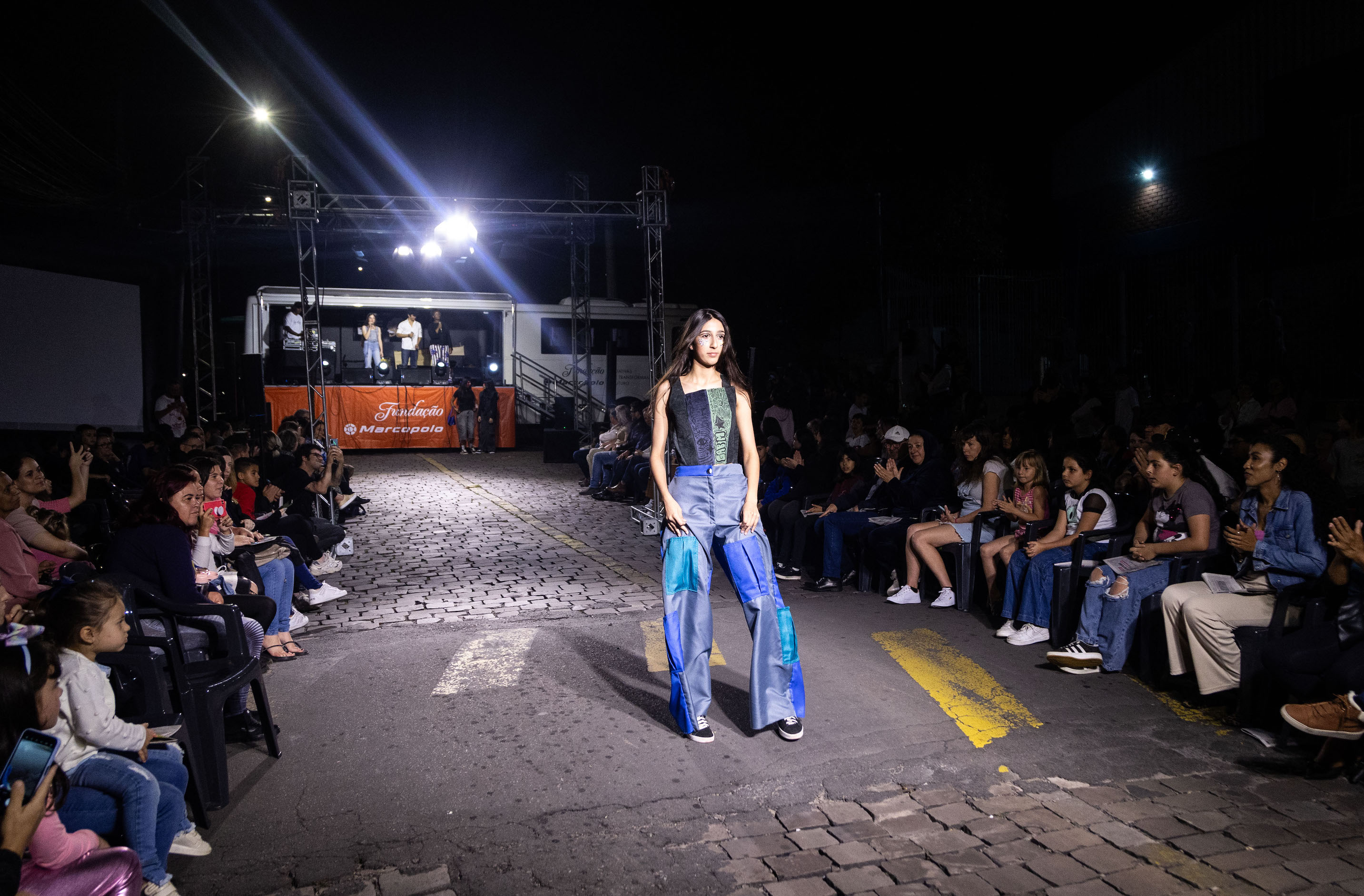 Votar neste projetoO Projeto Amplificador teve duas edições, em 2022 e 2024, com foco em jovens de 8 a 17 anos em territórios periféricos. Ele utiliza oficinas de moda, música, dança, audiovisual e artes como ferramentas de transformação social. Em 2024, o destaque foi a moda, que trabalhou resíduos têxteis da indústria automotiva em processos de upcycling, design sustentável e ciclo de vida dos materiais. As criações foram apresentadas em um desfile-show realizado em um bairro de alta vulnerabilidade, transformando a rua em palco cultural e envolvendo a comunidade local como público e também como participantes do casting.