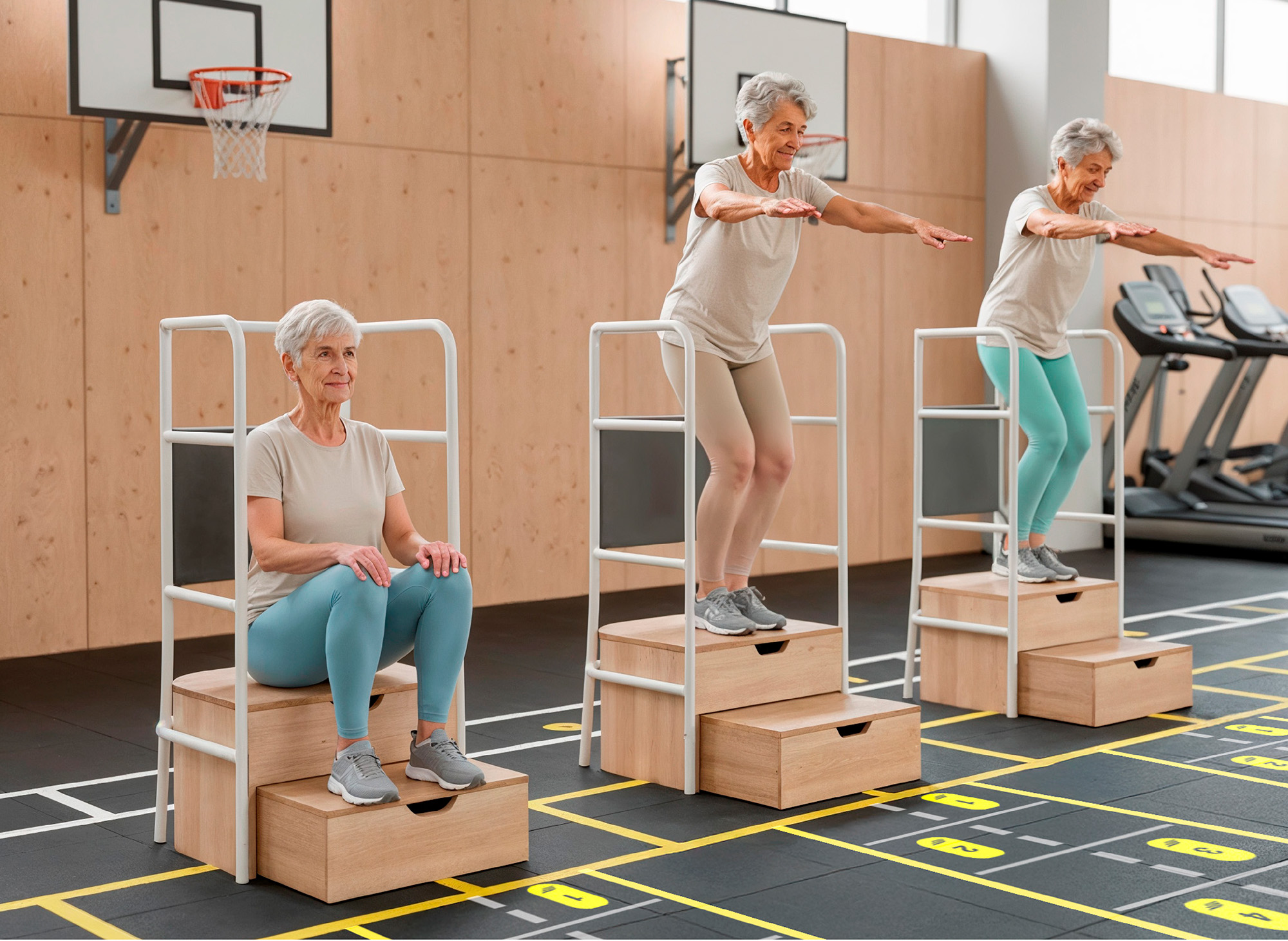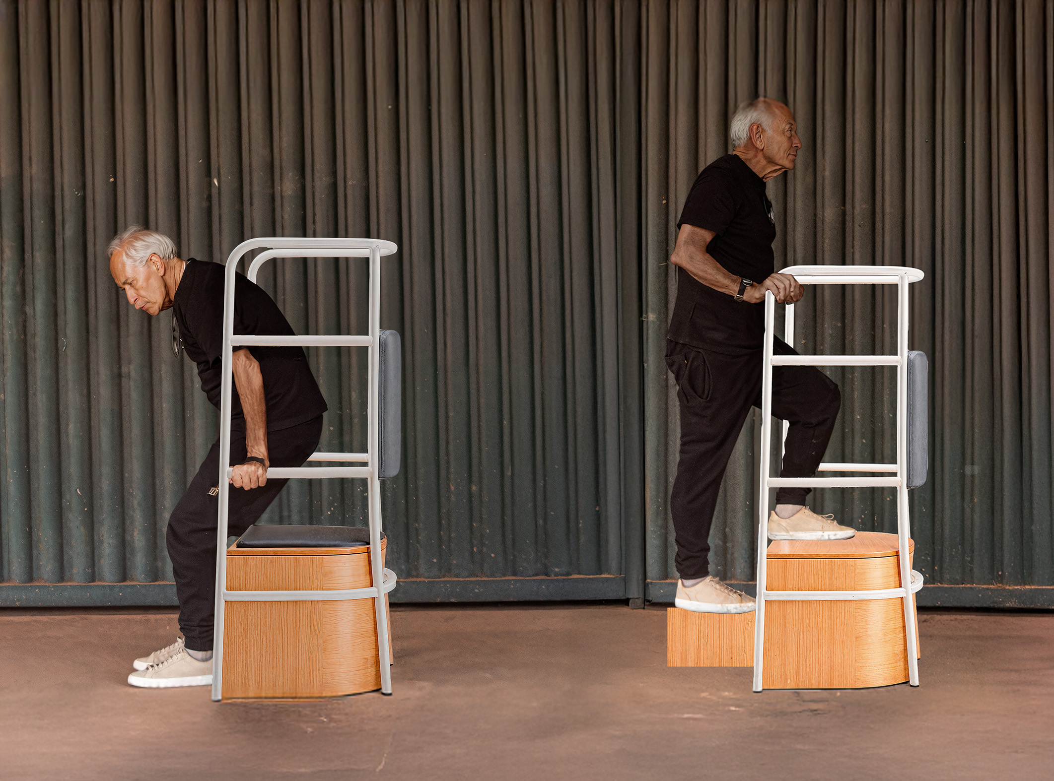 Votar neste projetoO Freestep é um equipamento de exercícios desenvolvido para o público sênior, que estimula força, equilíbrio, coordenação, flexibilidade e resistência cardiorrespiratória. Criado com base científica, promove autonomia em tarefas cotidianas como sentar, levantar e subir degraus, prevenindo quedas e hospitalizações. Leve, modular e desmontável, possui estrutura em aço carbono reciclável, banco e degrau de madeira de reflorestamento, além de couro e espuma ecológicos. Seu design inclusivo, de formas curvas e apoio perimetral, garante segurança, usabilidade e estética amigável. Com baixo custo, fácil transporte e manutenção, democratiza o acesso à atividade física, fortalece a inclusão social, representando uma solução inovadora para o envelhecimento ativo e saudável.