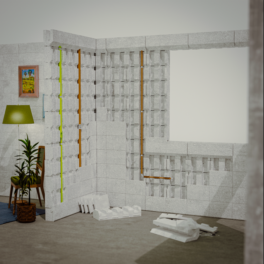 Votar neste projeto1 em cada 5 brasileiros já construiu ou reformou a própria casa, e a autoconstrução representa 82,4% desses casos (CAU, 2022). Essa realidade, marcada por improvisos, pode resultar em moradias precárias e inseguras. O projeto apresenta um bloco construtivo de baixo custo e montagem intuitiva e ergonômica, que combina encaixes robustos a um material leve e sustentável. Seu design facilita a execução da obra mesmo para quem não tem experiência técnica e traz soluções práticas para passagem de fios, tubulações e acabamentos. Mais que um componente construtivo, é uma ferramenta para ressignificar o ato de construir com as próprias mãos, como um gesto de pertencimento capaz de gerar lares dignos e vivos, que crescem junto com quem os habita.