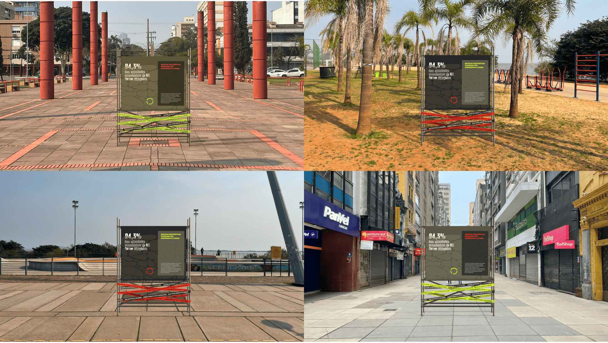 Votar neste projeto“Inundados pelo Descaso” é uma intervenção urbana que transforma espaços públicos e mobiliário em ferramentas de mobilização social. Estruturas modulares em aço inox, lonas impressas e caixas de vidro com água turva criam impacto visual e sensorial imediato. O projeto integra design de produto, gráfico e digital, com aplicativo que conecta cidadãos a informações e ações de ajuda. Seu diferencial está na convergência entre intervenção física e tecnologia, reaproveitamento de materiais e modularidade, permitindo replicação, durabilidade e engajamento contínuo.