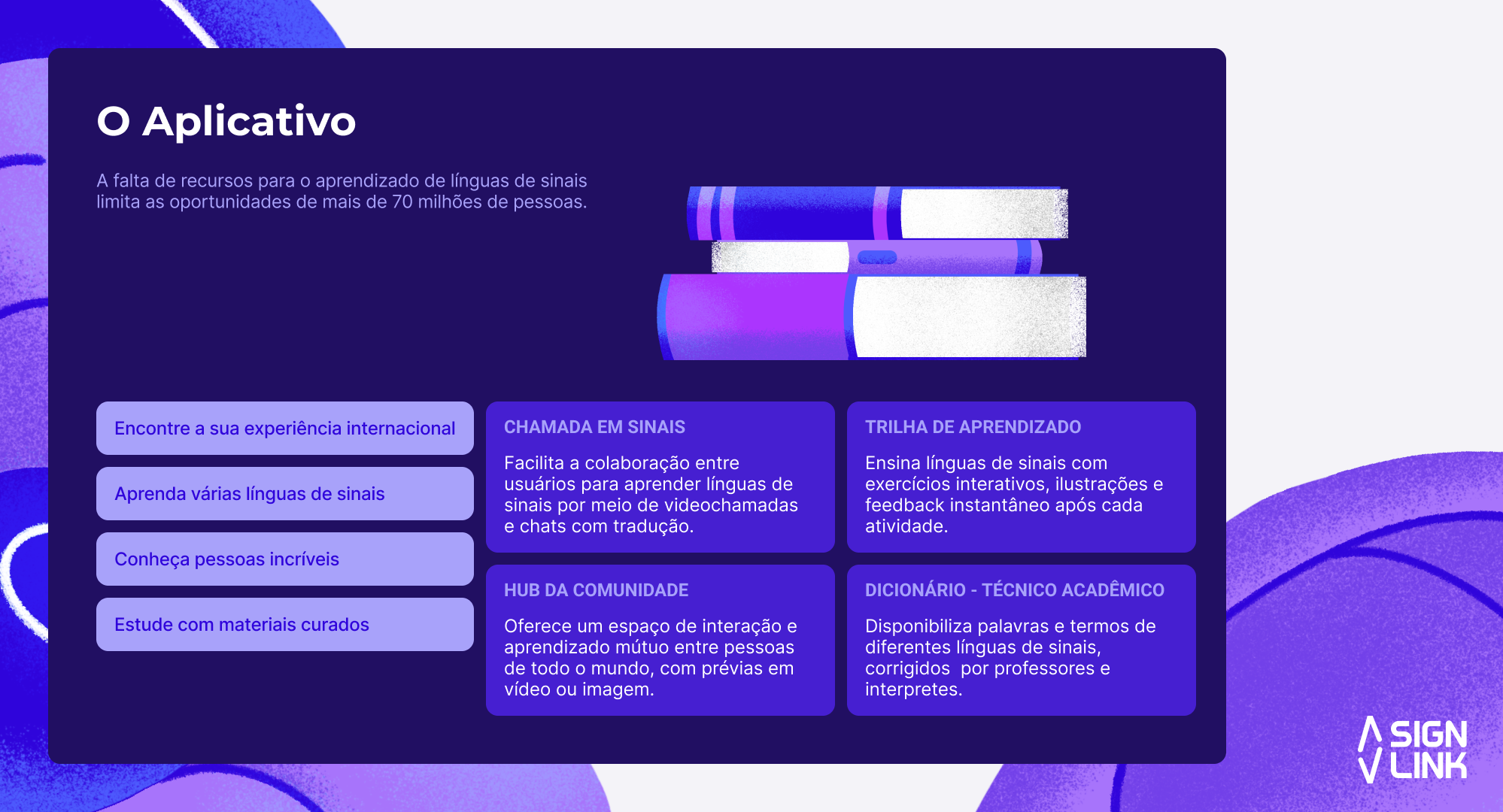 Votar neste projetoA Sign Link é uma plataforma digital que ensina línguas de sinais de forma acessível, colaborativa e escalável. Em pré-lançamento, já conta com mais de 250 usuários e parcerias em execução com universidades, empresas e governos que acreditam no impacto positivo da solução. Suas principais inovações incluem trilhas de aprendizado gamificadas, dicionário interativo e colaborativo em múltiplas línguas, prática com falantes nativos e correção personalizada por inteligência artificial treinada em OpenCV e redes neurais com materiais validados por acadêmicos e pela comunidade surda. Diferente de outros projetos, apoia também familiares, amigos e colegas que desejam se aproximar da comunidade surda de forma respeitosa, sem impor a adaptação ao mundo ouvinte. Até 2027, pretende impactar mais de 20