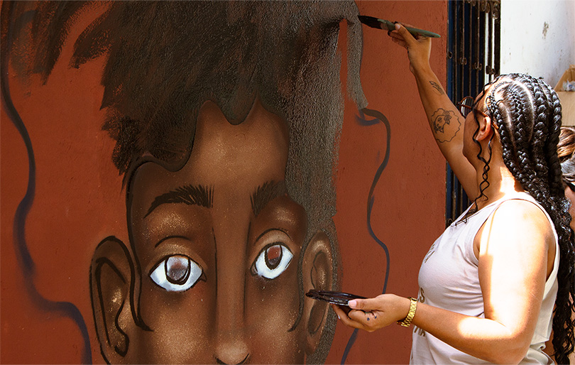 Votar neste projetoTrata-se de uma pesquisa que teve como objetivo prático descentralizar a ação do design através de ateliês realizados em territórios periféricos. O projeto experimenta as artes gráficas urbanas como dispositivo estratégico de inovação social, ao facilitar conteúdos em metodologias colaborativas de ação cultural, investigando o cotidiano periférico como ponto de partida para compreender as necessidades do nosso território, materializando, ao final do processo, uma intervenção urbana na escadaria da rua Iemanjá, utilizando uma narrativa estética que se desvincula das cronologias hegemônicas e abre caminho para o imaginário coletivo sobre modos de viver mais justos, inclusivos e decoloniais.