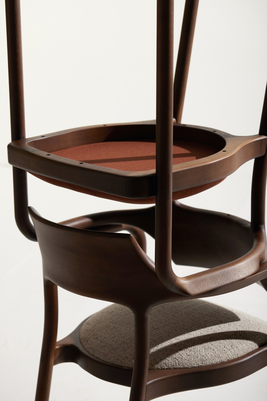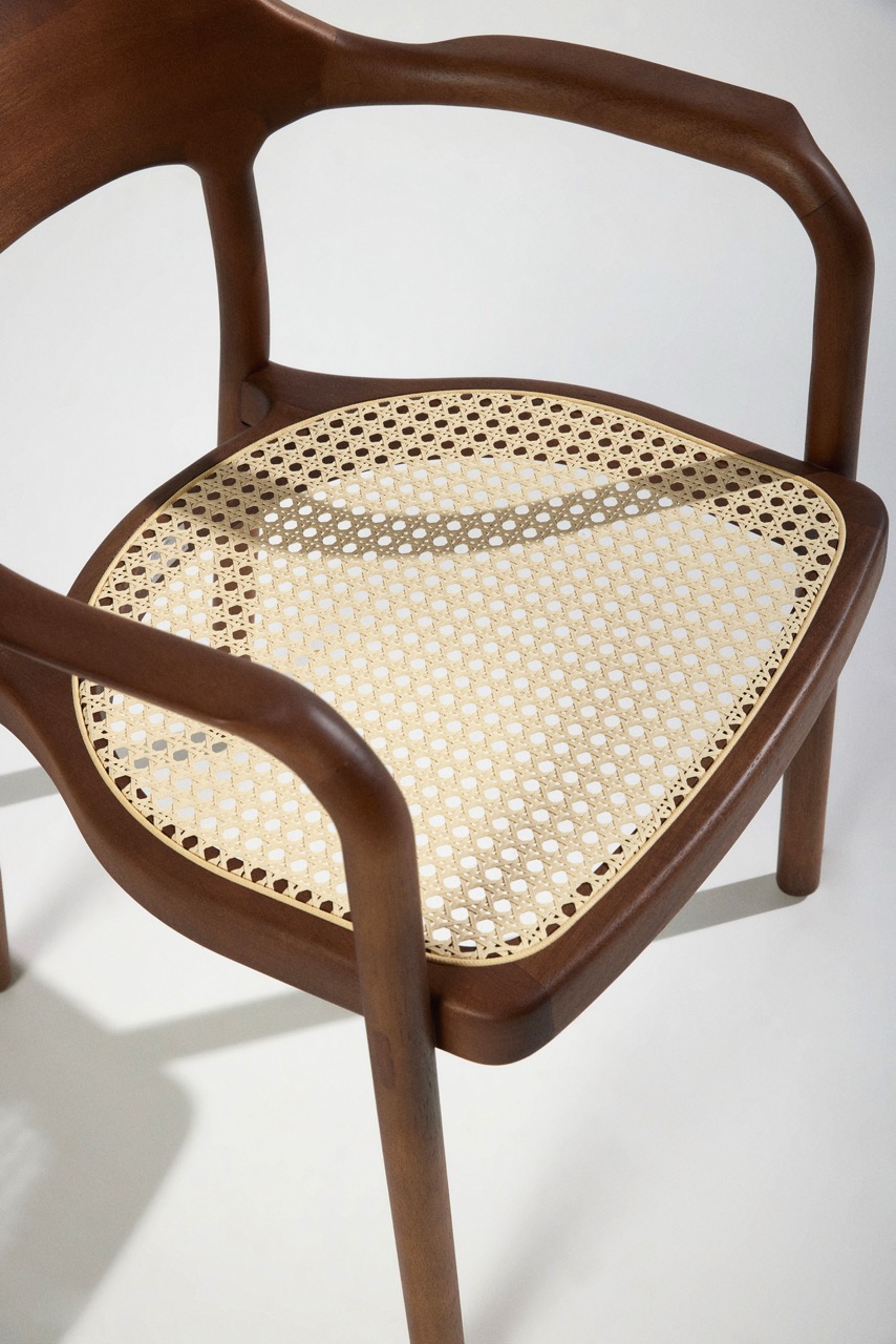 Votar neste projetoInspirada na arte milenar japonesa de cultivar árvores em miniatura, a cadeira carrega em sua essência a ideia de equilíbrio, simplicidade e contemplação. Seu design é marcado por linhas suaves e orgânicas que evocam a fluidez da natureza, criando uma peça ao mesmo tempo leve e imponente. Cada detalhe foi cuidadosamente pensado para transmitir serenidade e sofisticação: os braços fixos oferecem acolhimento, a estrutura em madeira maciça garante solidez e o assento — disponível em tela ou estofado — proporciona versatilidade, atendendo diferentes necessidades de uso e ambientação. Mais do que um móvel, a Bonsai é uma tradução da filosofia do “menos é mais”.