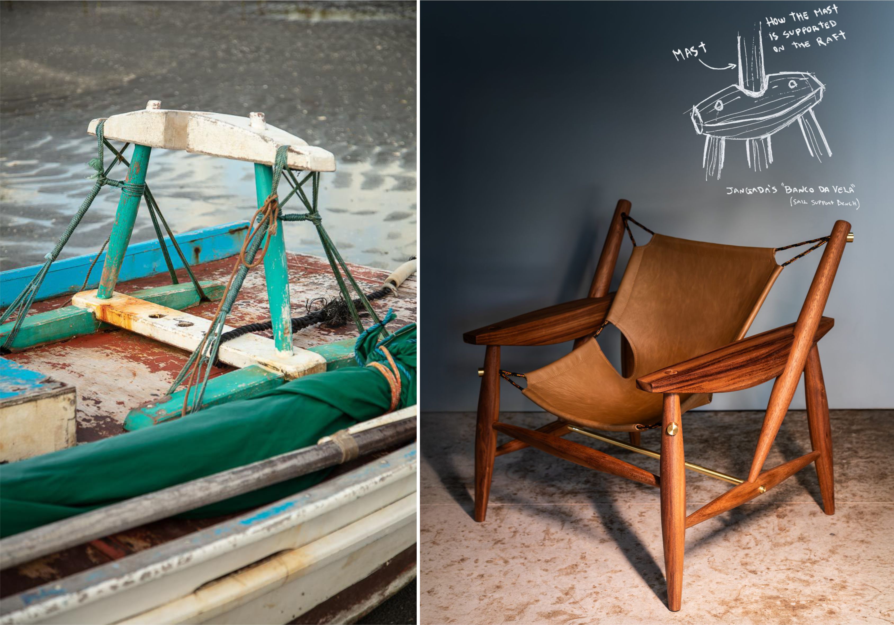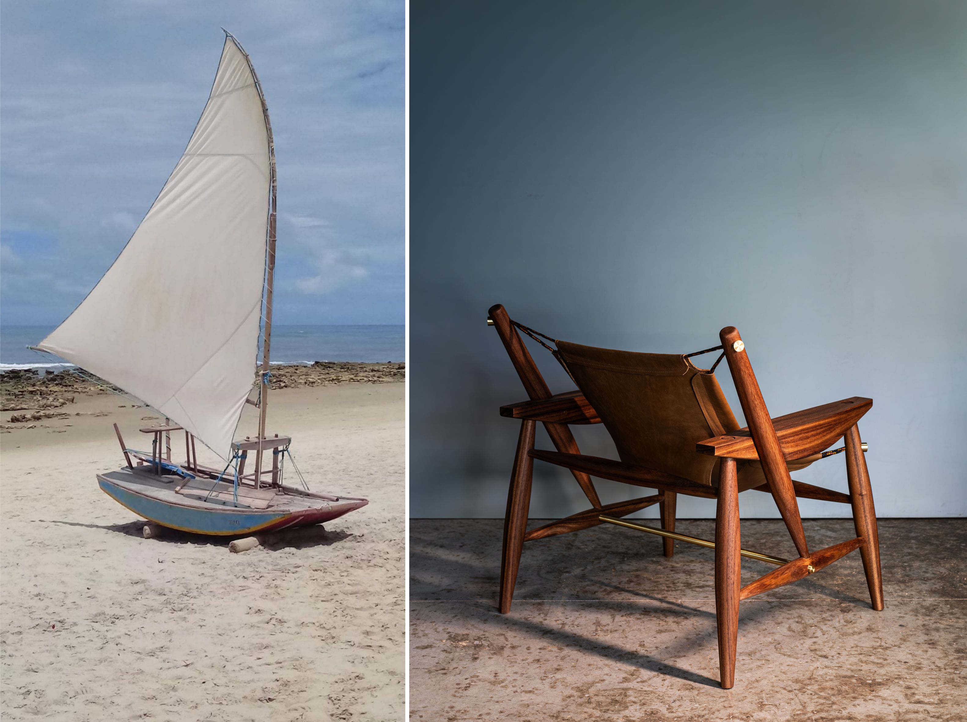 Votar neste projetoA poltrona Fateixa é um mobiliário em madeira desenvolvido para produção industrial com a intenção de explorar a identidade brasileira no design. A forma da poltrona foi inspirada na Jangada, embarcação vernacular e um dos símbolos do litoral Cearense. Na estrutura de madeira, a forma das peças e a maneira como sem encaixam foram inspiradas nos componentes da jangada, assim como o assento foi inspirado na vela desse barco. O assento é uma membrana de couro ou lona que serve como “rede” que acolhe a pessoa ao sentar. Semelhante à vela do barco, essa membrana é sustentada por uma corda que é fixada à estrutura de madeira em quatro pontos presos por buchas de latão. A ideia é que o design da peça evidencie o papel estrutural de cada material e a referência cultural que a inspirou.
