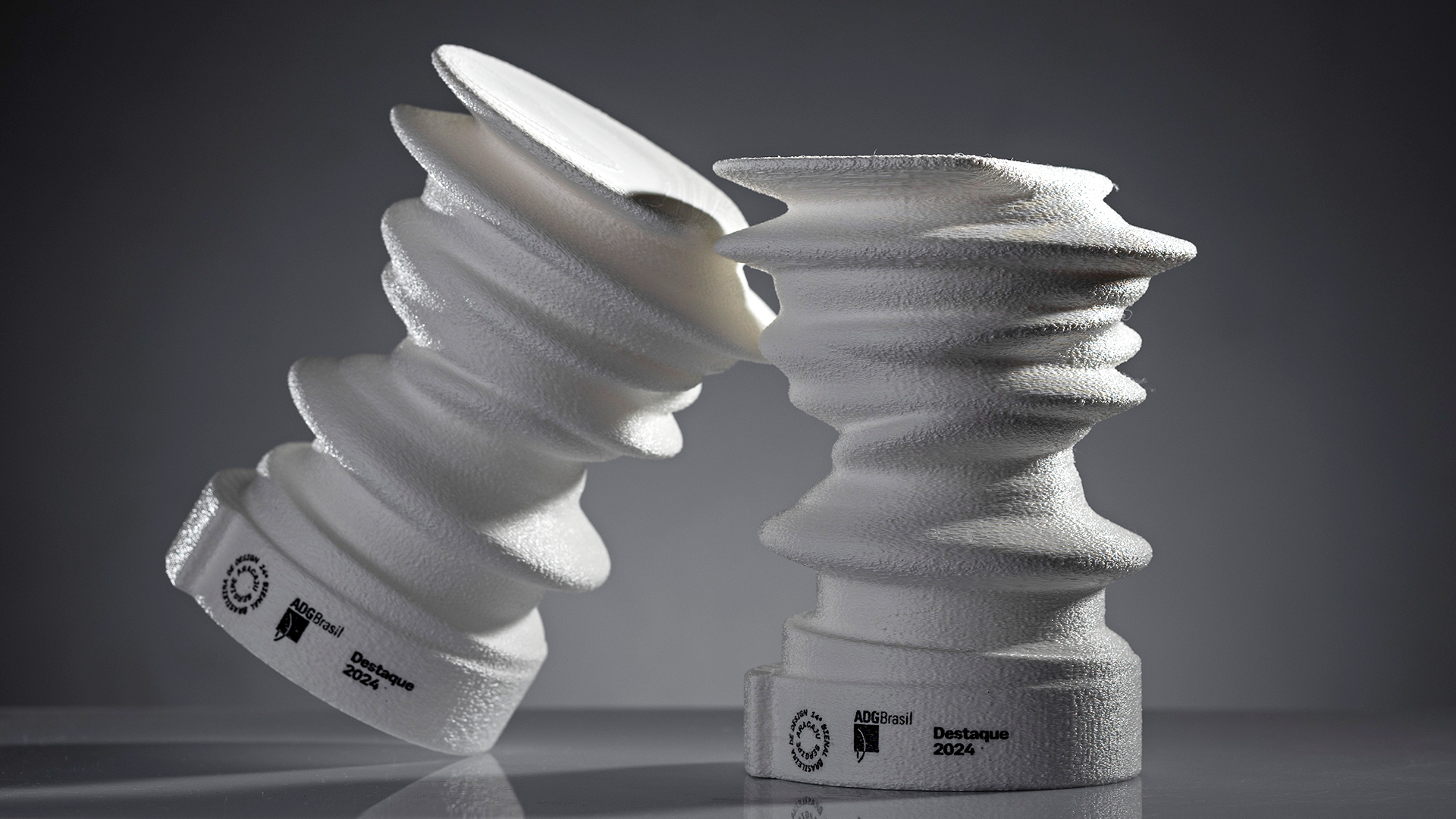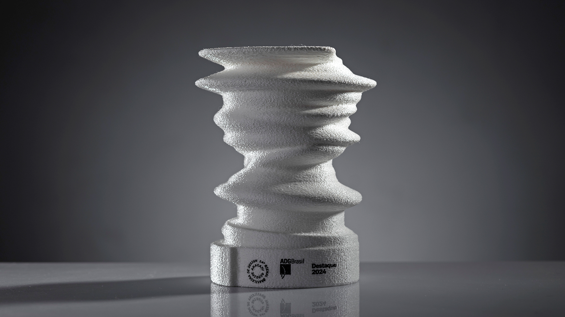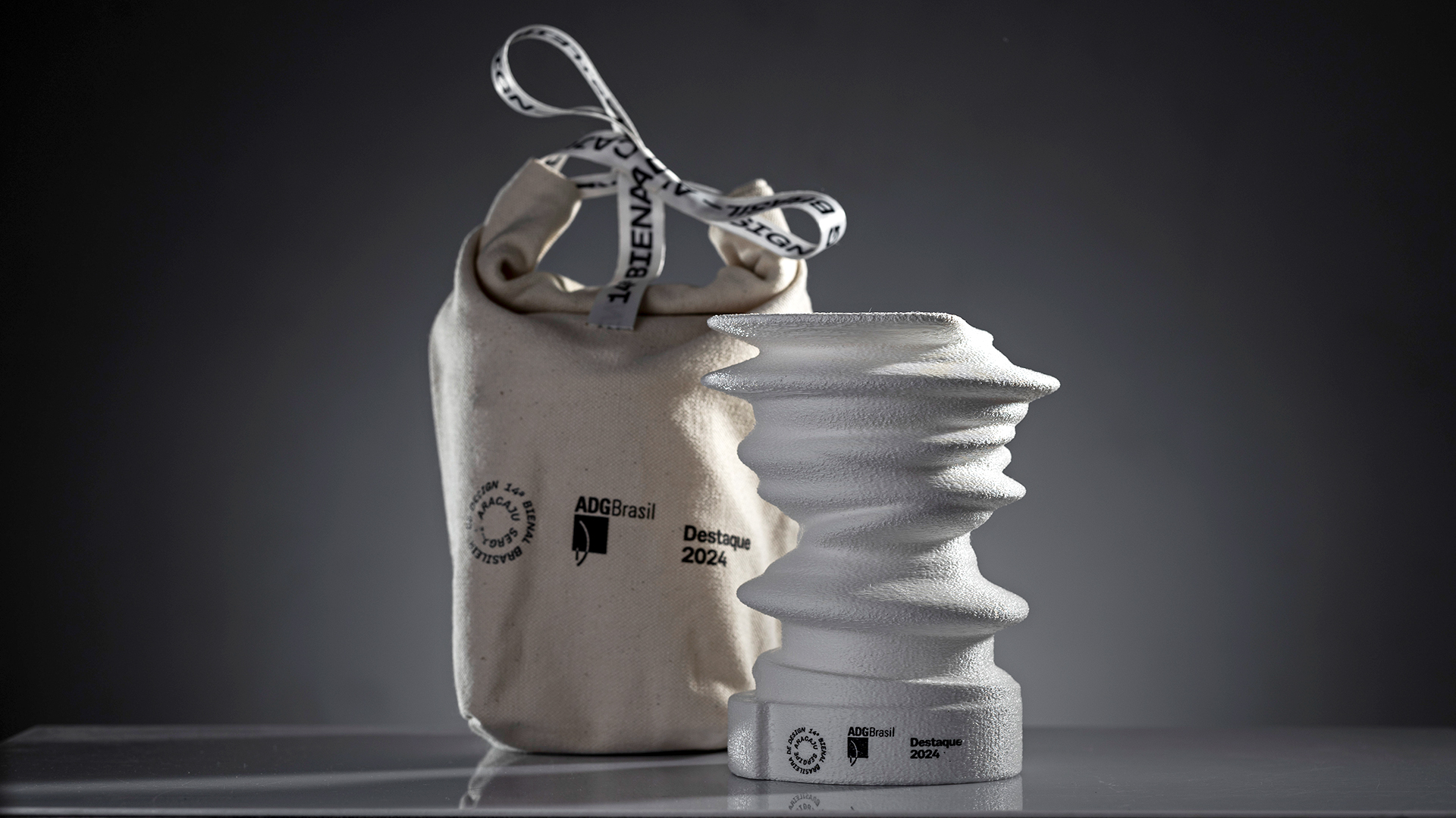 Votar neste projetoA Bienal Brasileira de Design, um dos mais importantes eventos que celebram o design brasileiro, tem sua primeira edição no Nordeste. A identidade visual da Bienal partiu do grupo “Parafusos”, patrimônio histórico, cultural e imaterial do estado de Sergipe, para traduzir o tema “Giros: movimentos que dão voz às nossas histórias, culturas e identidades”. Um rodopiar contínuo, que reforça a cultura popular. Deste movimento da dança folclórica nasce o troféu concedido aos destaques da mostra. Esculpidas na modelagem do Parafuso em filamentos de impressão em 3D, as curvas do troféu evocam o rodopio e as texturas dos tecidos em movimento. Tradição e futuro combinados em um dos objetos que mais atraem os profissionais do design no Brasil.