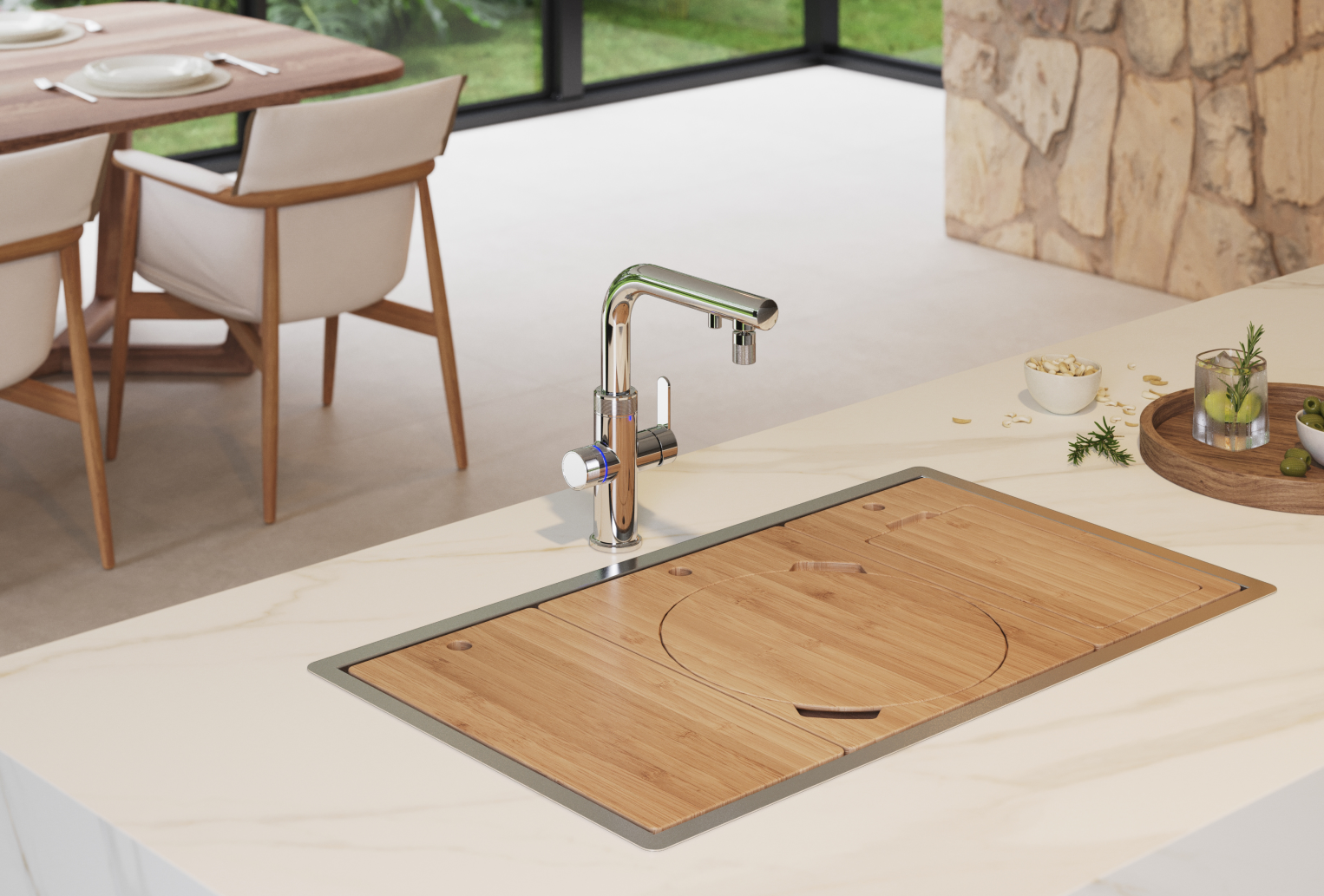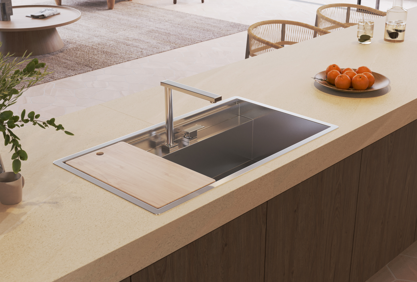 Votar neste projetoA Deca, maior fabricante de louças e metais sanitários do hemisfério sul e referência em design e inovação, apresenta a Cuba Funstation - um produto multifuncional pensado para a vida contemporânea, onde a cozinha ganha protagonismo em espaços cada vez mais integrados. A cuba se transforma em uma estação de convivência, adaptando-se ao preparo diário e a momentos de lazer. Com acessórios modulares e exclusivos — como tábuas, escorredores e containers —, permite uma transição fluida entre funções, otimizando a bancada com praticidade e elegância, com a possibilidade de ocultar-se completamente quando necessário. A cuba Funstation se destaca por oferecer uma solução inovadora, que acompanha as transformações dos modos de habitar e traduz o novo papel da cozinha como centro da casa.