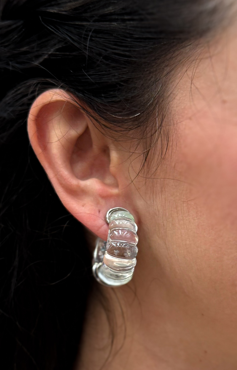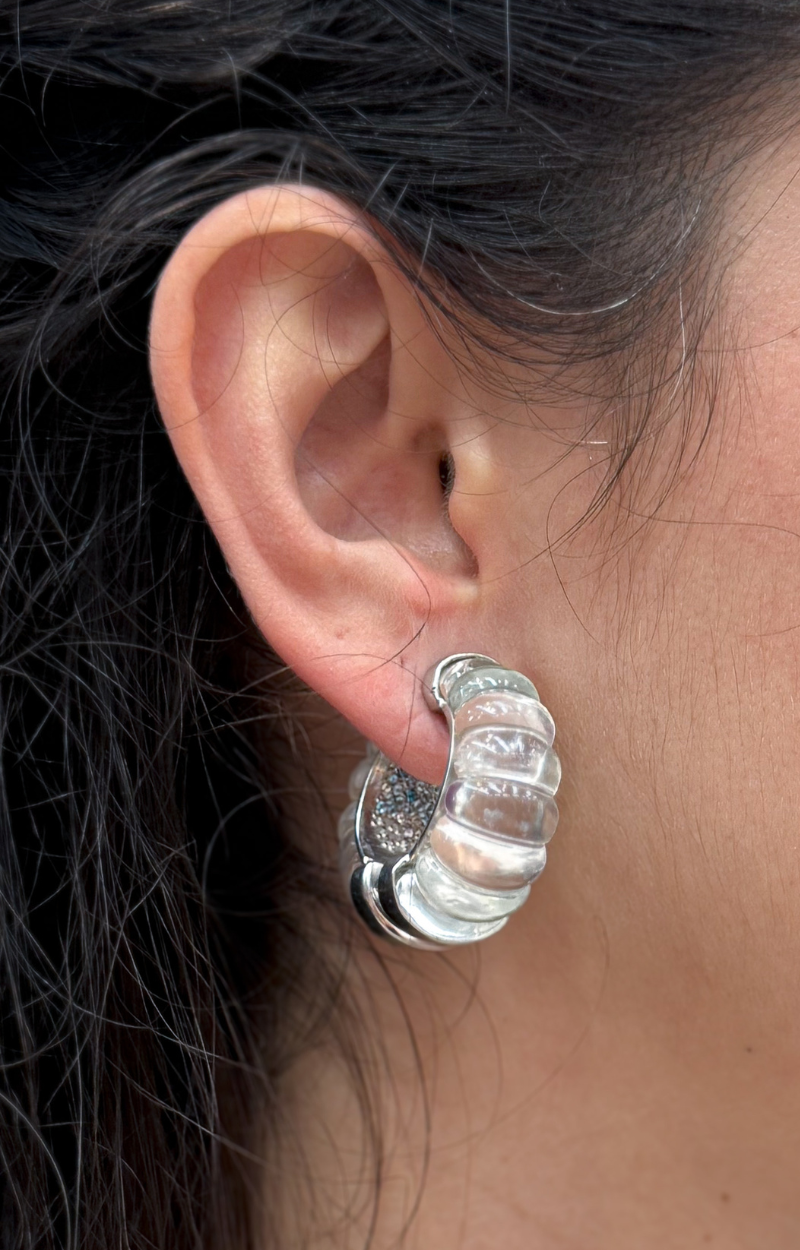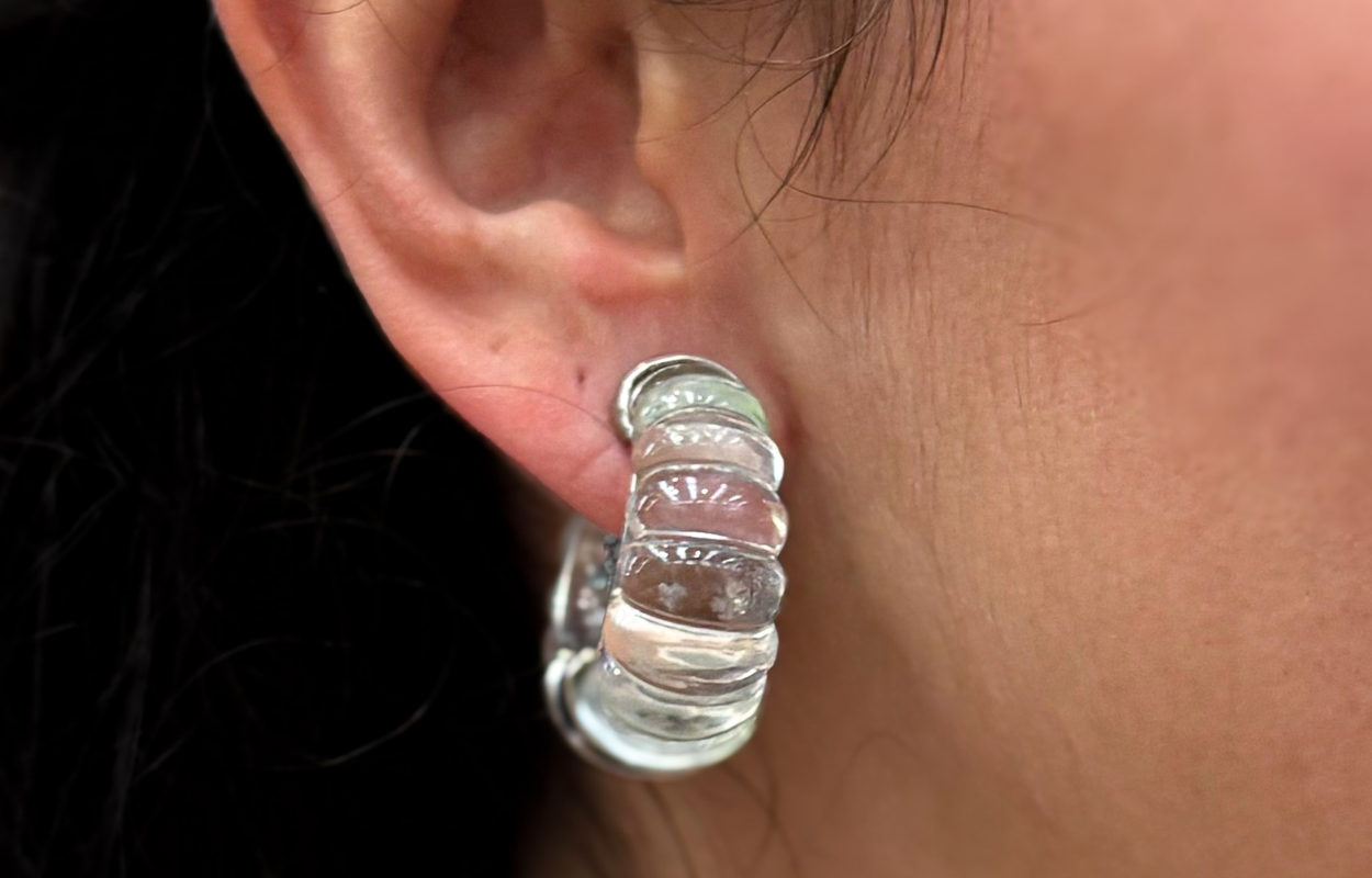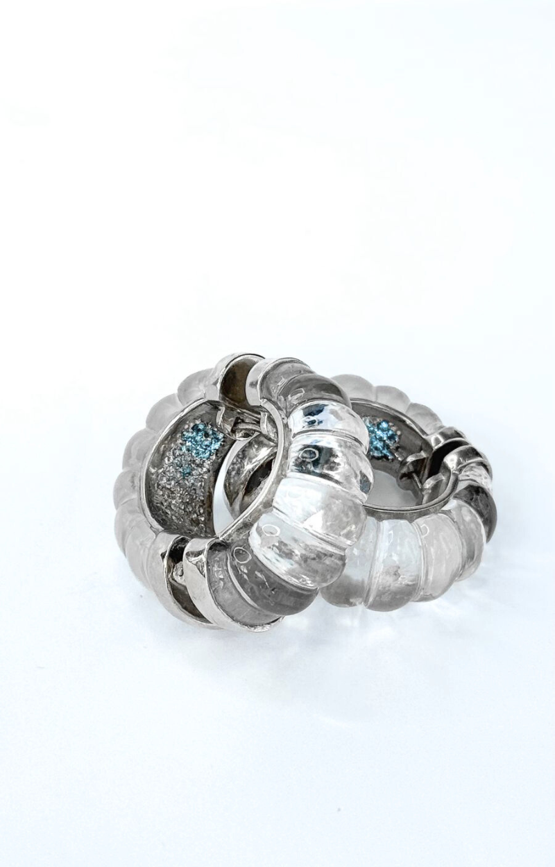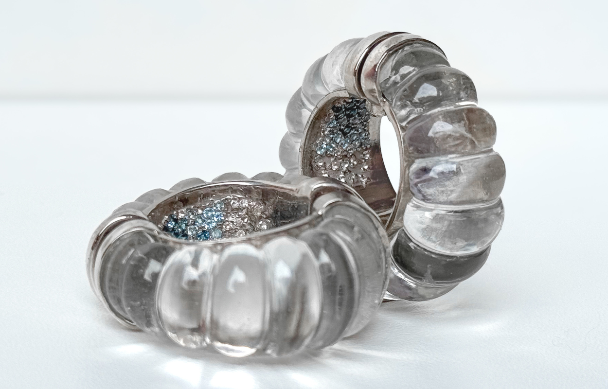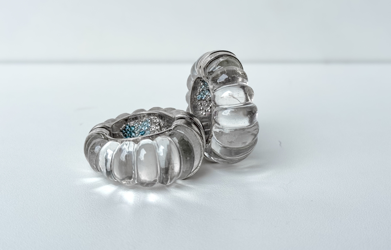 Votar neste projetoO Brinco Serenidade, parte da coleção Essência Encapsulada, traduz o conceito de proteger o que é precioso em formas que evocam delicadeza e permanência. Feito em prata, topázios e quartzo transparente lapidado manualmente em gomos, apresenta um formato volumétrico e poético, pouco convencional na ourivesaria tradicional. A estrutura possui uma dobradiça funcional que permite abertura, revelando no interior um degradê de topázios azuis cravados com precisão. O contraste entre o exterior translúcido e a intensidade das gemas simboliza o diálogo entre ocultar e revelar. Seu diferencial está na união entre inovação formal, sofisticação técnica e narrativa simbólica, transformando a joia em um relicário contemporâneo de memórias e sentimentos.