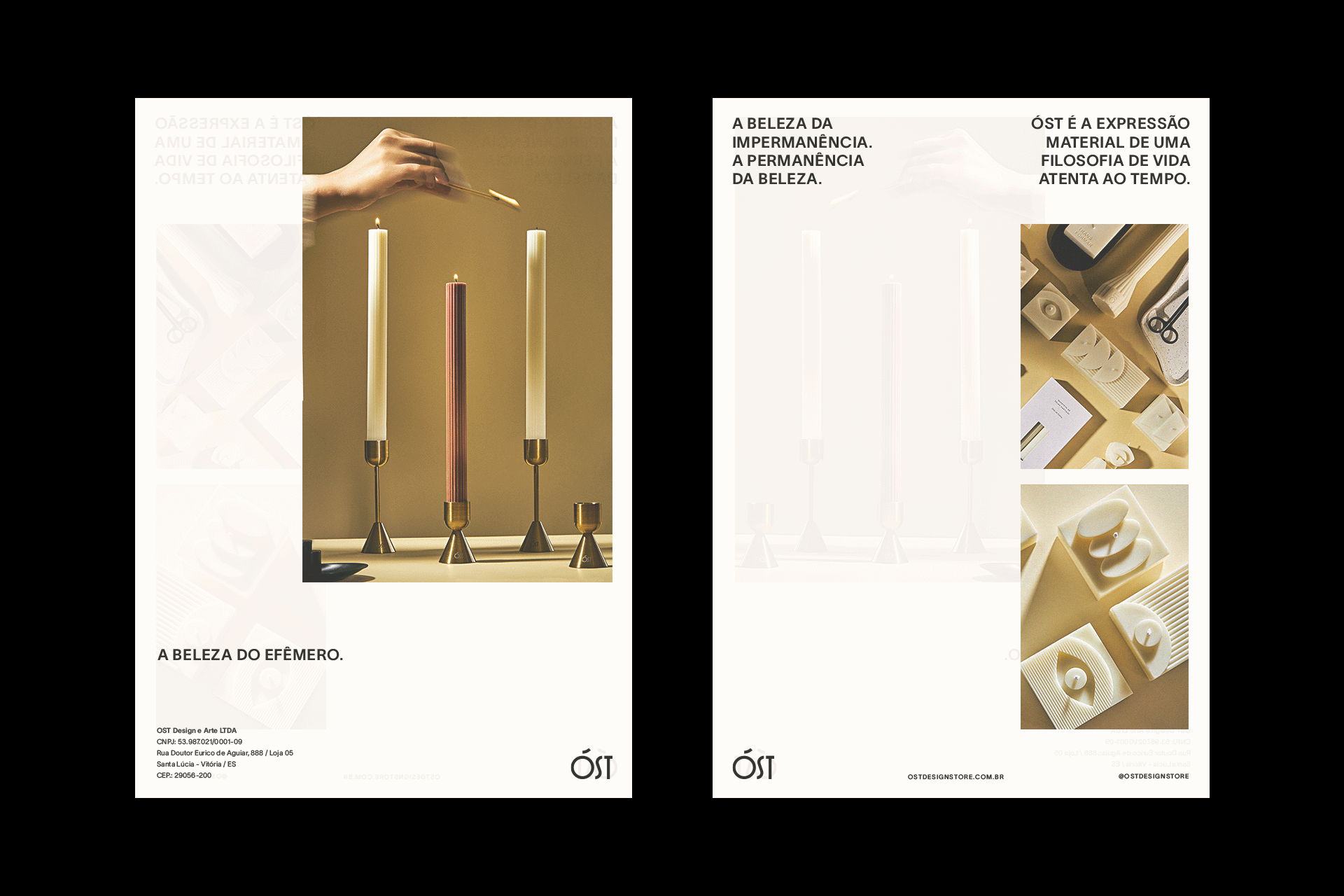 Votar neste projetoTrata-se do projeto de desenvolvimento das velas da ÓST, empresa do Espírito Santo fundada por Laila e Jana e dedicada a velas de design. De forma integrada, definimos nome, criamos a identidade visual, o design das peças e das embalagens, a sinalização da loja e experiências digitais. As coleções, autorais e de tiragem limitada, utilizam materiais e acabamentos de alto padrão. A inovação está em reposicionar a vela como objeto de design, com forte impacto estético-sensorial, elevando a categoria com linguagem própria e coerência entre marca e produto. O sistema de marca foi pensado para garantir reconhecimento imediato e flexibilidade, permitindo variações de cor, tipografia e acabamento sem perder a assinatura visual. Cada decisão reforça a união entre forma, função e narrativa de marca.