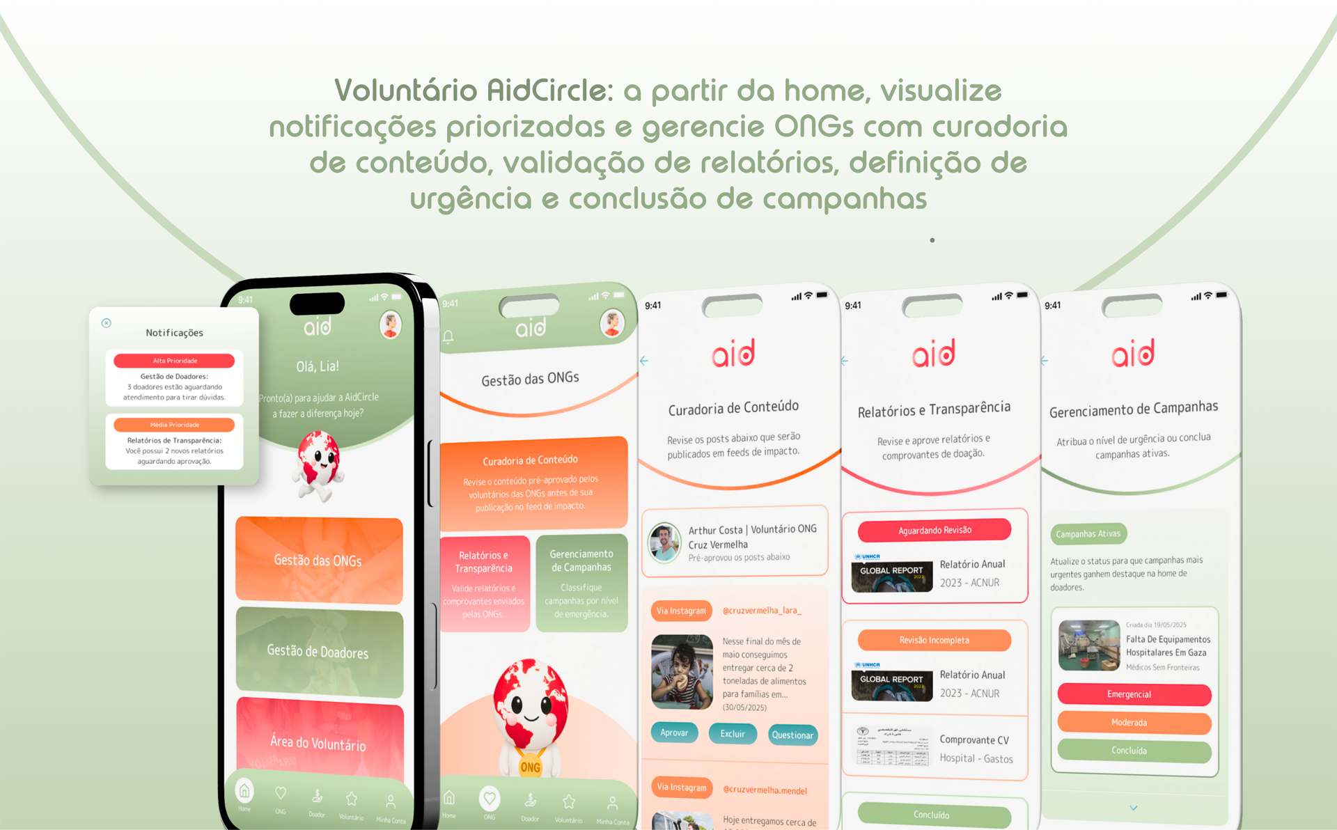 Votar neste projetoAidCircle é um serviço digital de doações seguras em zonas de conflito, conectando doadores, ONGs verificadas e voluntários por meio de uma plataforma acessível, transparente e segura. O projeto partiu de entrevistas qualitativas com doadores, que revelaram barreiras como medo de fraudes, falta de transparência e dificuldade em acompanhar o impacto. A partir disso, definiram-se as bases do serviço, enquanto os perfis de ONGs e voluntários foram desenvolvidos com pesquisa secundária e testes de usabilidade. A solução permite personalização de doações, feed de impacto, relatórios, gestão de campanhas e apoio voluntário. A interface foi validada com base na norma ISO 9241-11. AidCircle é uma solução ética, empática e escalável, centrada na confiança de quem deseja ajudar.