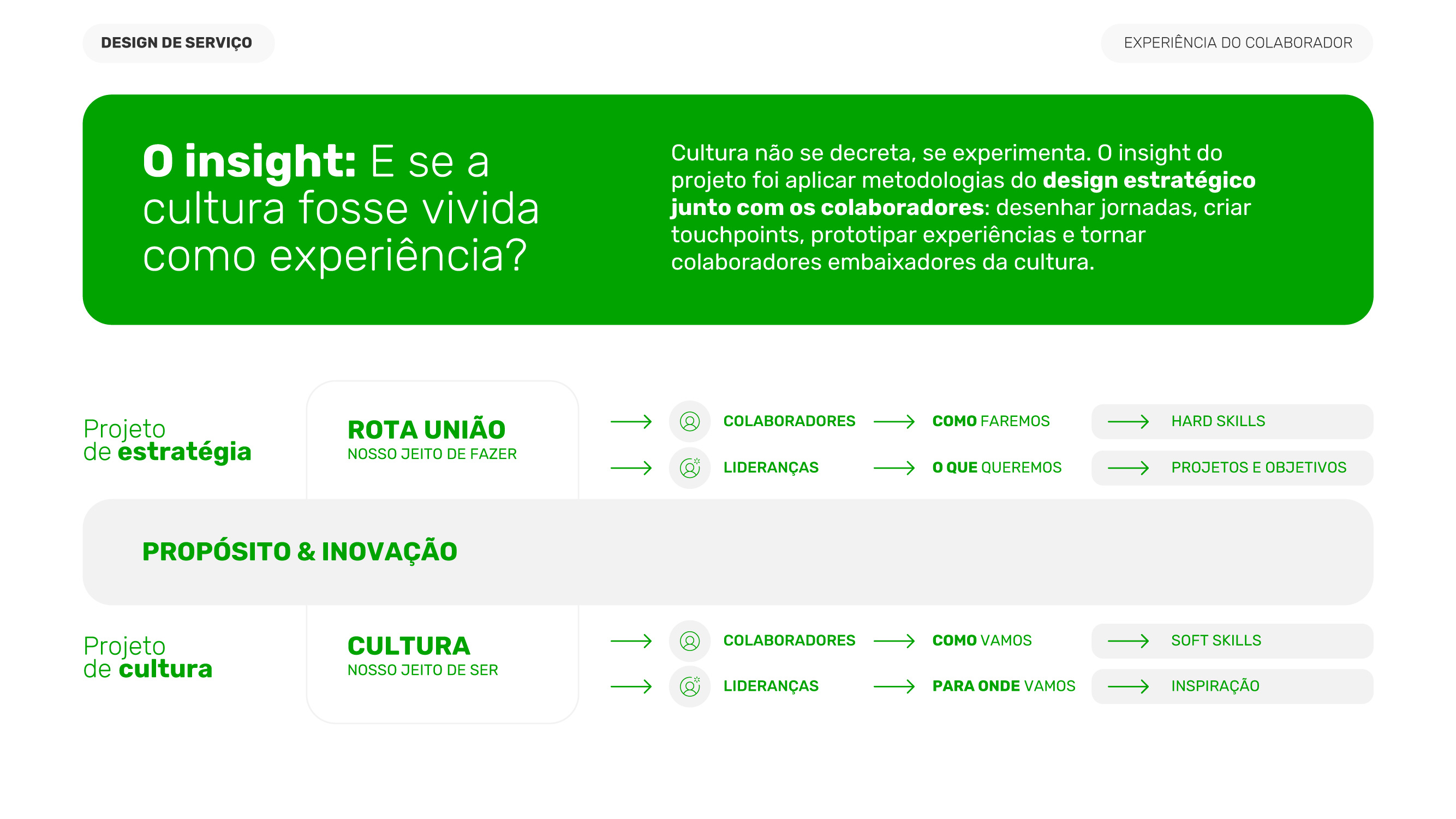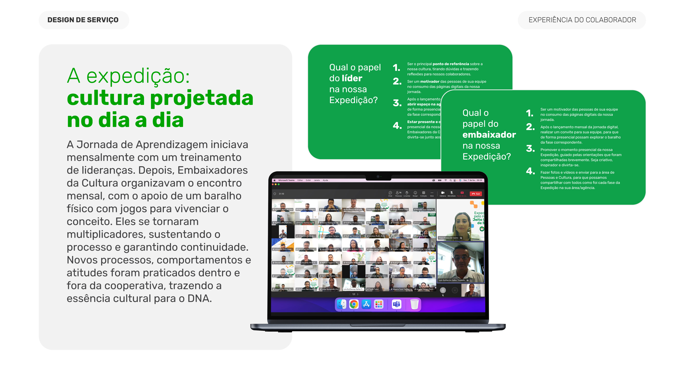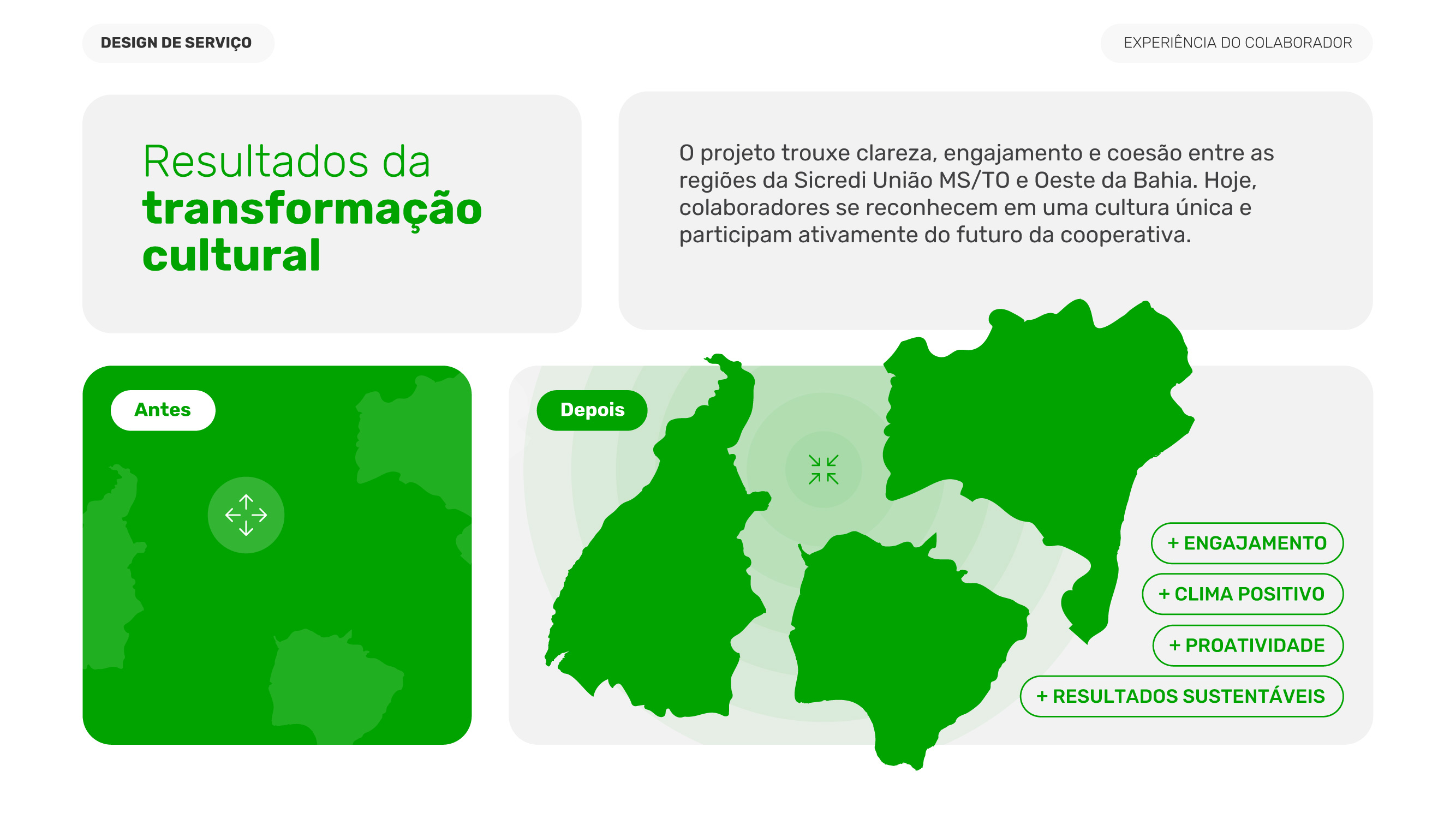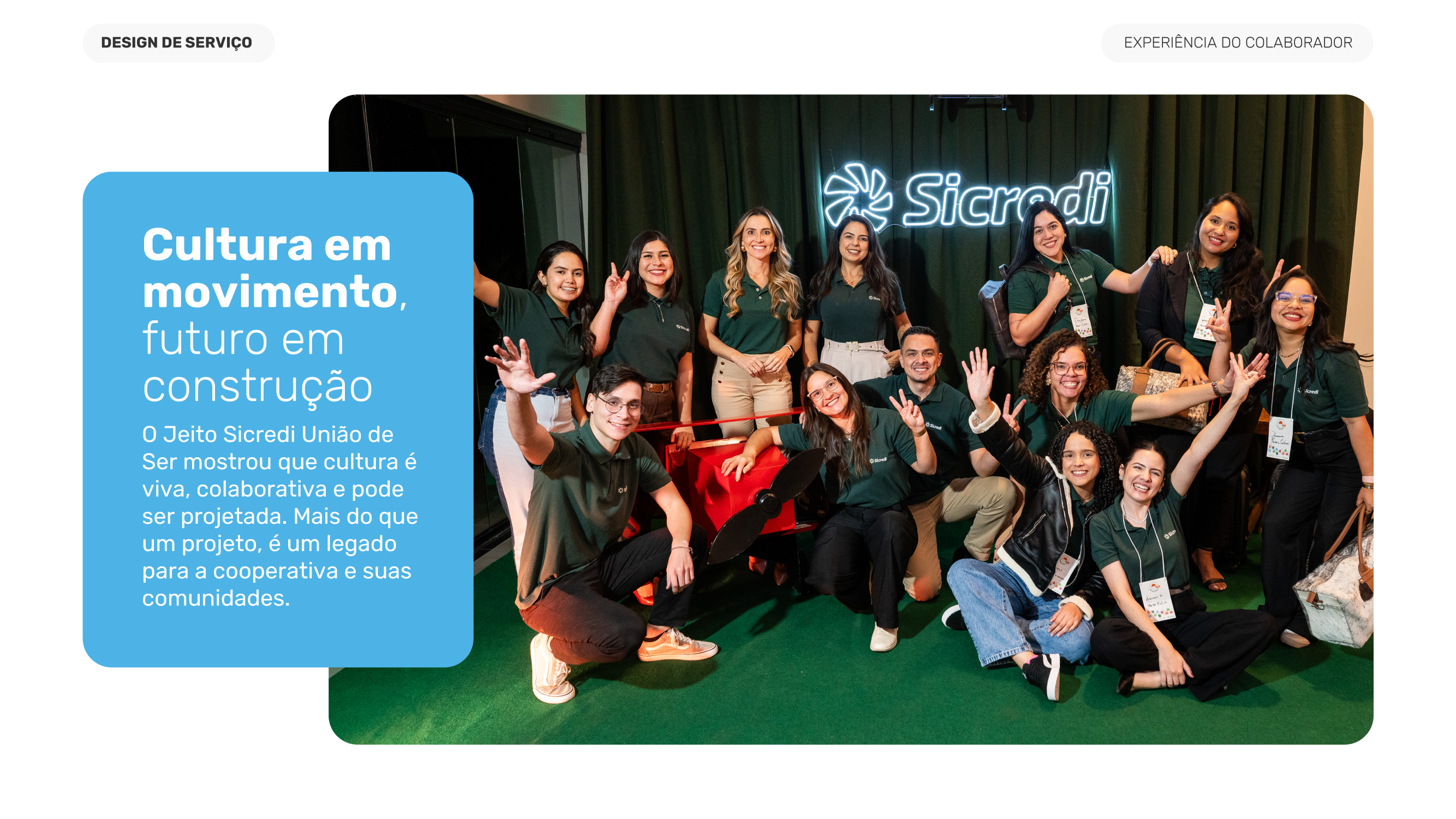 Votar neste projetoCultura é o principal ativo estratégico de organizações que desejam crescer com coerência, resultados e pertencimento. Para a Sicredi União MS/TO e Oeste da Bahia, com 36 anos de história e recente expansão territorial, o desafio foi consolidar uma identidade única entre diferentes regiões. O Jeito Sicredi União de Ser nasceu dessa necessidade: um projeto de transformação cultural desenhado a partir do diagnóstico de cultura e de premissas do design estratégico, como colaboração, pensamento crítico e cocriação. Por meio de jogos, formações e vivências, conectou estratégia e experiência, tornando a cultura um diferencial competitivo vivido por todos.