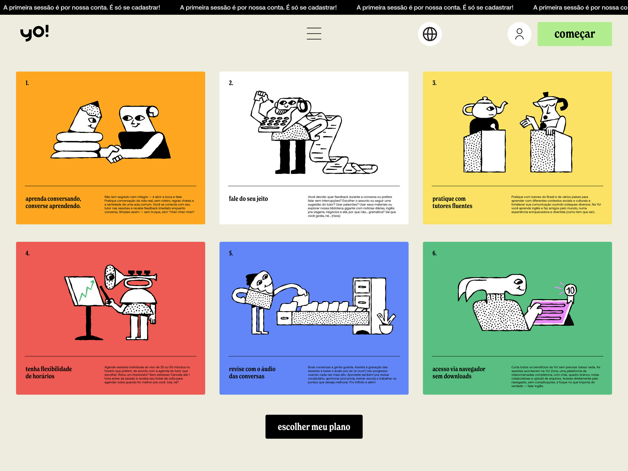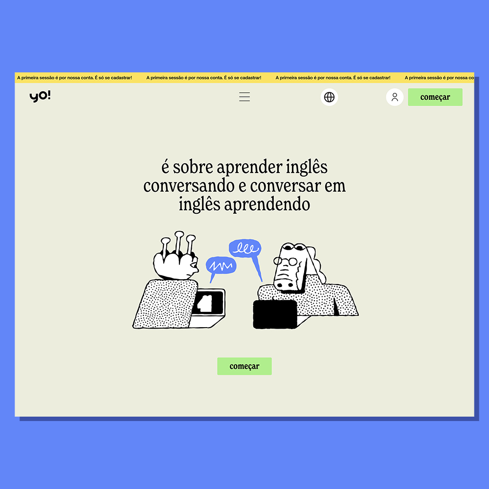 Votar neste projetoO site da Yo Inglês nasceu para transformar a experiência digital de aprender e ensinar inglês em algo prazeroso e memorável. Nosso papel foi materializar a essência da marca no ambiente online, criando mais do que telas: desenhamos uma narrativa viva que conversa com o usuário em cada detalhe. Rico em ilustrações, animações e microinterações, o site quebra a rigidez comum no ensino de idiomas e convida o usuário a se sentir em casa. A identidade visual foi recriada para o digital, e o tom de voz traduz o tempero da marca em um discurso acolhedor e envolvente.