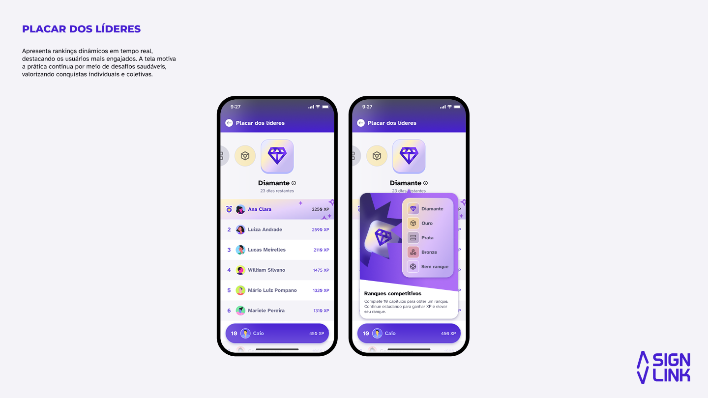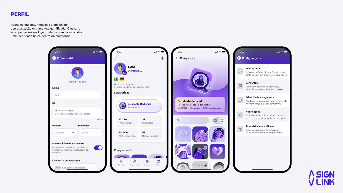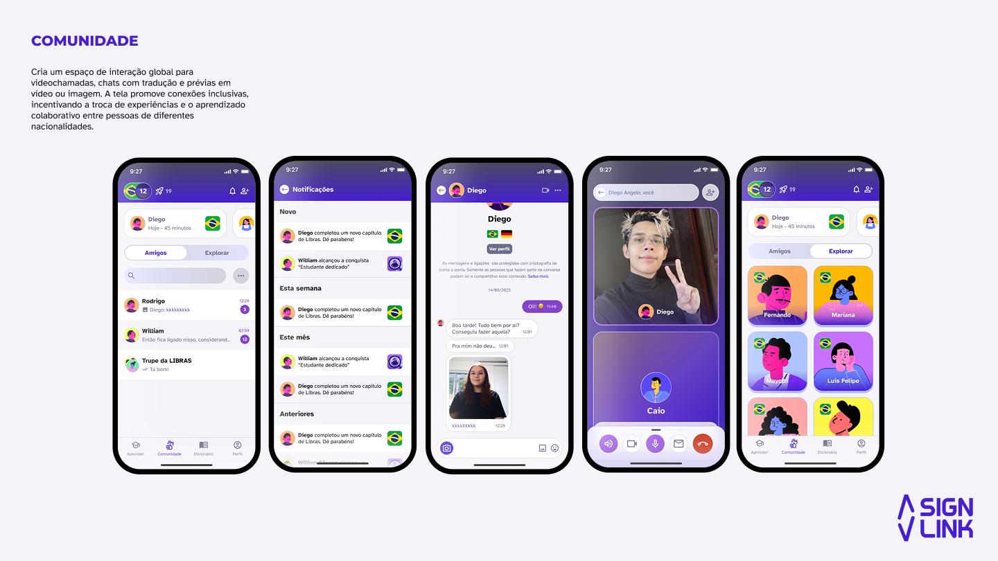 Votar neste projetoA Sign Link é um aplicativo que ensina línguas de sinais com design inclusivo e inovador. Inclui trilhas gamificadas, dicionário colaborativo, prática com falantes nativos e feedback por IA. Desenvolvido em parceria com Letras Libras da UFJF e validado por mais de 250 usuários, prioriza clareza, contraste e identidade própria. Em pré-lançamento, já conta com parcerias com universidades, empresas e governos e potencial de entrada no México, Suíça e EUA. É uma solução escalável que atende instituições, familiares e entusiastas e permite que estudantes surdos aprendam mais de uma língua, ampliando horizontes globais.