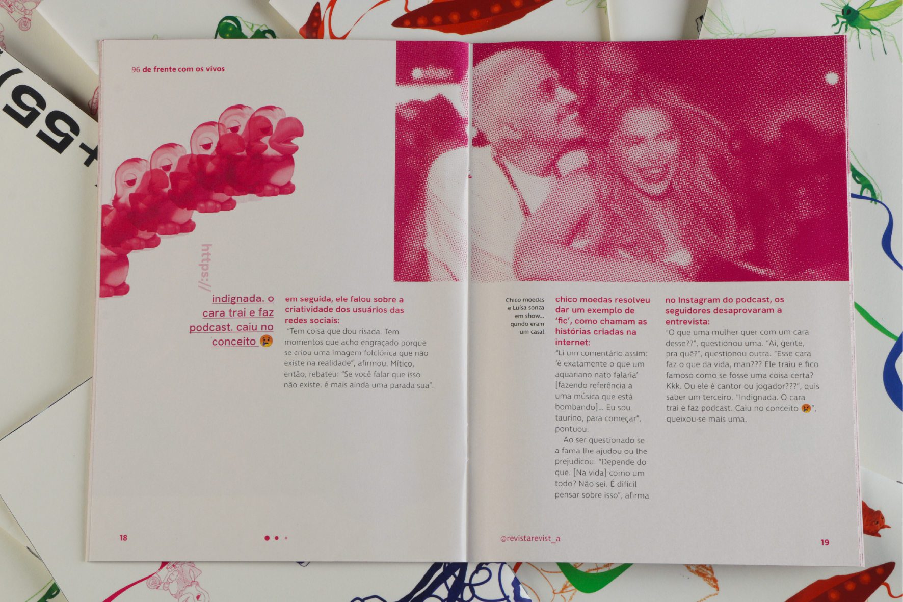 Votar neste projetoA “revista” é um conjunto de 5 zines criadas para um projeto acadêmico com foco em: criação de marca, projeto editorial e projeto gráfico. Ela se propõe a levar informações confiáveis que agreguem para a educação e formação de pensamento crítico de jovens no ensino médio. Inspiradas pelo crescimento de conteúdos rápidos e com bastante estímulos visuais decorrentes do cansaço pelo consumo excessivo de informações presentes na sociedade atual, as zines introduzem jovens ao universo analógico adaptando o meio de comunicação ao público, usando elementos característicos do ambiente digital, como memes e QR codes e os unindo a elementos analógicos como retículas para brincar com as noções de foco do leitor e incentivar sua leitura crítica e curiosidade.