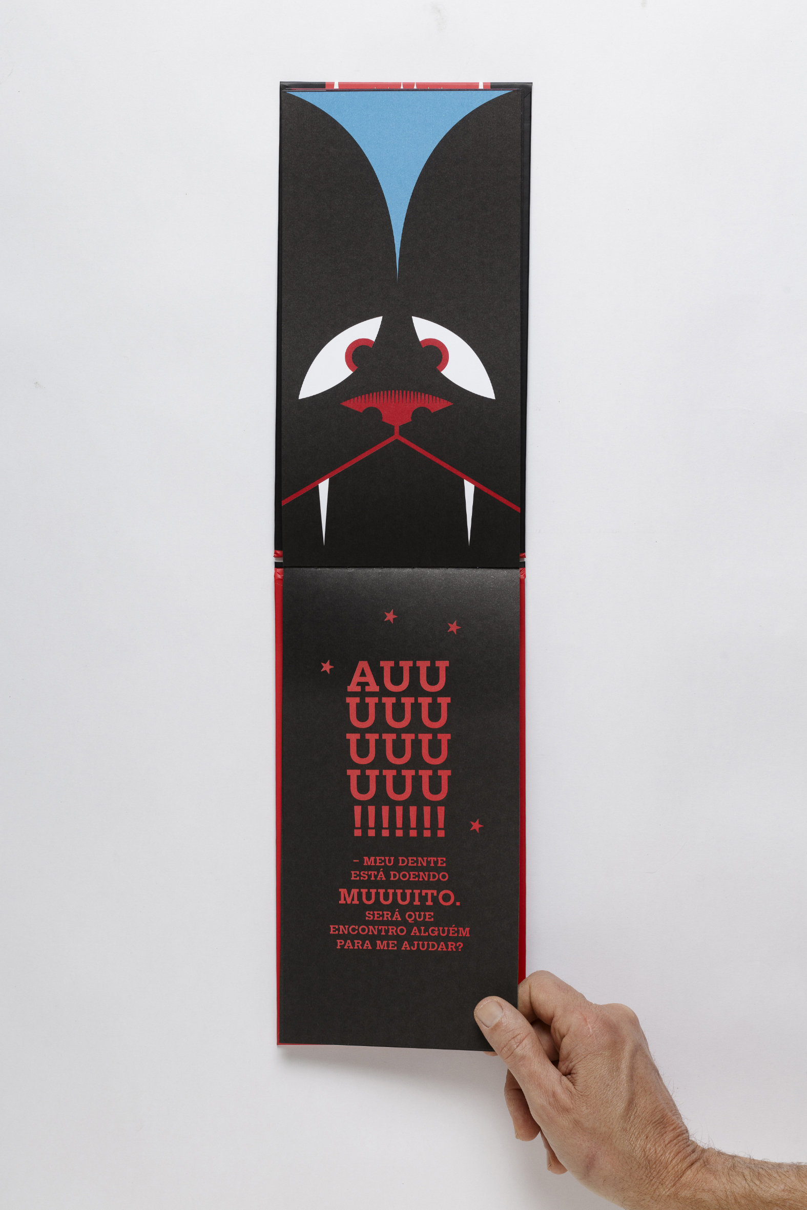 Votar neste projetoLivro infantil ilustrado que reinventa o Lobo Mau, personagem clássico dos contos de fadas, a partir de um detalhe inusitado: uma dor de dente. A narrativa se constrói como um jogo entre texto e imagem, criando ritmo visual e humor. O design editorial integra tipografia, ilustração e composição para emular uma “mordida” na própria página, transformando o projeto gráfico em extensão da história.