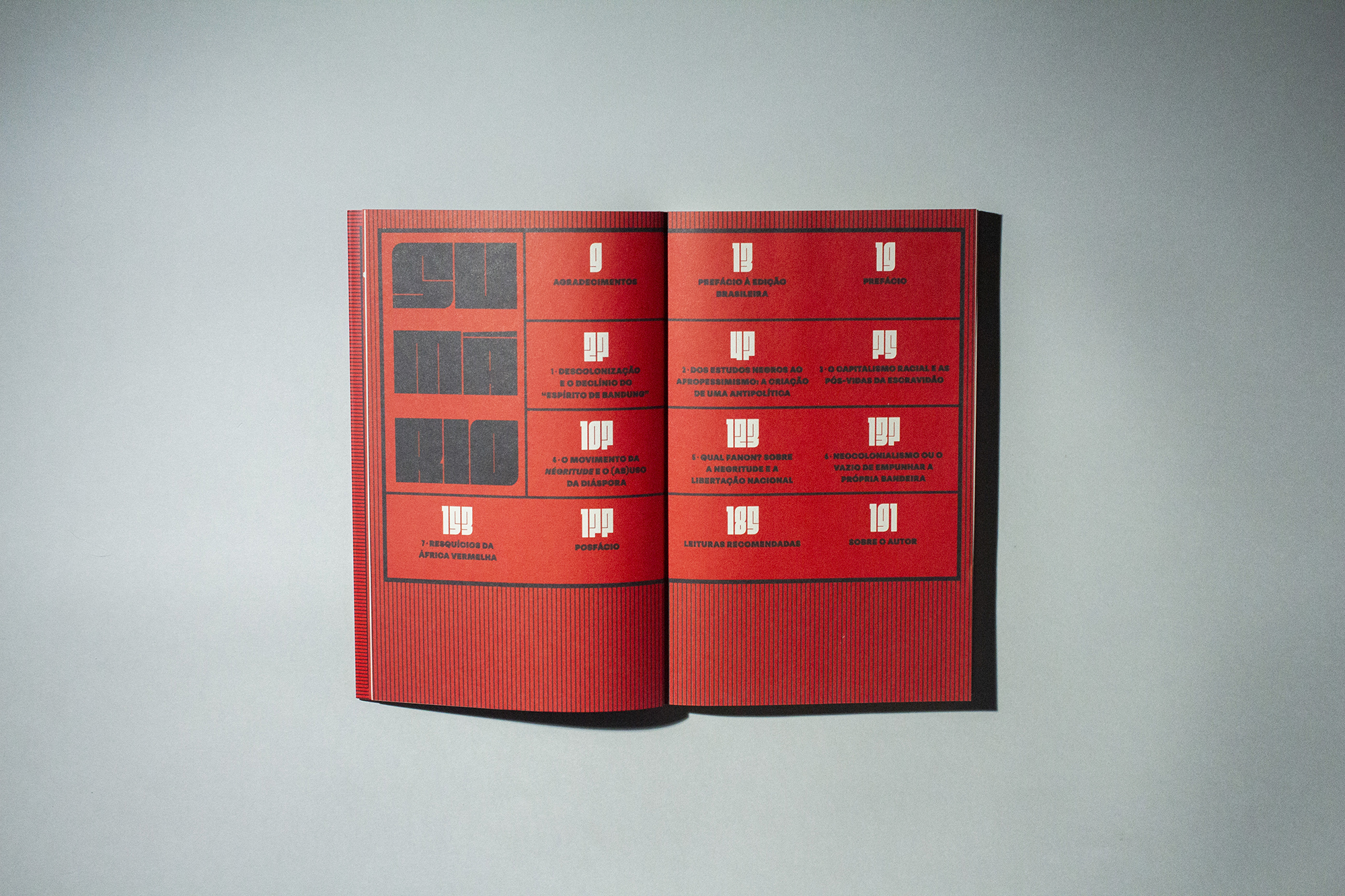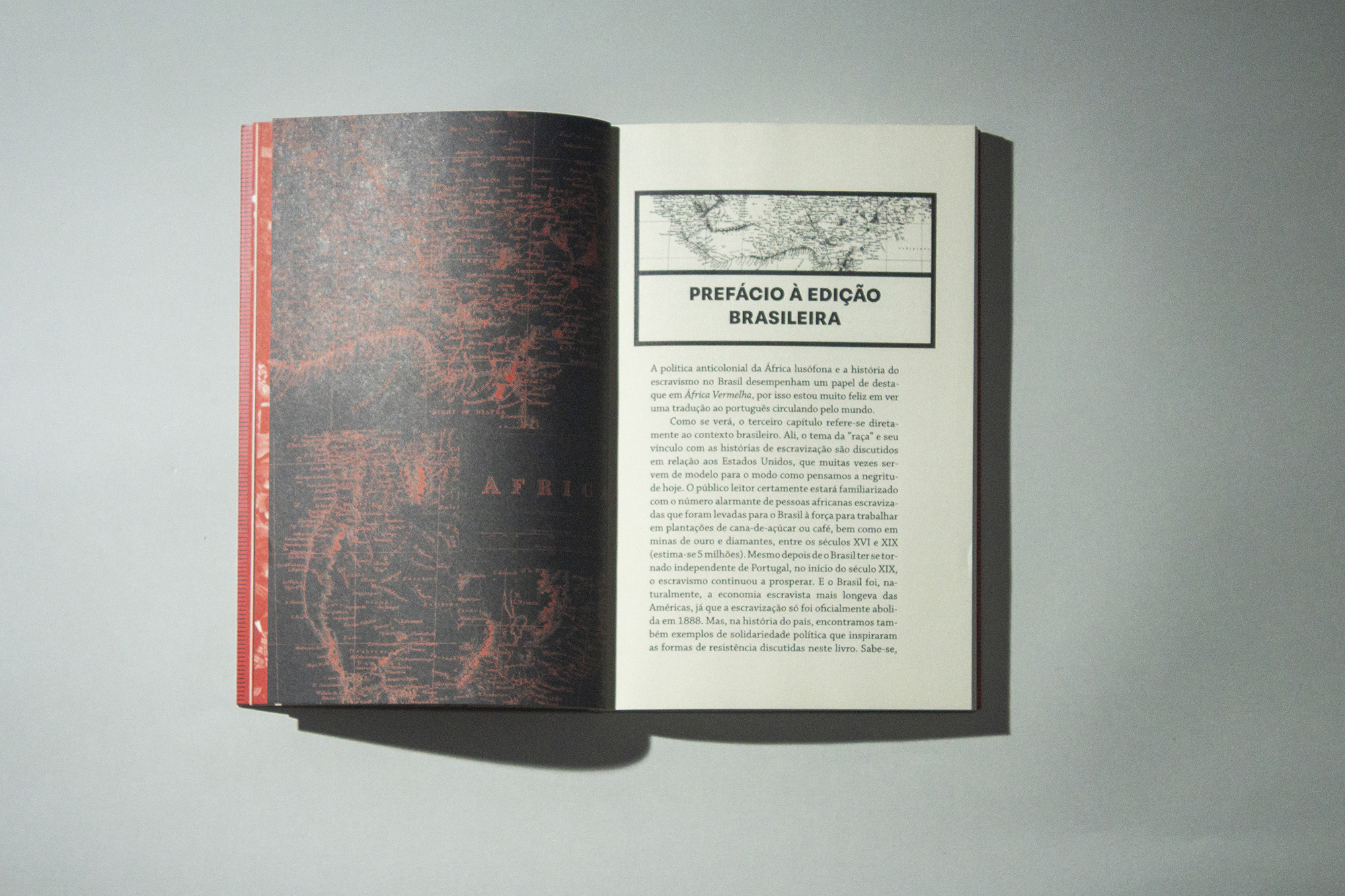 Desenho de capa, páginas internas e abertura de capítulos do livro "África Vermelha: resgatando a política negra revolucionária".