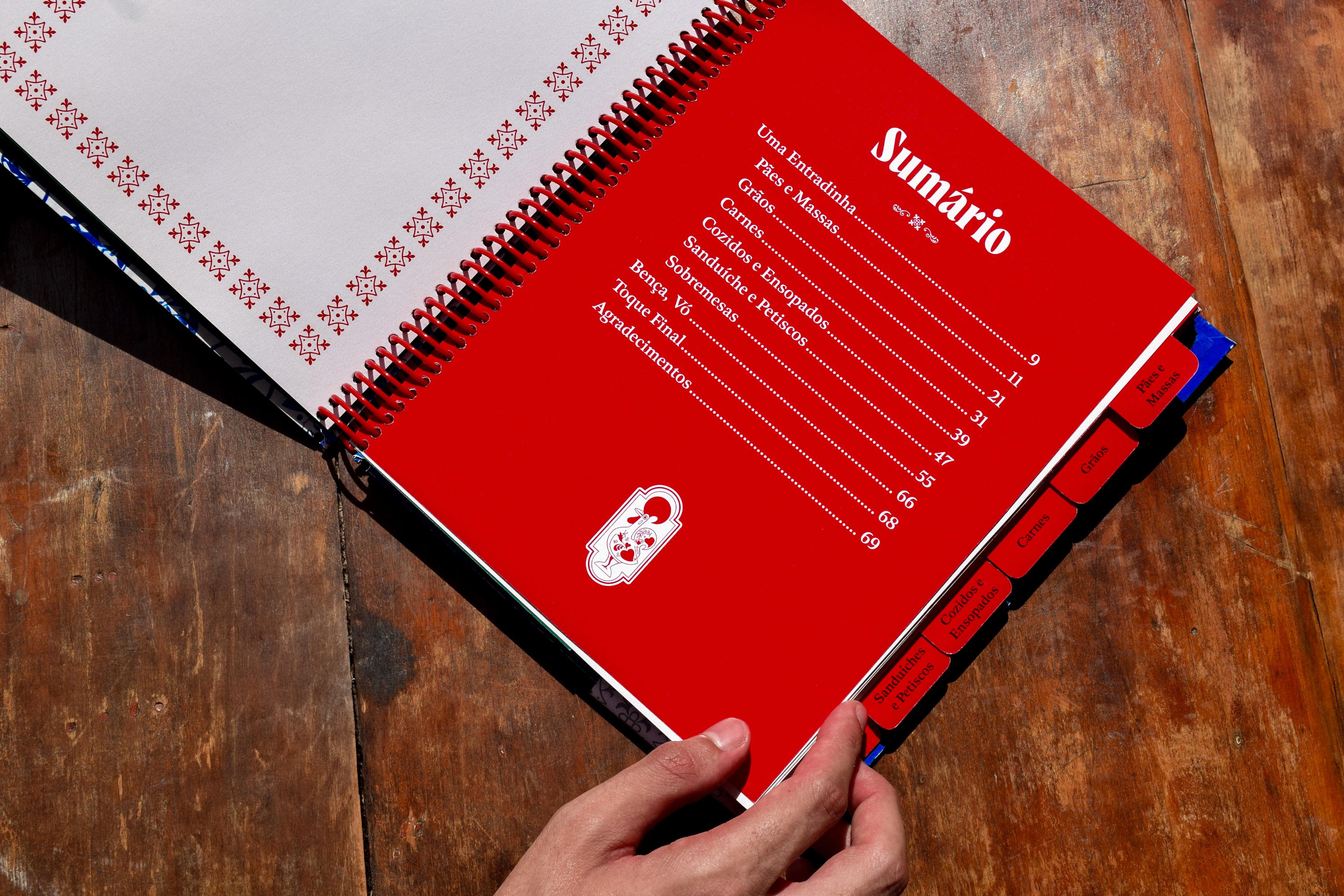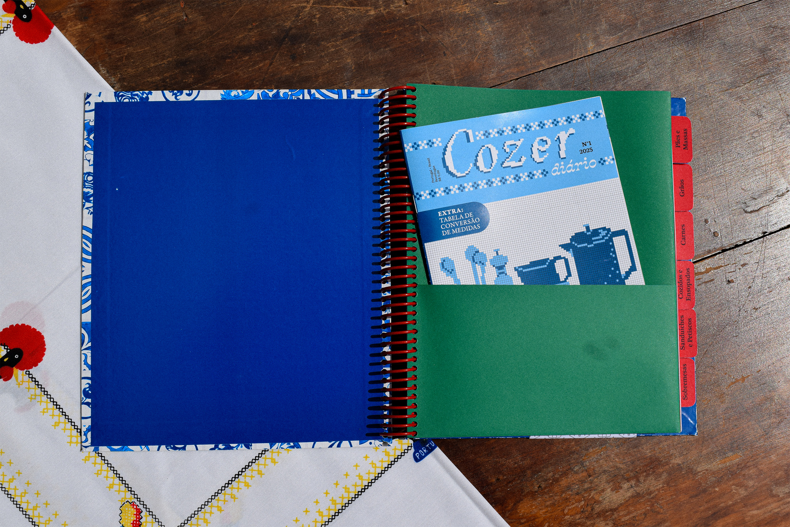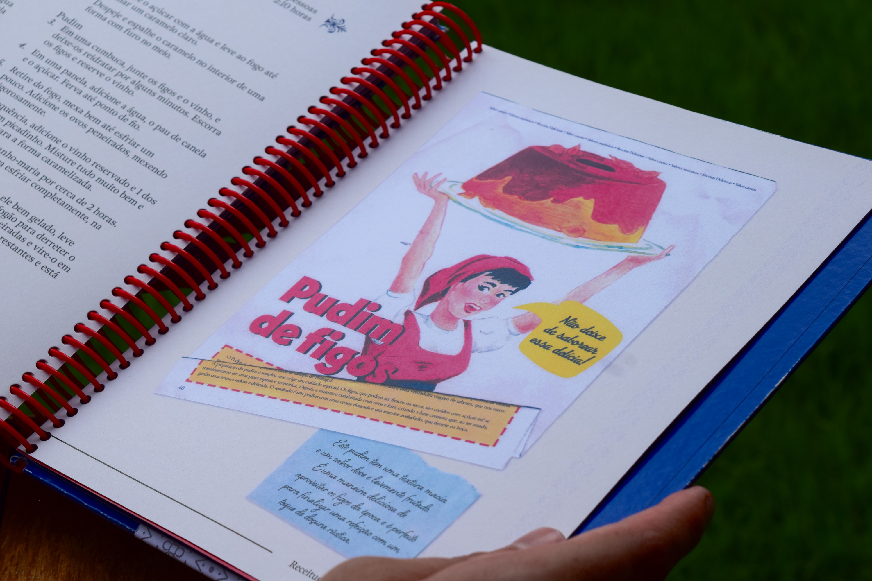 Votar neste projetoReceitugas é um livro de receitas portuguesas que incentiva o contato entre avós migrantes e netos, usando a cozinha como espaço de troca cultural. Mistura o moderno ao vintage com linguagem afetiva e instrucional, criando um ambiente encantador e familiar. Inspirado em cadernos de receitas, mescla diferentes mídias (fotos, aquarela, guache e papéis escaneados) propondo um diário/arquivo de receitas. As páginas trazem anotações manuais, dicas e substituições para iniciantes, reforçando seu caráter vivo e colaborativo. O projeto explora elementos da cultura portuguesa e da oralidade, como ditos populares na abertura dos capítulos. Acompanha um encarte em formato de revista de ponto cruz, que introduz o universo culinário de forma lúdica e resgata a prática de colecionar receitas de revistas